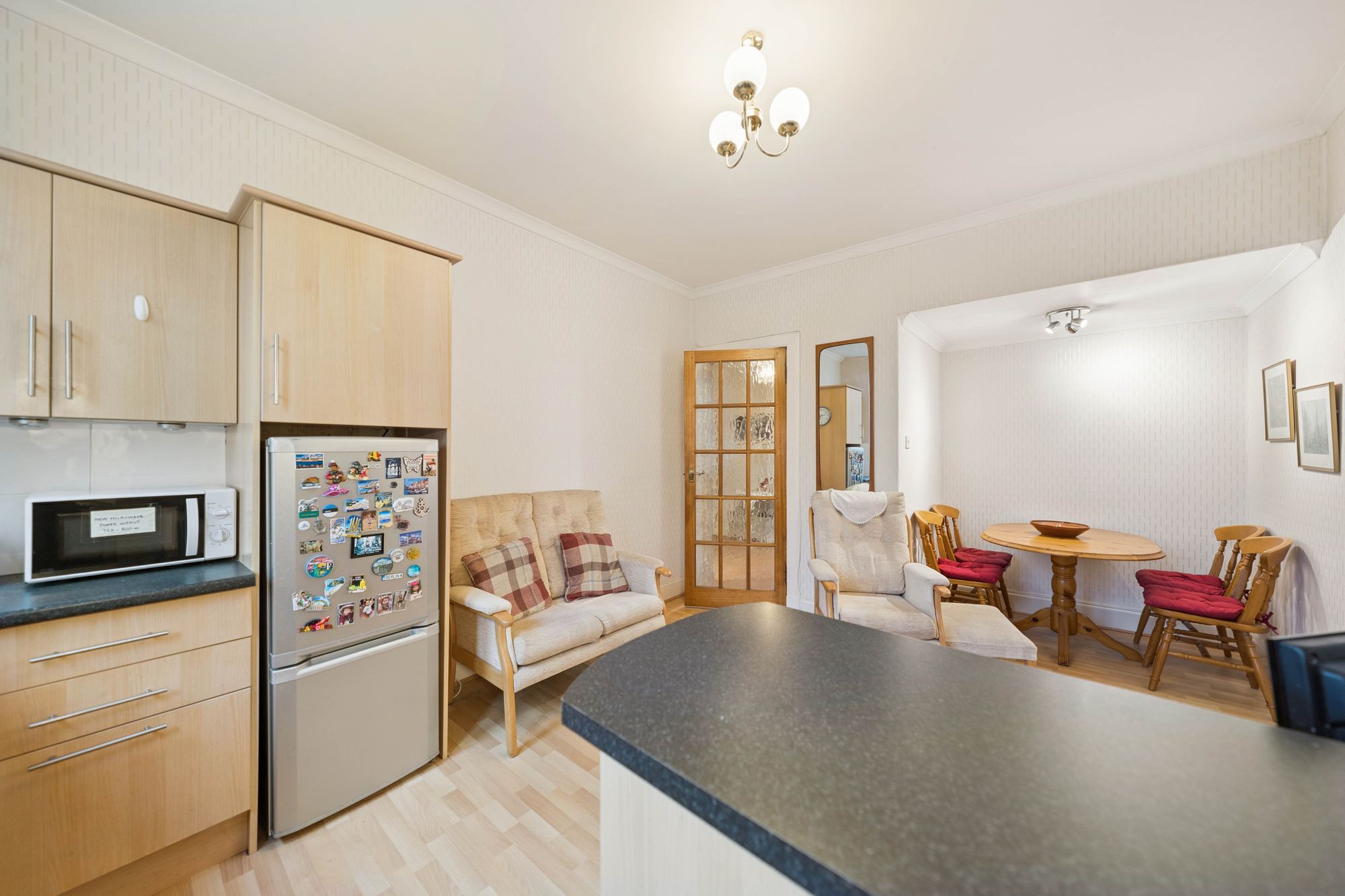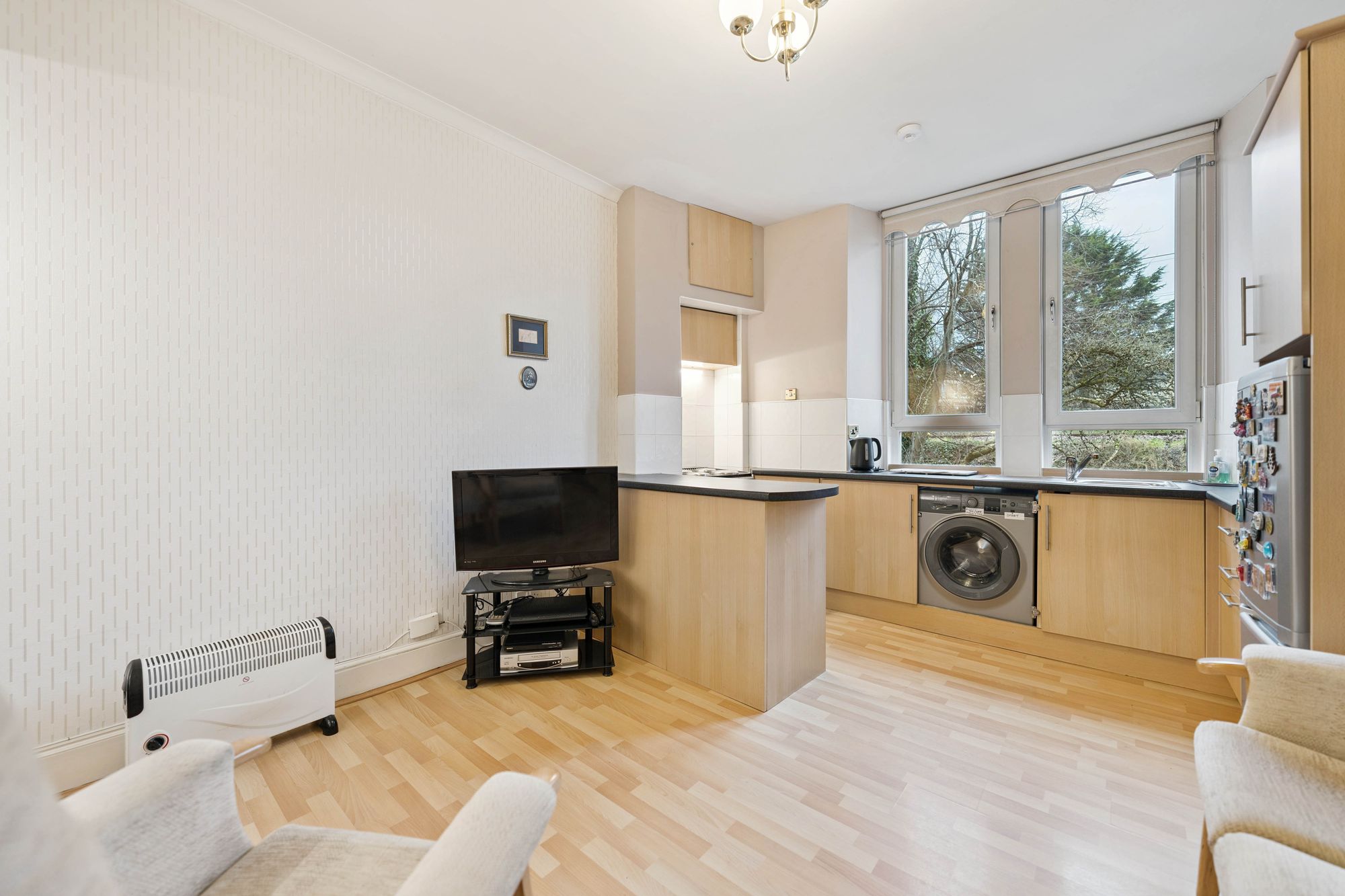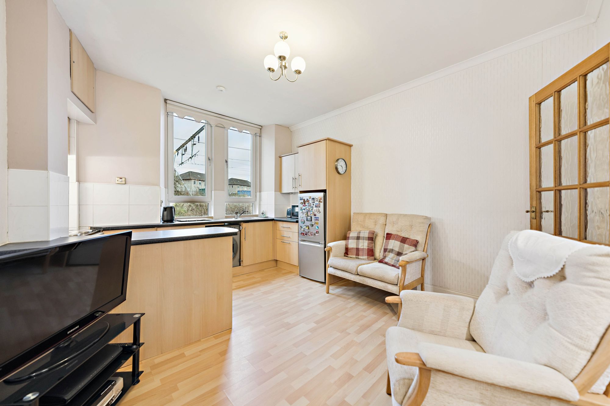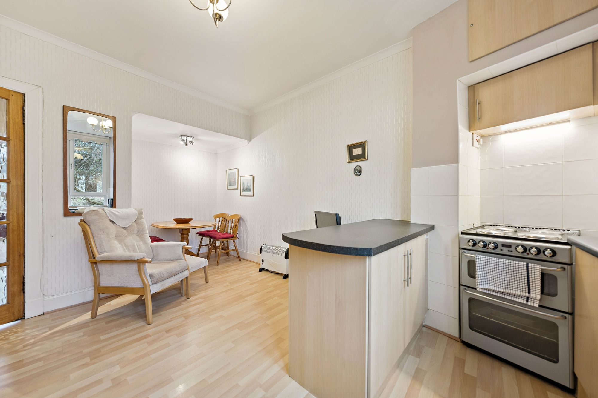 In brief, the accommodation extends to; broad entrance hall with two storage cupboards off, modern bathroom with walk in shower, bay windowed lounge, double bedroom and a large dining sized kitchen.