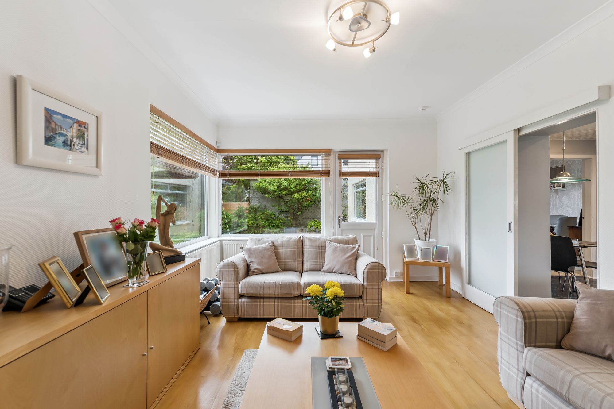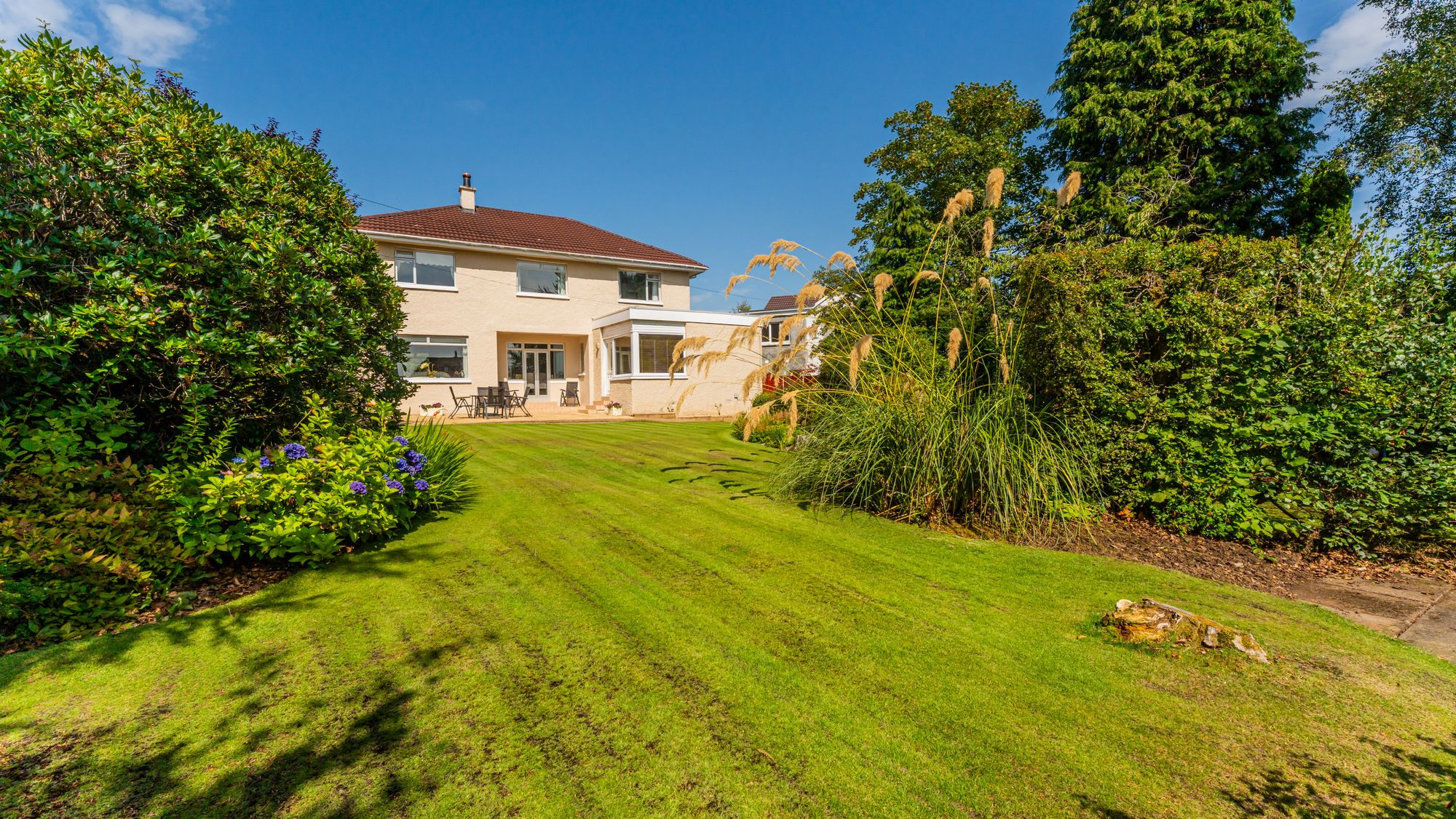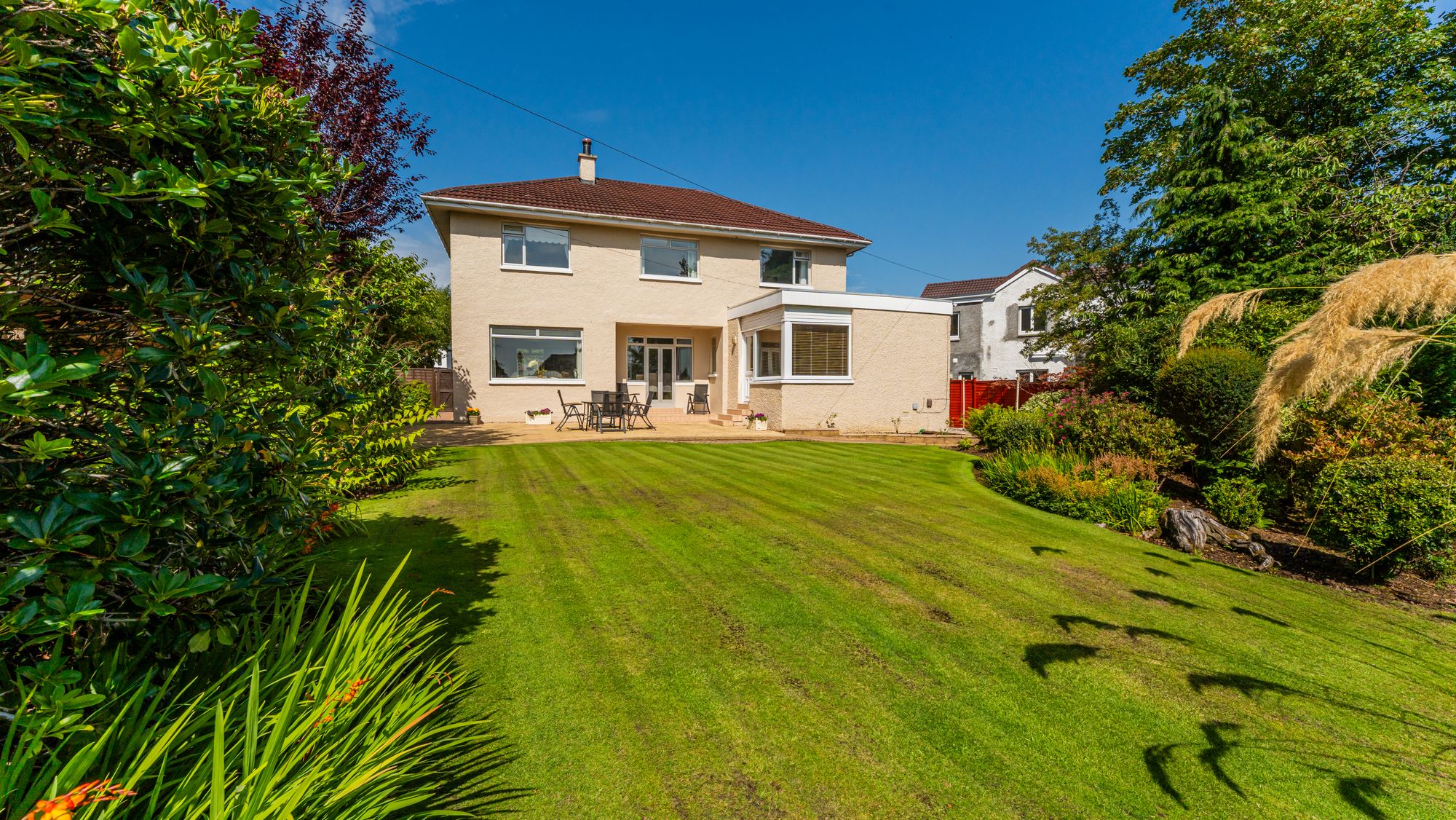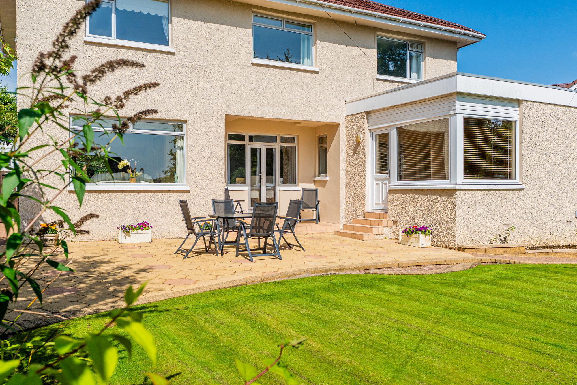 This beautifully maintained detached villa enjoys a prime position in the sought-after Thorn district of Bearsden. Lovingly cared for by the same family for nearly forty years, it has been thoughtfully upgraded during their ownership, including the installation of a new roof in recent years. The home sits within a stunning, level, and very private south-facing garden – a wonderful haven for entertaining or a safe, sunny space for children to play.