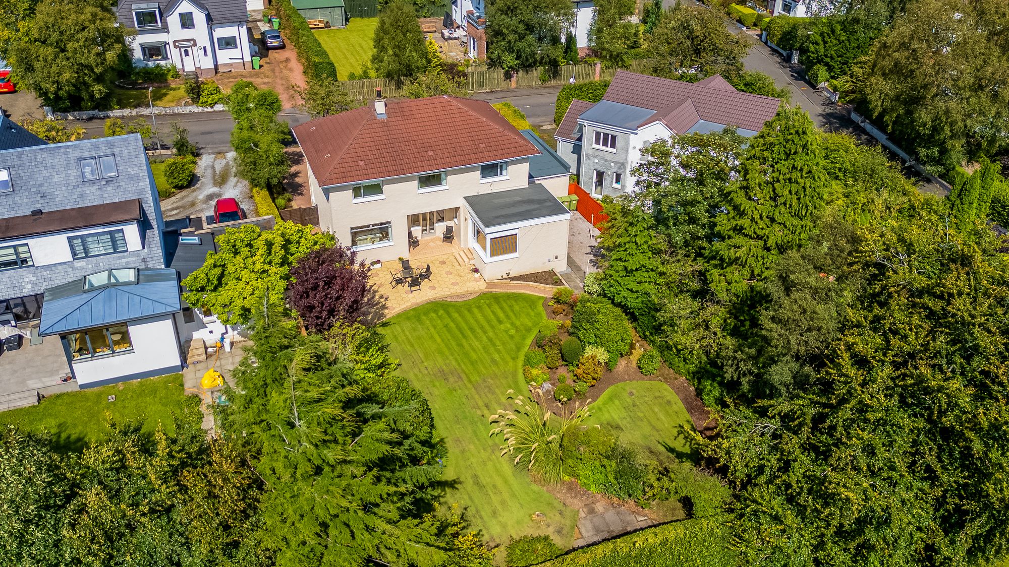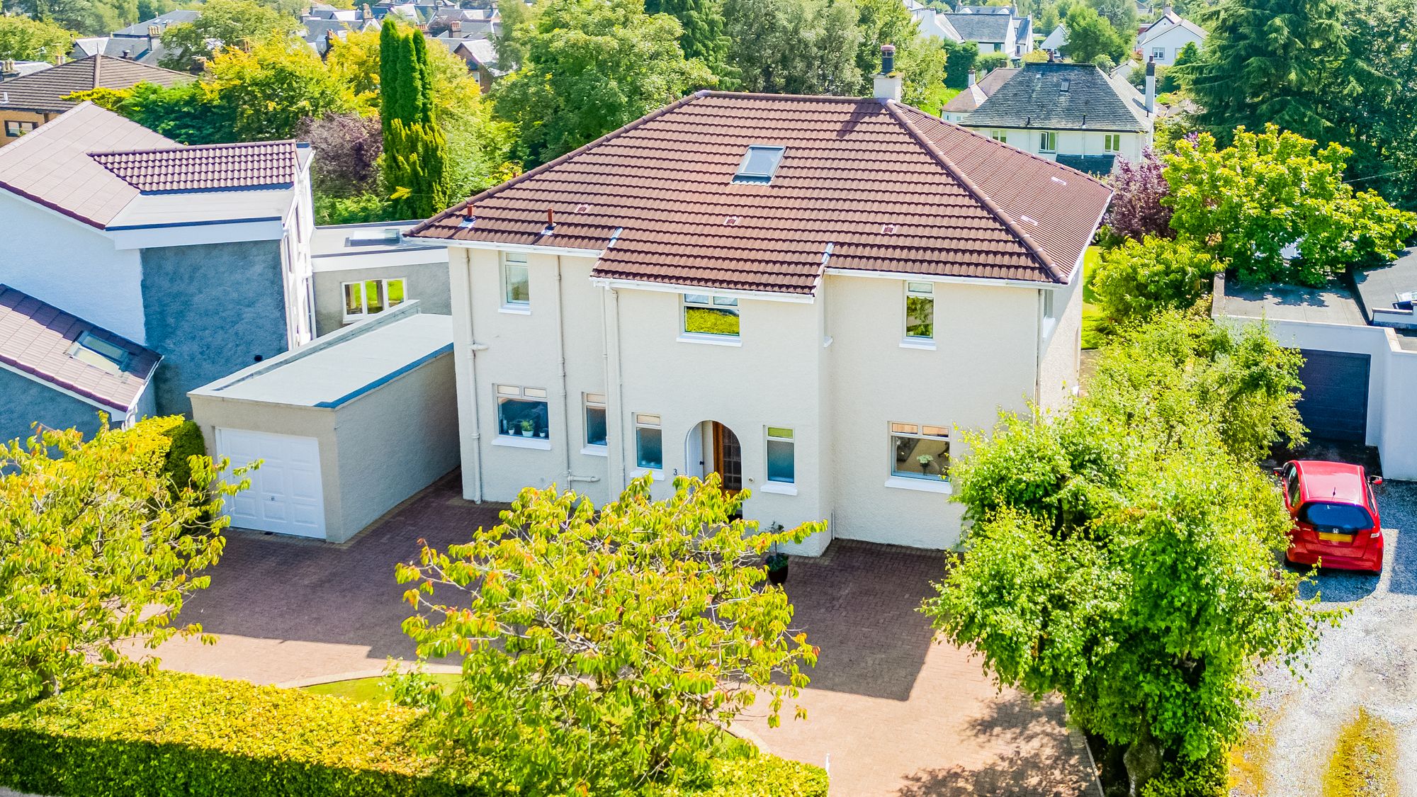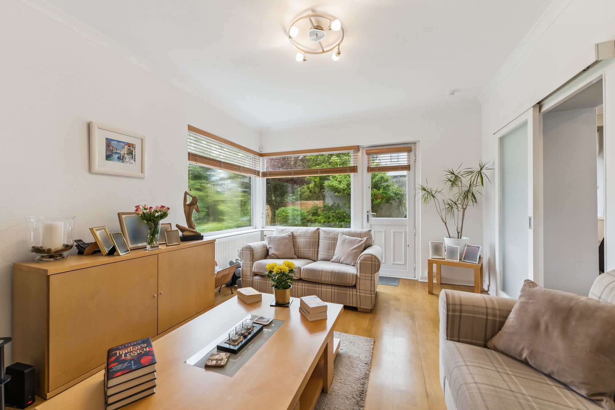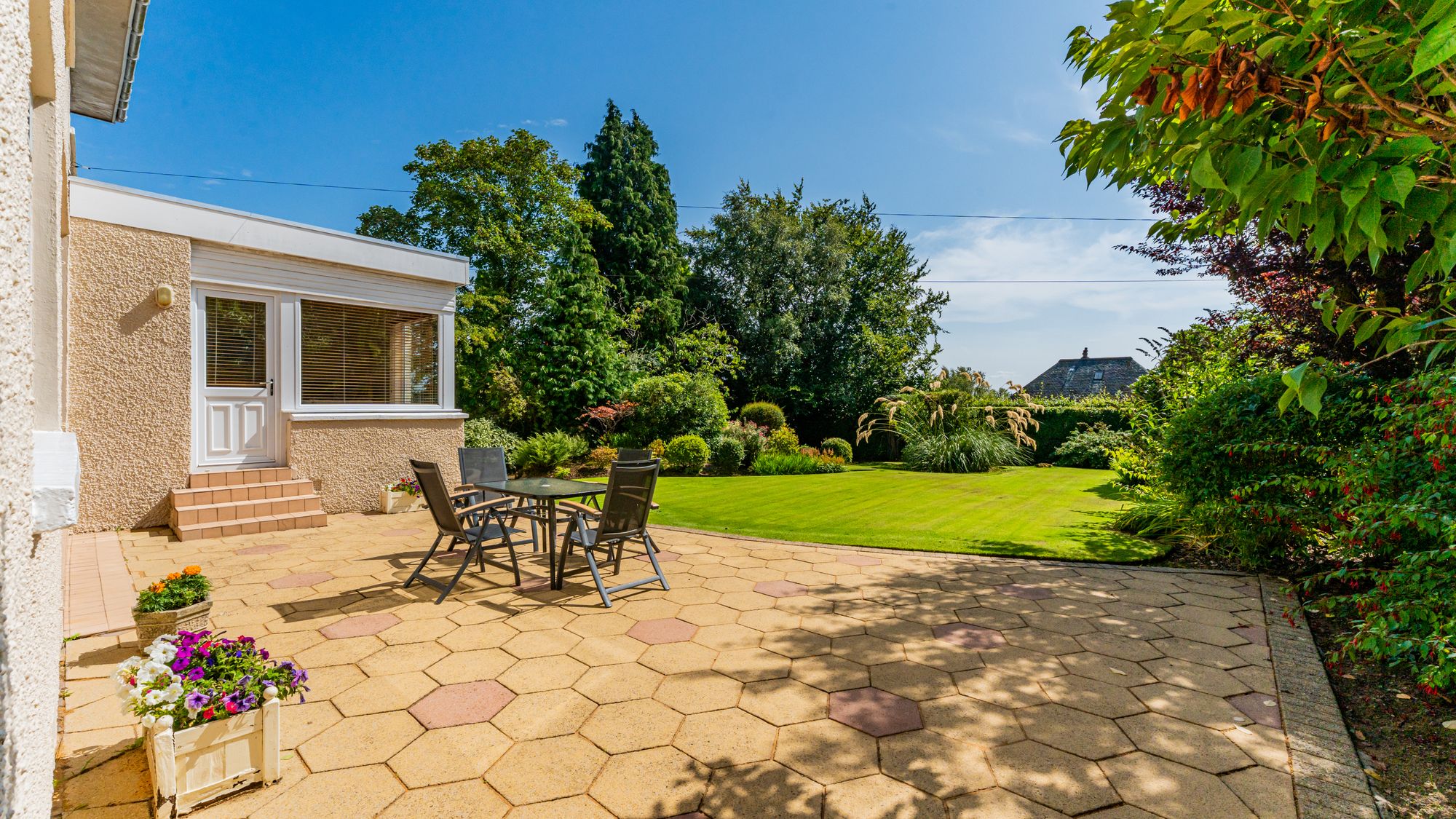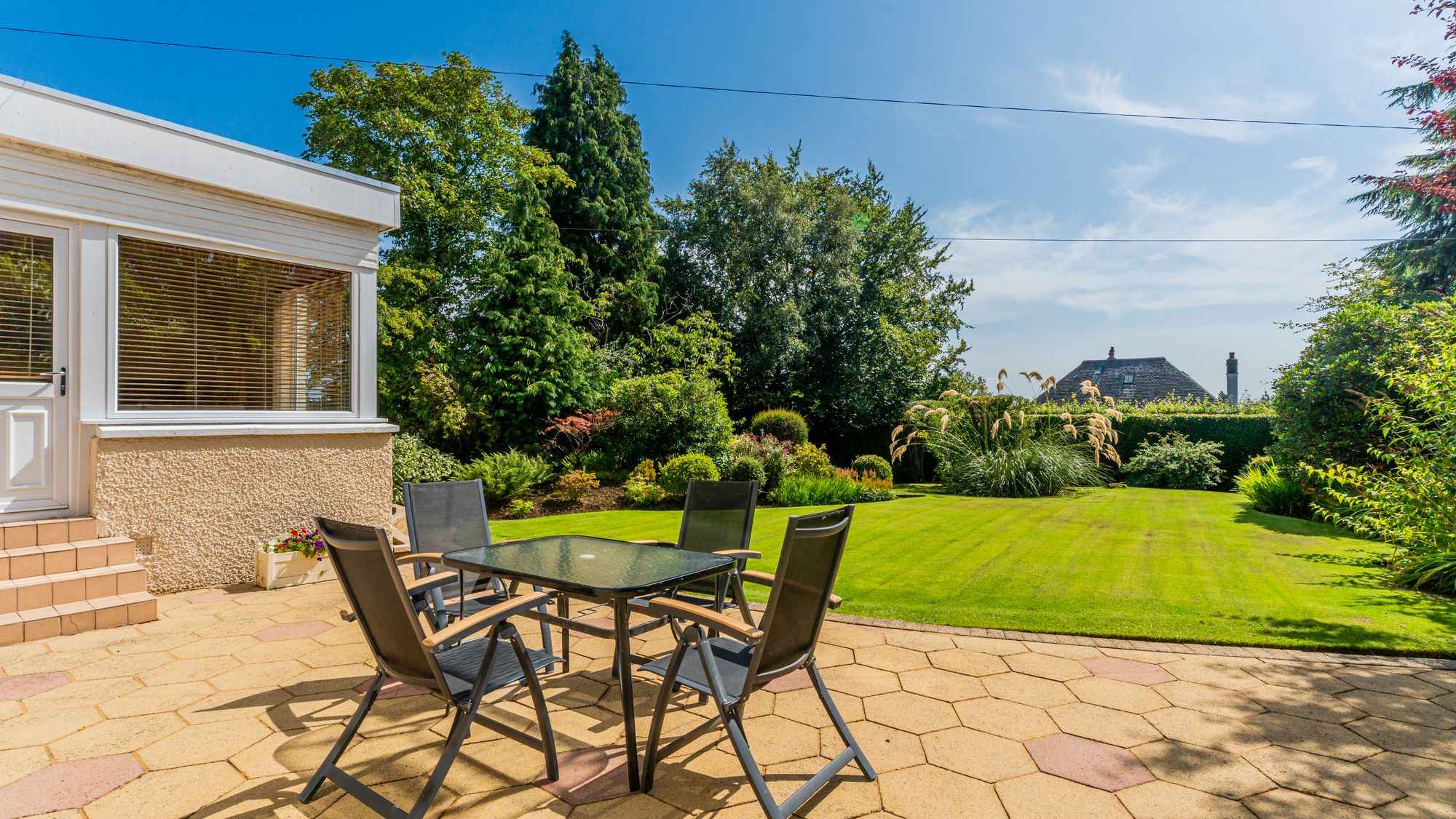 This beautifully maintained detached villa enjoys a prime position in the sought-after Thorn district of Bearsden. Lovingly cared for by the same family for nearly forty years, it has been thoughtfully upgraded during their ownership, including the installation of a new roof in recent years. The home sits within a stunning, level, and very private south-facing garden – a wonderful haven for entertaining or a safe, sunny space for children to play.