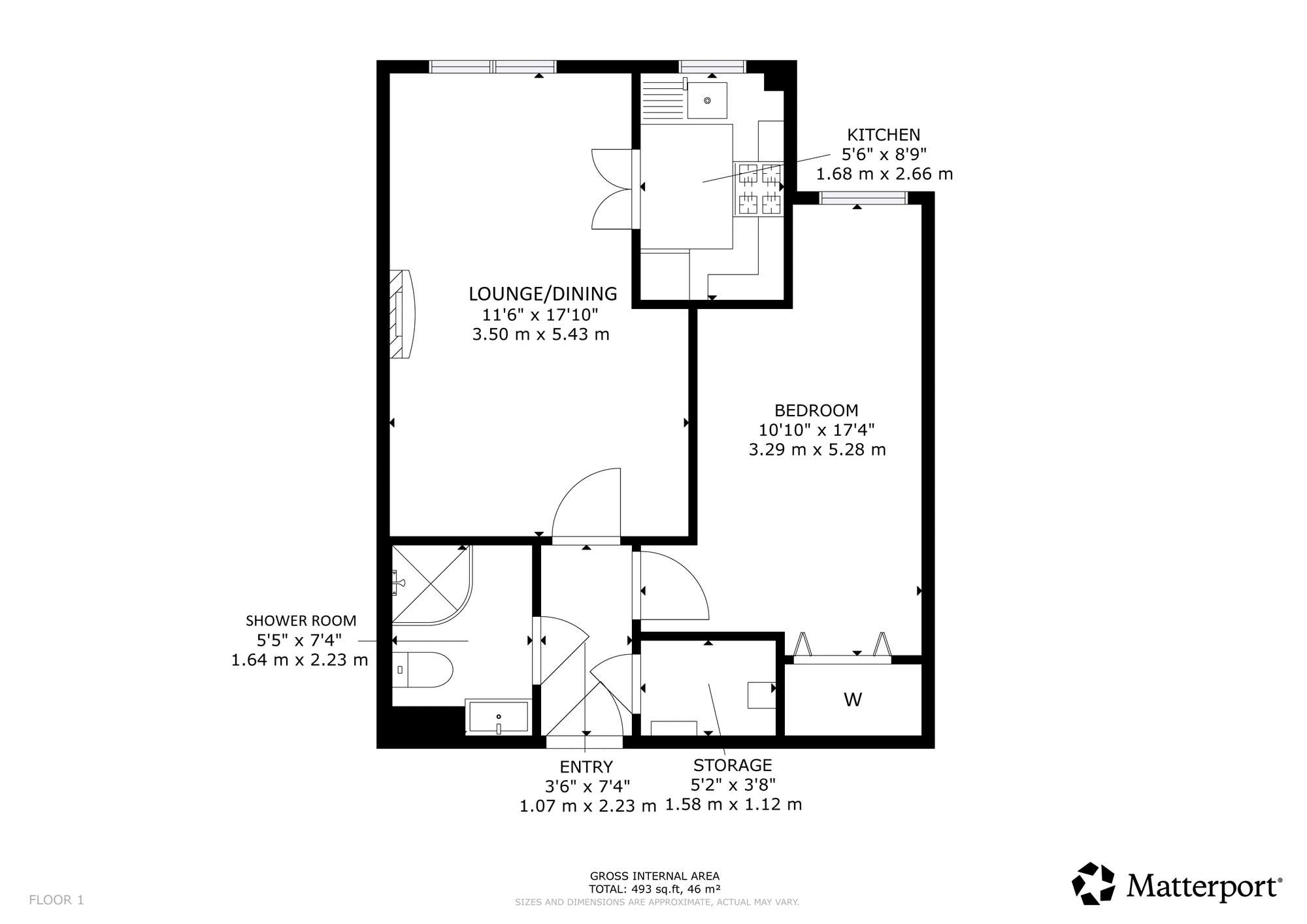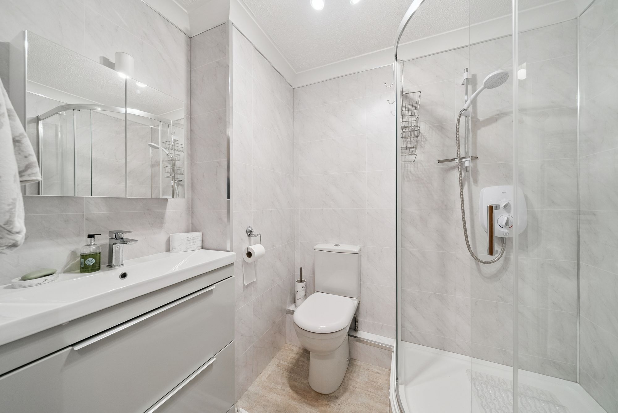 From the lounge, access is gained into a well-appointed kitchen, fitted with an excellent range of floor and wall mounted units. The kitchen also features an inset oven, hob and hood, along with a fridge freezer and attractive tiling which adds a clean and modern finish to the space. The bedroom is a well-proportioned double room and benefits from mirror-fronted fitted wardrobes, offering excellent storage while reflecting natural light throughout the room. The shower room has also been upgraded and is fitted with a modern three-piece suite comprising a low-level WC, wash hand basin and shower stall with shower within for additional practicality.