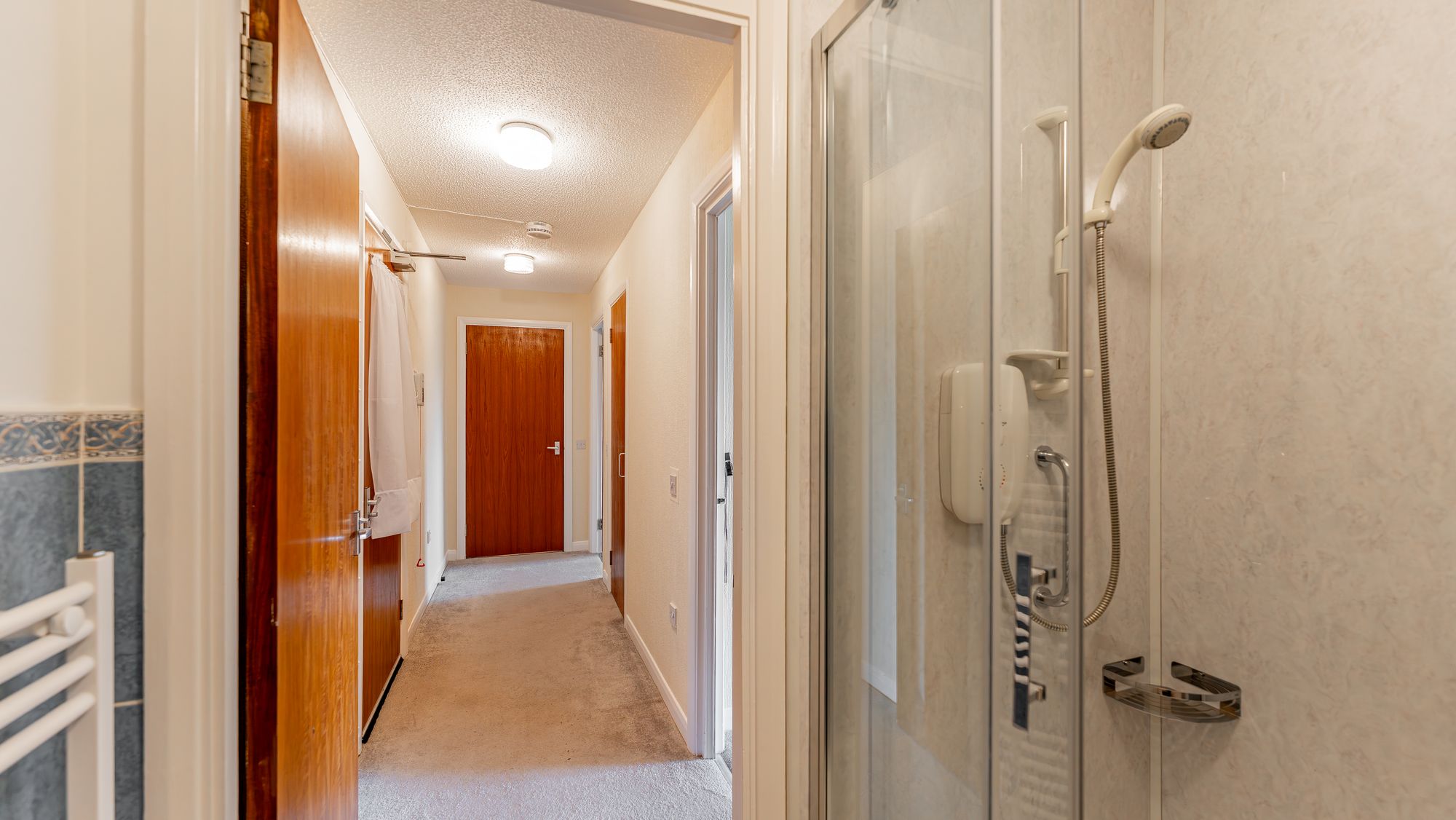This particular property enjoys a first floor position and affords quieter views to the rear of the building over the surrounding area. The building itself has a security controlled entry system at both entrances and it provides fantastic amenities for residents. These include an on-site warden during working hours, along with a modern well decorated residents’ lounge and a guest suite that can be booked per night, should relatives or friends come to visit. There is lift access to each of the floors and the communal hallways are pleasantly decorated.