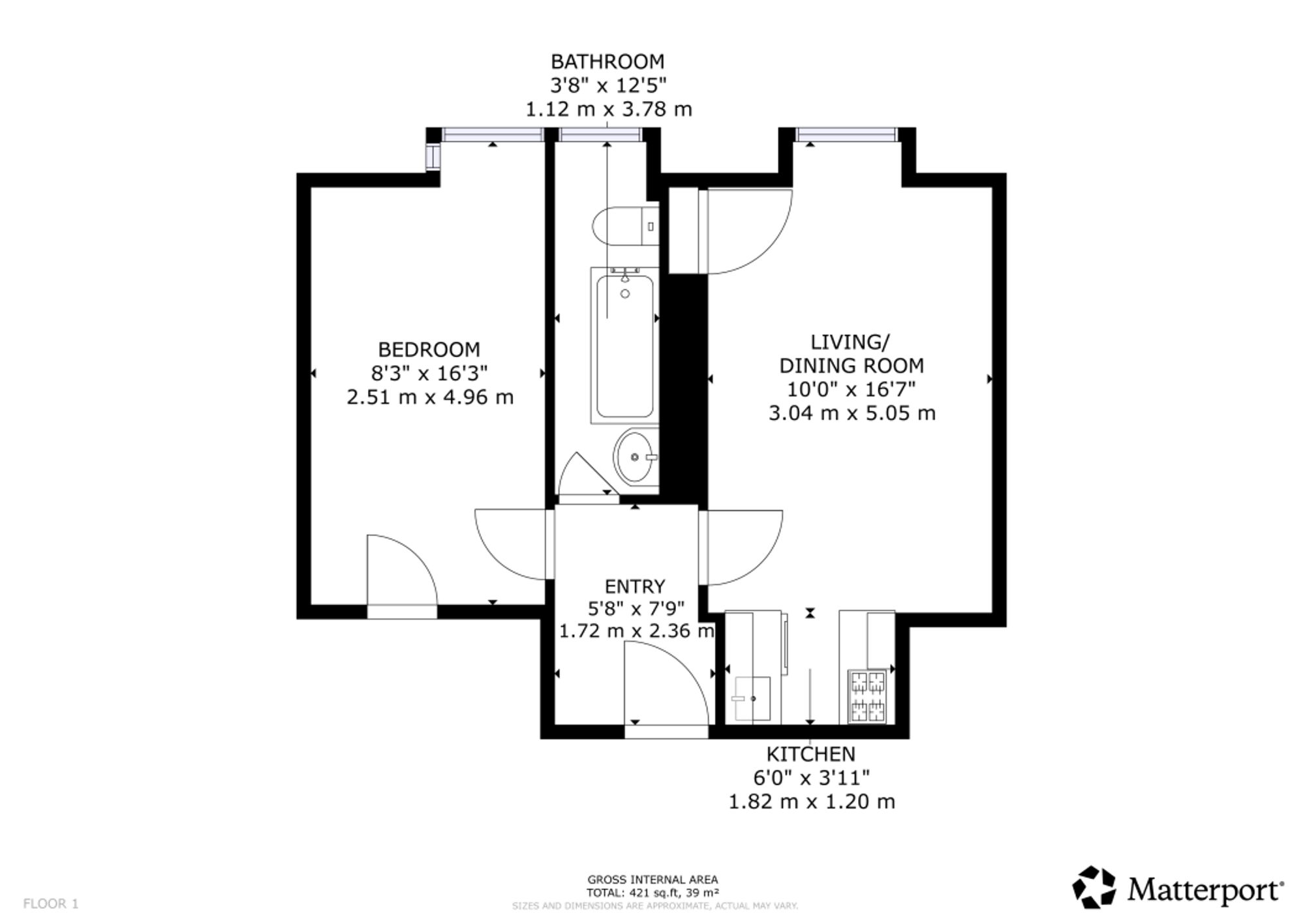 Internally, the accommodation comprises an inviting entrance hall, a generous double bedroom featuring a walk-in wardrobe, a well-presented bathroom with shower over bath, and a bright lounge with an open plan fitted kitchen boasting floor and wall mounted units.