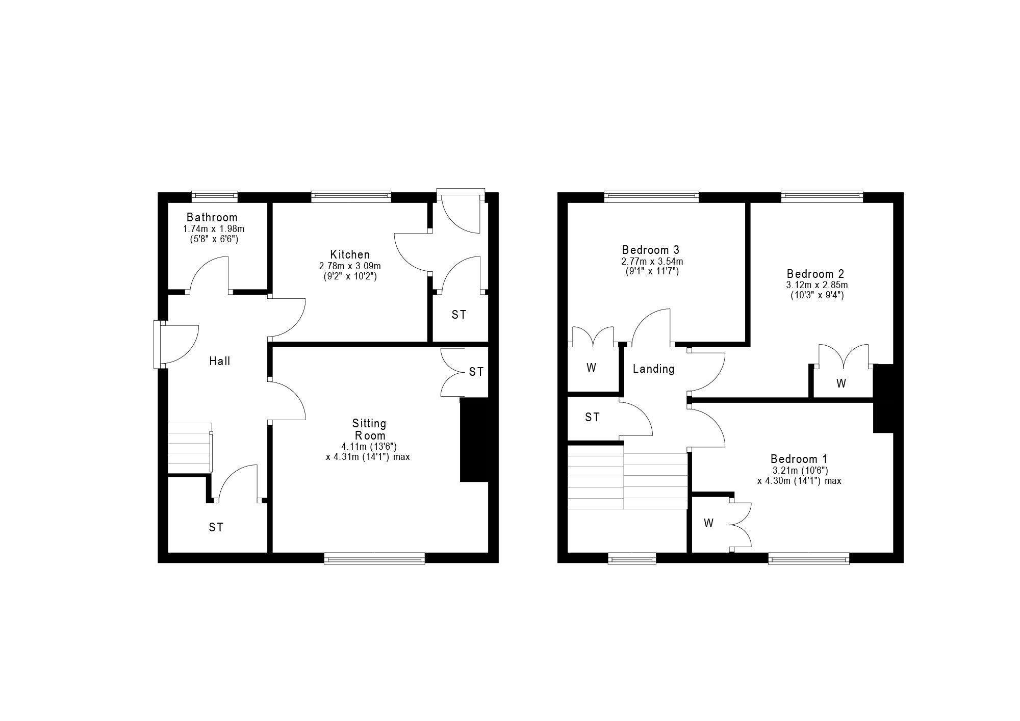 Bedroom Two 10’3” x 9’4” 3.12m x 2.84m