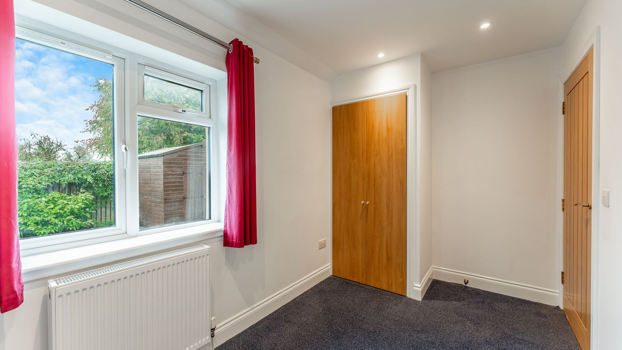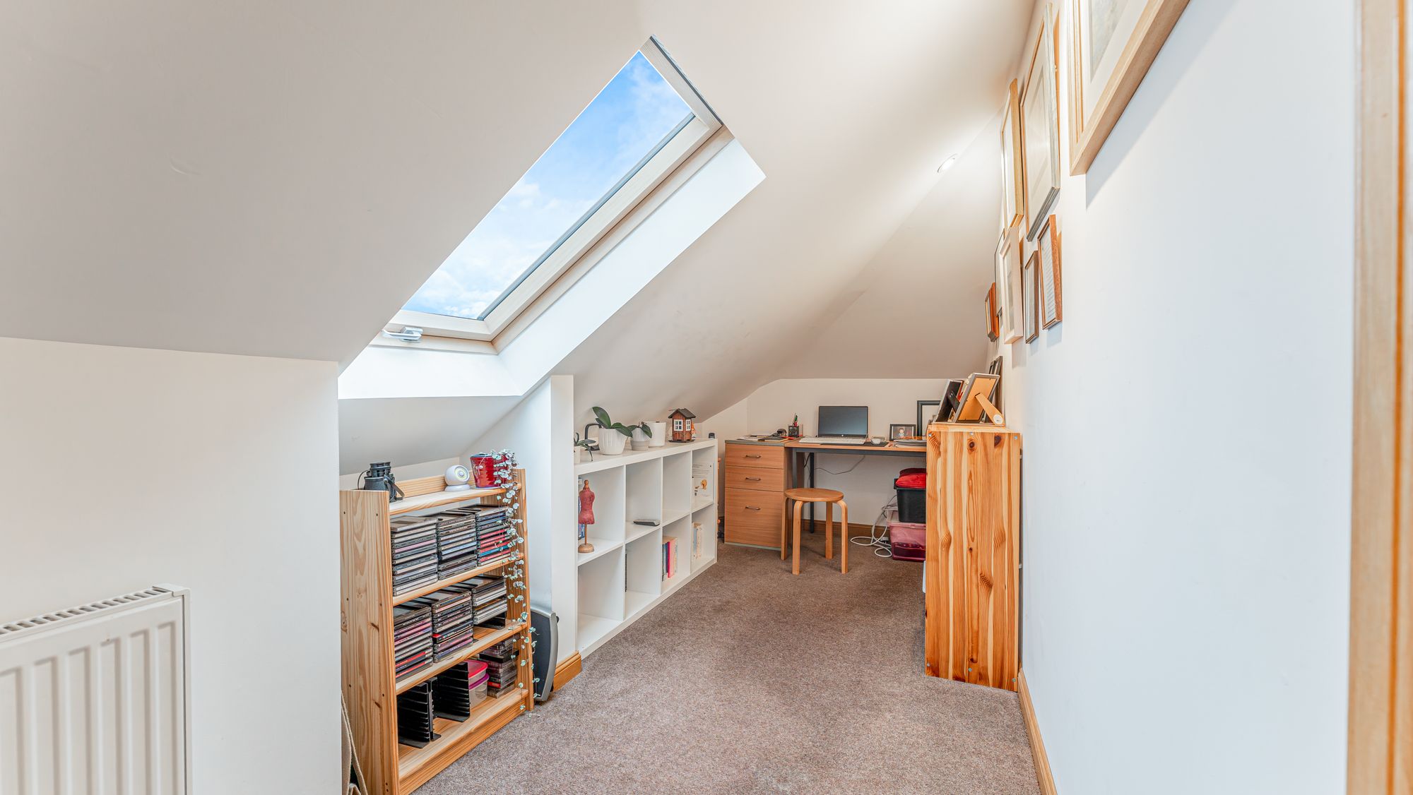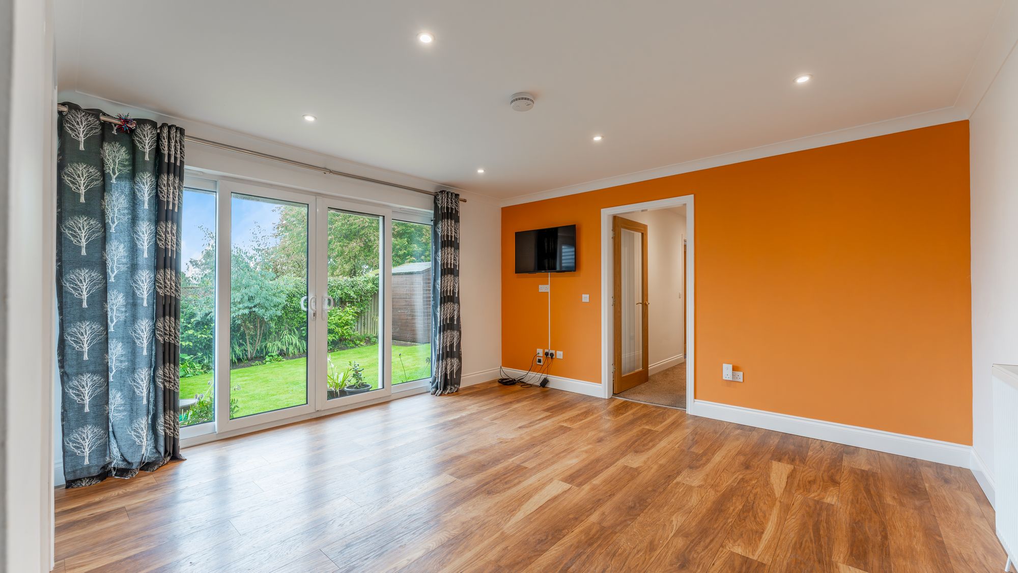 Outside, the property sits on a predominantly level plot. From the upper floor, there are views over the surrounding countryside. The rear garden is fully secure, with a mix of mature hedges and timber fencing on the periphery. There is also a patio area and a separate bin store. Off-street parking is provided by a large driveway.