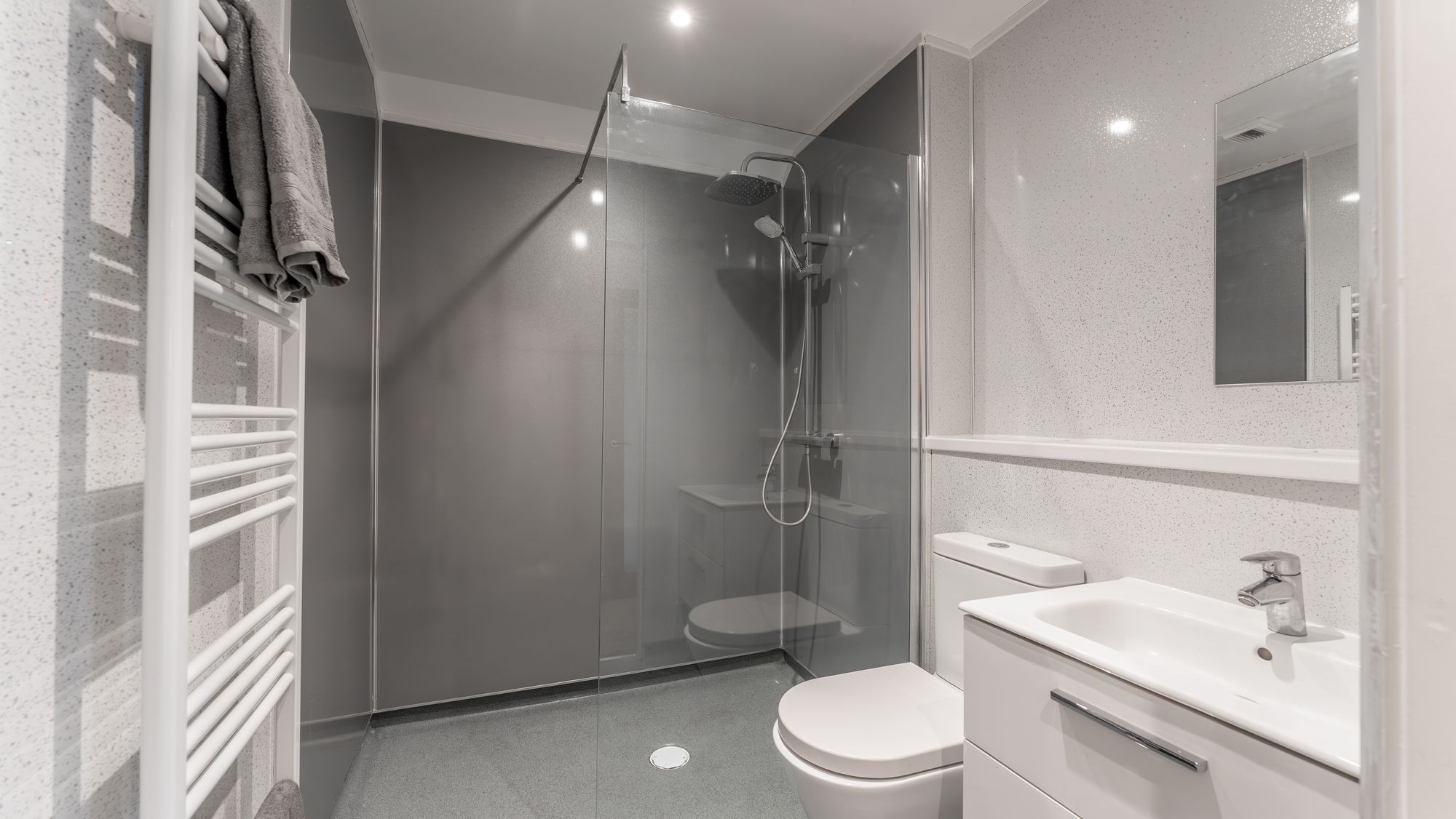 Off the kitchen is a utility room that allows access to the rear extension. This has been carefully curated to be either an extension of the living space or an entirely separate unit. The extension has its own access point at the side and consists of an entrance hall; spacious living space with sliding patio doors; and a fully fitted kitchen with a range of gloss units housing the integrated appliances. The living room leads to the wet/shower room and then onward to two bedrooms and a study, which could easily be combined into one large bedroom (subject to the necessary consents). Additionally, the extension is served by its own combi boiler, providing independent heating and hot water.