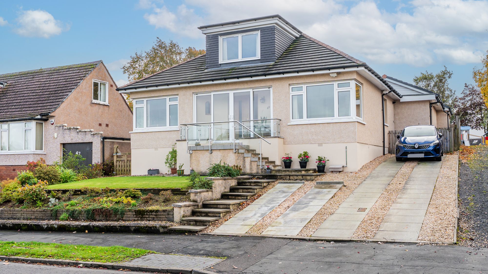 Occupying a peaceful position within the ever-popular Keystone Quadrant, this immaculately presented detached bungalow offers an exceptional level of versatility and space. From street level, the property appears as a beautifully maintained and stylishly finished home, complemented by attractive gardens and a neat exterior that immediately impresses. The home has been thoughtfully upgraded and extended by the current owners, ensuring a turn-key solution for those seeking modern living within a highly desirable Milngavie address.