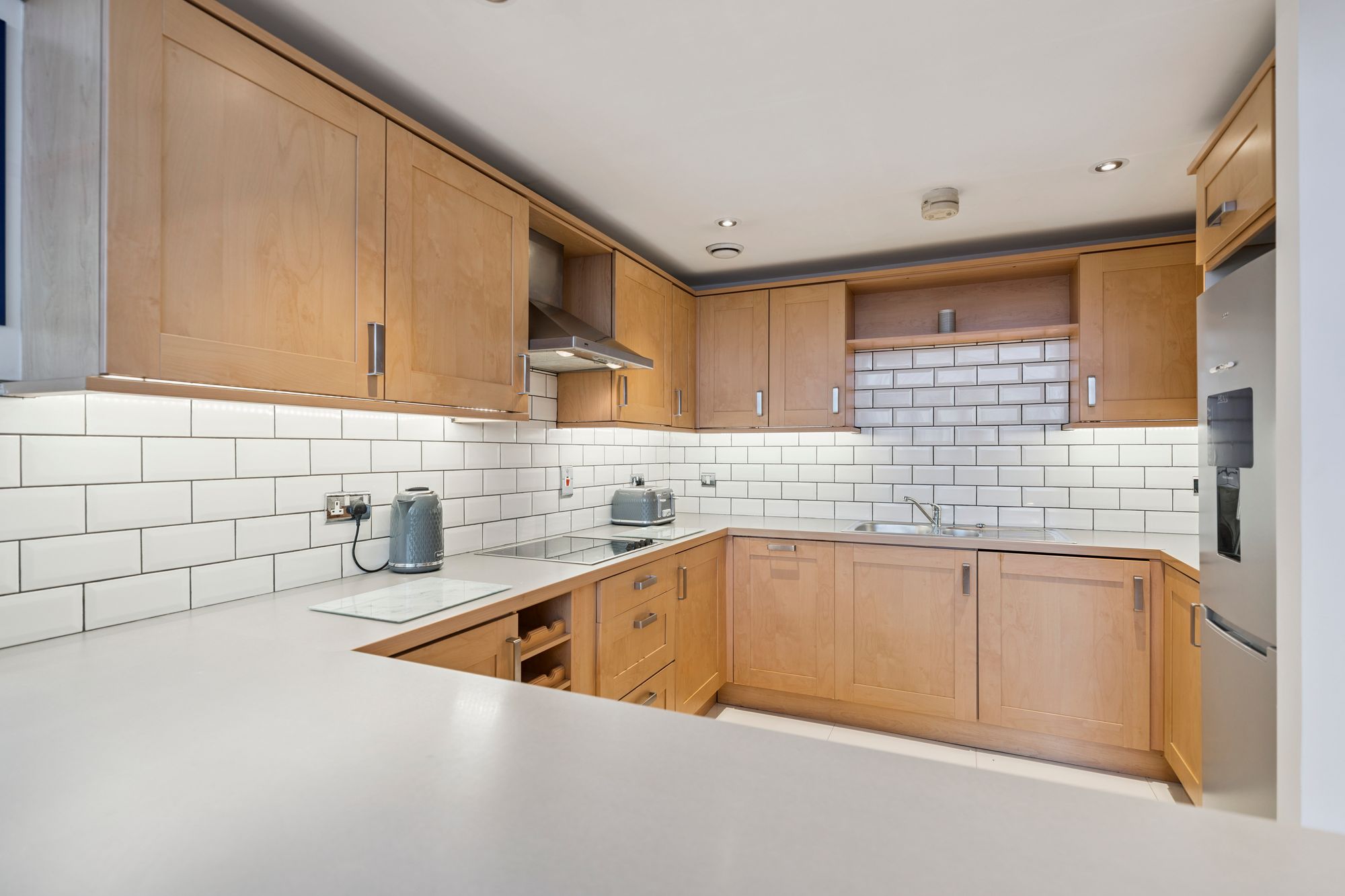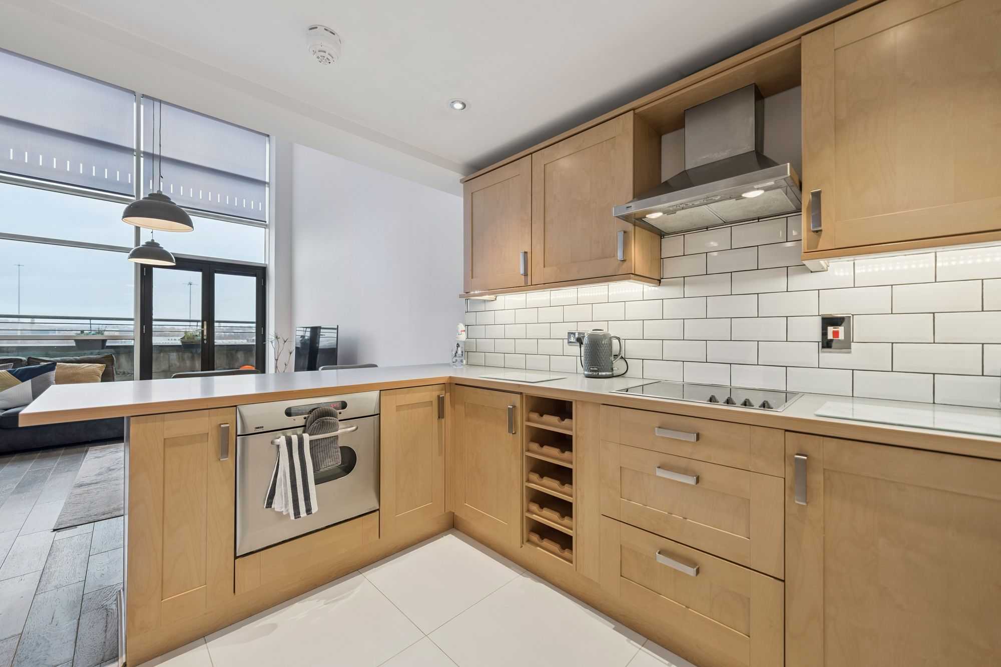 The building is entered via a secure intercom system, with both stair and lift access to all levels. The attached photographs, floor plan and HD video tour provide an indication of the size and layout of the apartment. In summary, the accommodation comprises a welcoming entrance hallway with storage cupboard, a spacious open-plan living and kitchen area with access to a balcony, and a well-appointed kitchen featuring a range of base and wall-mounted units complemented by a white tiled splashback.