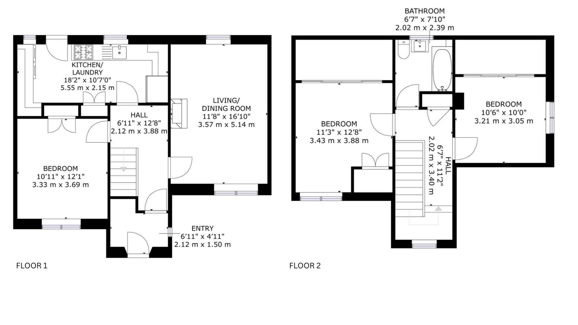 The accommodation is bright and well-proportioned throughout. On the ground floor, the home opens with an entrance vestibule leading into a spacious hallway with a staircase to the upper level. The generous lounge enjoys ample natural light and offers a cosy space for relaxing or entertaining. A well-sized double bedroom is also located on this level, providing flexibility for use as a principal bedroom or guest accommodation. The kitchen, located to the rear of the property, offers a practical layout with ample worktop space and storage, and could easily be modernised to suit individual taste.