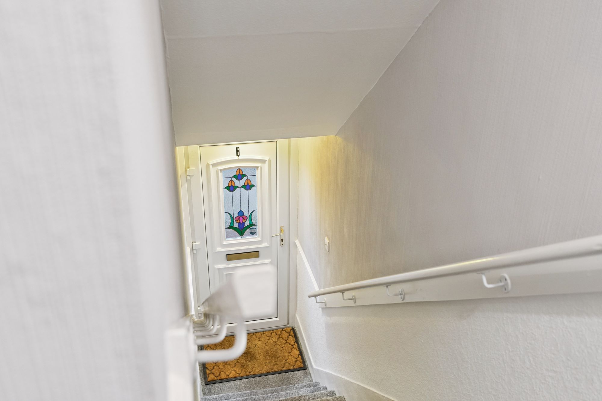 The home for sale is held within an attractive 'four in a block' style building which is set within a broad, deep plot. Externally the property has been well maintained and the roof is pitched and tiled. The garden grounds are very neat and have been designed with ease off maintenance in mind with flagstone slabbing and timber garden shed to the rear.