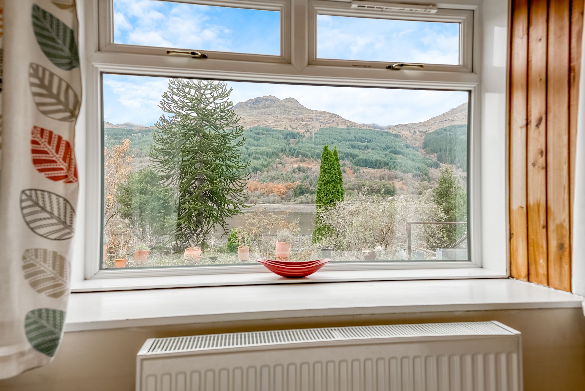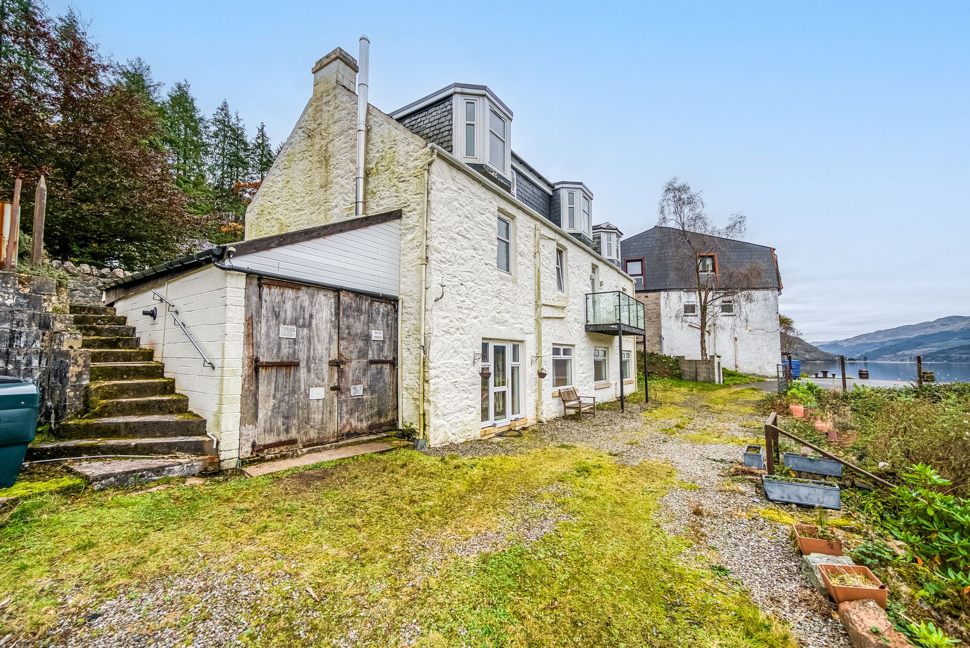 This charming detached villa enjoys a truly enviable shore front position overlooking Loch Long, offering breathtaking panoramic views towards The Cobbler and the Arrochar Alps. Currently arranged as two self-contained living areas held on a single title, ‘Cairnview’ offers exceptional flexibility, ideal for use as a family residence with independent living space, buy to let, or potential reconversion to one substantial family home.