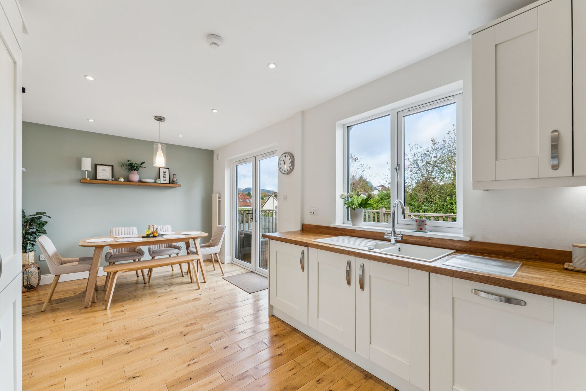 Extending to approximately 1,500 square feet, the property provides extensive and adaptable family accommodation arranged over two levels. The ground floor is introduced by an entrance vestibule leading to a welcoming reception hallway with staircase to the upper floor. A bright and spacious lounge, enhanced by dual-aspect windows and a feature log-burning stove, provides an inviting setting for everyday living and entertaining. The large open-plan dining kitchen is fitted with an excellent range of contemporary cabinetry, complemented by premium integrated appliances and ample space for family dining. Also located on this level are two comfortable double bedrooms, with the larger of the two benefiting from large double-aspect windows. The ground floor is complete with a well-appointed family bathroom hosting a three-piece suite and shower over bath.