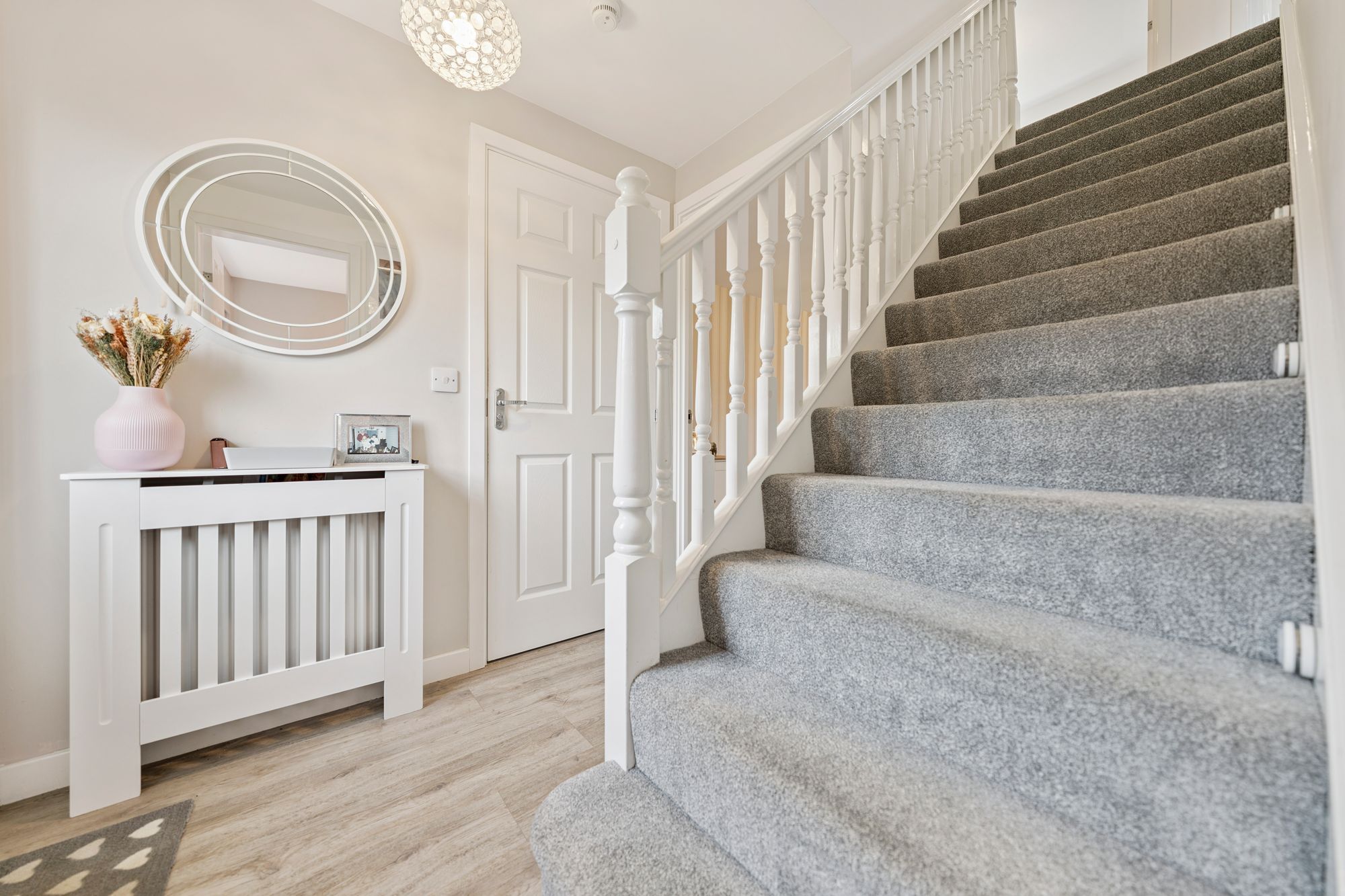 The home for sale is an attractive modern semi-detached villa which is externally presented in a red brick finish. The property is held beneath a pitched and tiled roof and has high performance UPVC double-glazed windows. As mentioned, this lovely family home lies within a deep, broad plot which features a well-maintained front garden, off street parking and an impressive rear garden that is predominantly laid to lawn with a patio seating area. Internally this is a beautifully appointed family home which offers comfortable accommodation over two levels. It is plain to see that the current owners take great pride in the maintenance and presentation of their home and as such, the property is ready to be moved into and enjoyed by a new family immediately. In brief the accommodation extends to; entrance hall, downstairs WC, dining room and a lounge with adjoining kitchen that benefits from a variety of integrated appliances, base and wall mounted units. Stairs lead to the upper level of the property where you will find three bedrooms with then principal benefitting from an en-suite, a main bathroom, linen closet and a loft access hatch.
