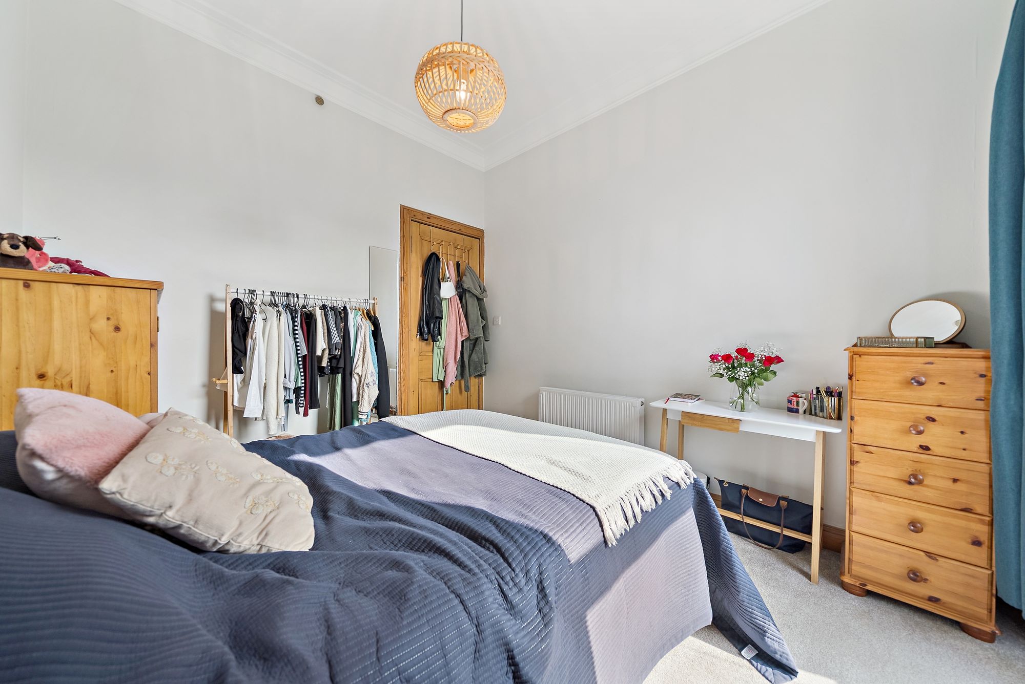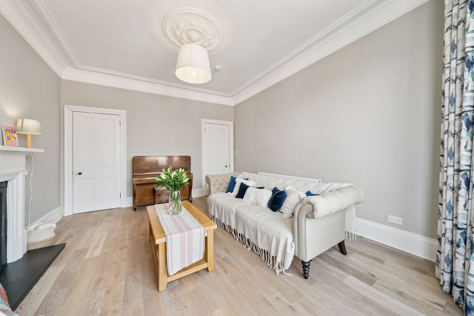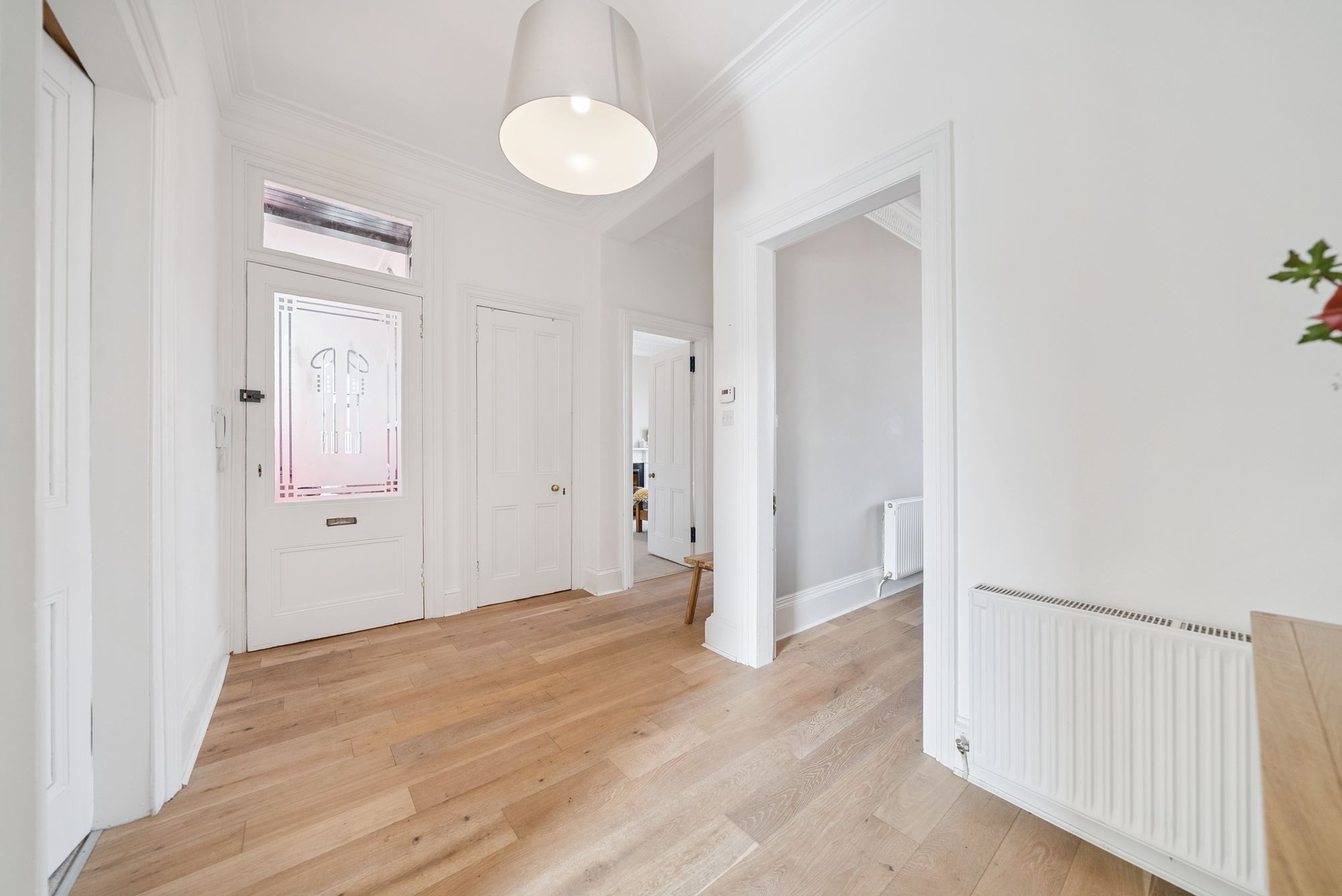 Access to the building is by a secure entry intercom system with stairs to all levels. There are lovely, well maintained communal gardens to the rear of the building. The attached photographs, floor plan and HD video tour give an indication of the size and layout of the flat. In brief, the accommodation extends to; welcoming entrance hallway with oak flooring and a walk-in storage room off; stunning bay windowed living room with original feature fireplace and walk in storage cupboard/home office space; two large double bedrooms, each with original feature fireplace; fully fitted dining kitchen with tiled splashback and appliances including integrated dishwasher, oven, hob, extractor and washing machine. The accommodation is completed by a main bathroom with three piece suite and shower over the bath. The property also benefits from new, double glazed sash and case windows throughout.