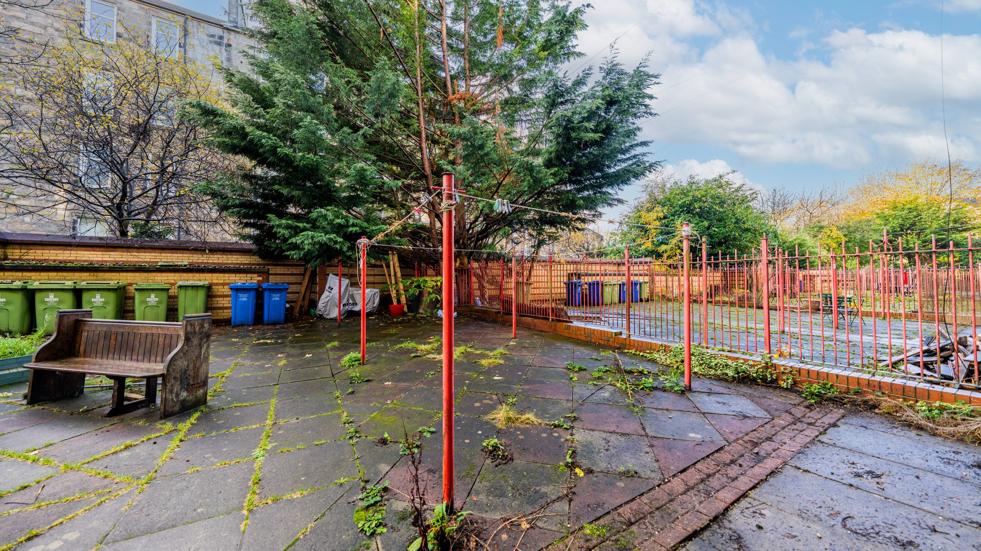 The property is situated on the top floor of an attractive red sandstone tenement building which has a secure entrance. The common areas are presented in good condition and the hallways are lit during the evening. At the rear of the building there is a communal shared area that is predominantly laid to lawn with paving and drying line/refuse stores.