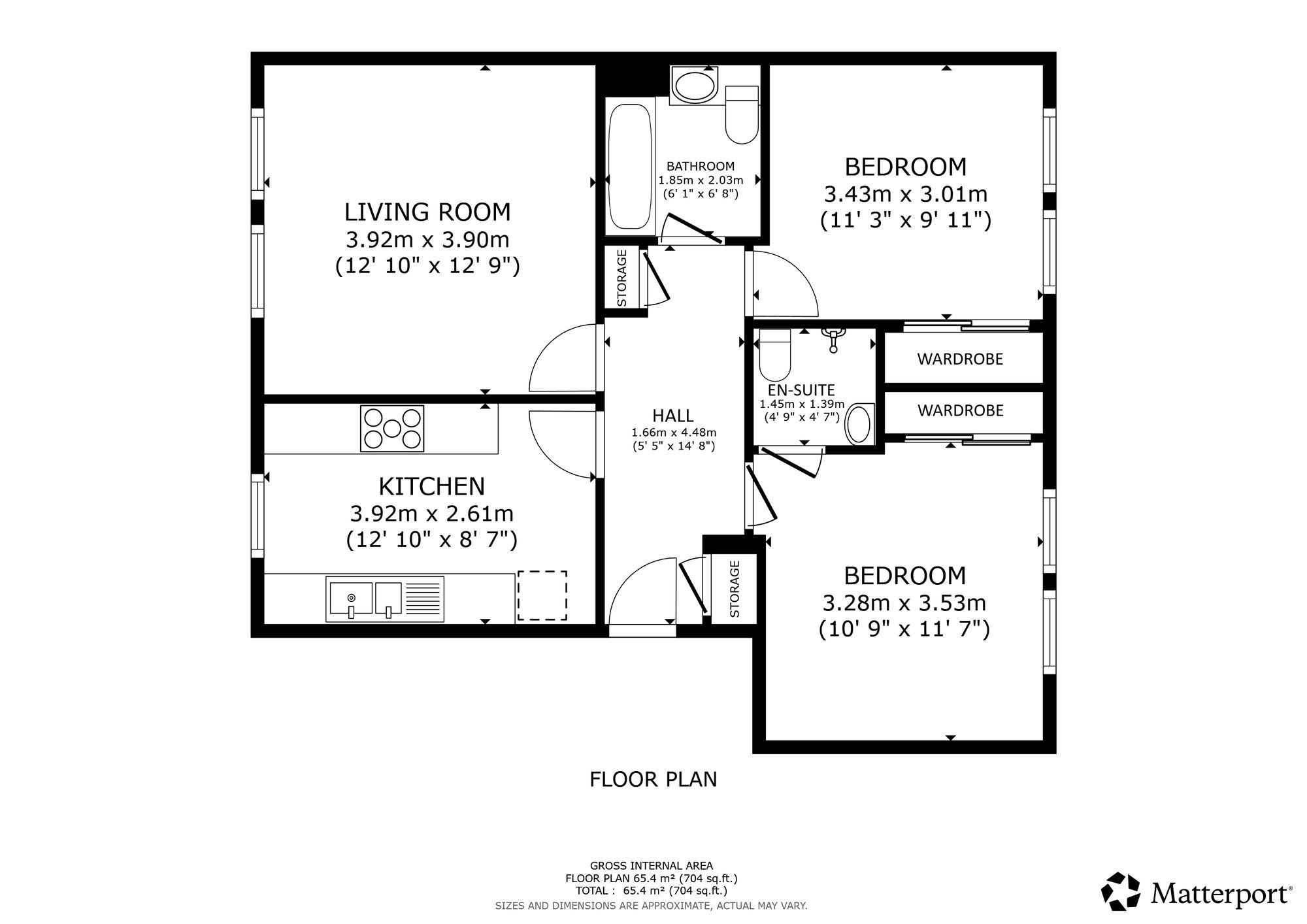 Inside, the property features a smart communal lobby with a secure entry system. Positioned on the top floor, the apartment is filled with natural light and offers generous proportions throughout. The accommodation includes a welcoming reception hall with two built-in cupboards; a spacious lounge; a modern, three-piece bathroom; and a well-appointed kitchen, complete with integrated appliances. There are two double bedrooms, each with large built-in wardrobes, with the master bedroom boasting an en-suite shower room. Additional benefits include double glazing, gas central heating, and an allocated parking space within the secure residents’ car park.