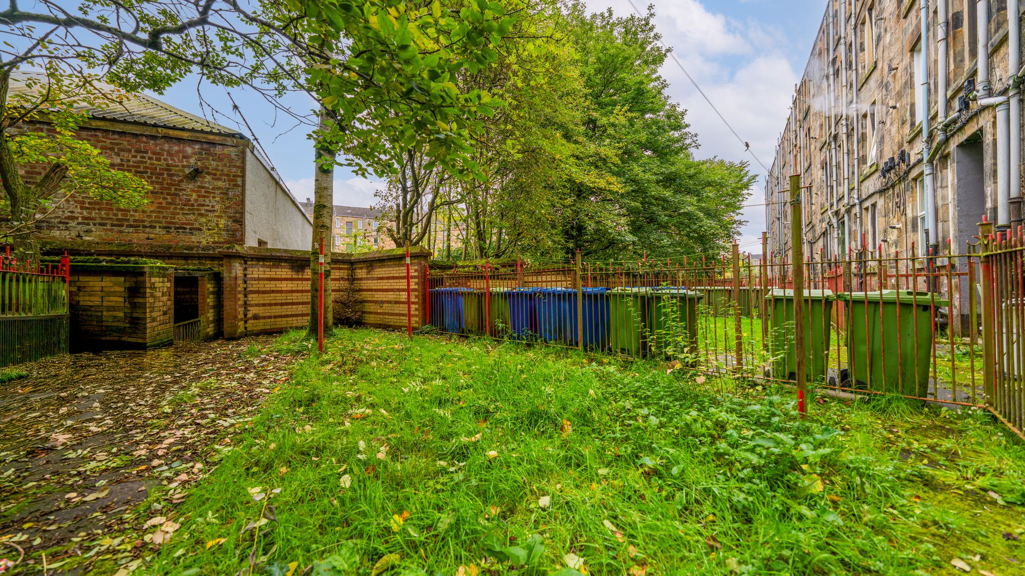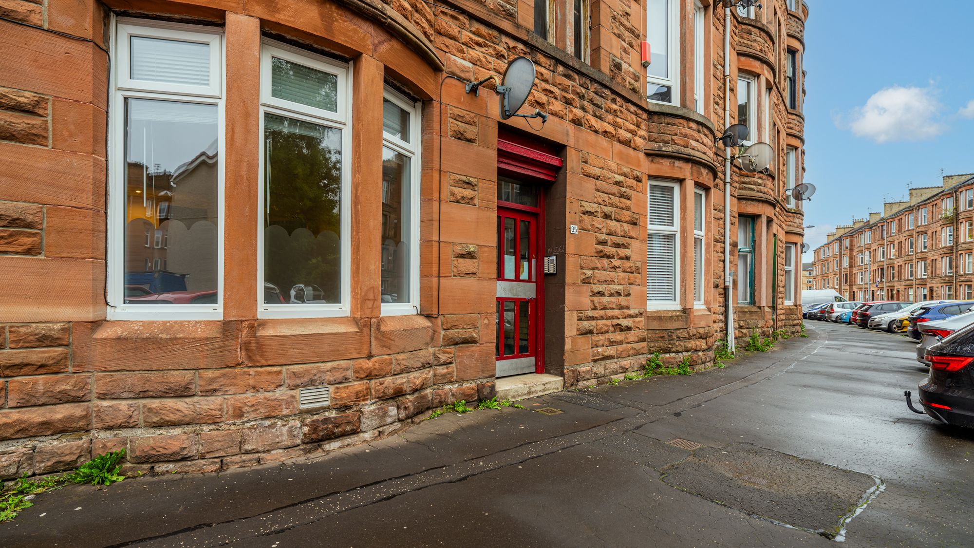 The property is situated on the ground floor of an attractive red sandstone tenement building which has a secure entrance. The common areas are presented in good condition and the hallways are lit during the evening. At the rear of the building there is a communal shared area that is predominantly laid to lawn with paving and drying line/refuse stores.