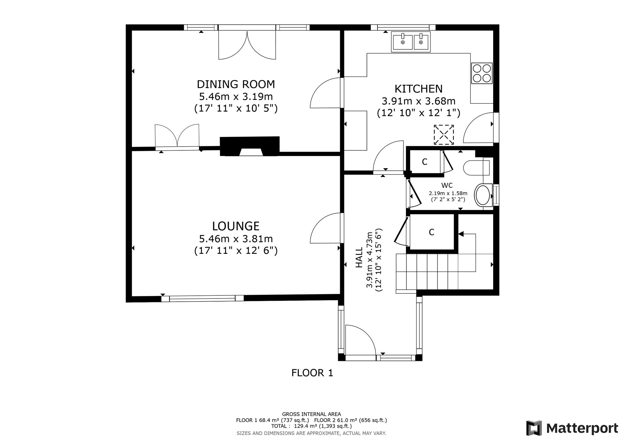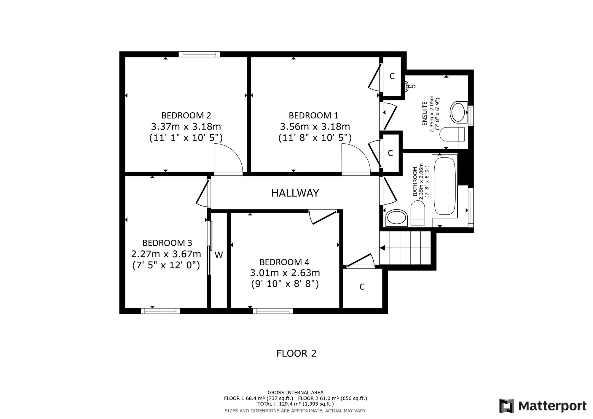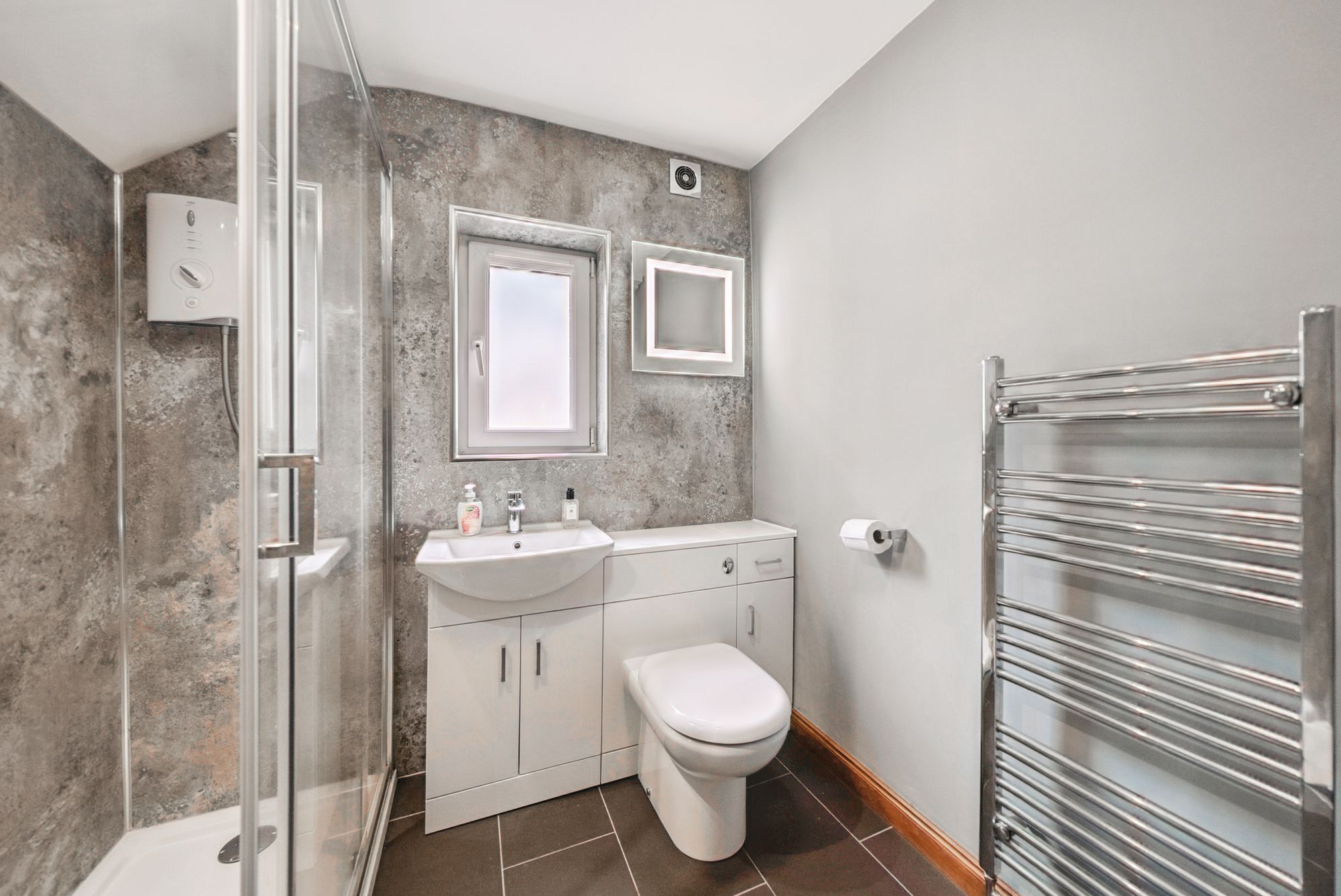 A timber staircase rises to the upper floor, where the landing provides access to the impressive master bedroom. This beautifully proportioned room offers ample built-in storage and a stylish, contemporary ensuite shower room featuring a large walk-in shower, wc and wash hand basin. Adjacent to the master suite is the modern family bathroom, complete with bath and shower overhead, wall-mounted radiator, wc and wash hand basin. Three further well-proportioned double bedrooms, one with built-in storage, providing excellent accommodation for family or guests. An additional storage cupboard on the landing adds further practicality. The property benefits from full double glazing and gas-fired central heating throughout, ensuring comfort and efficiency in every season.