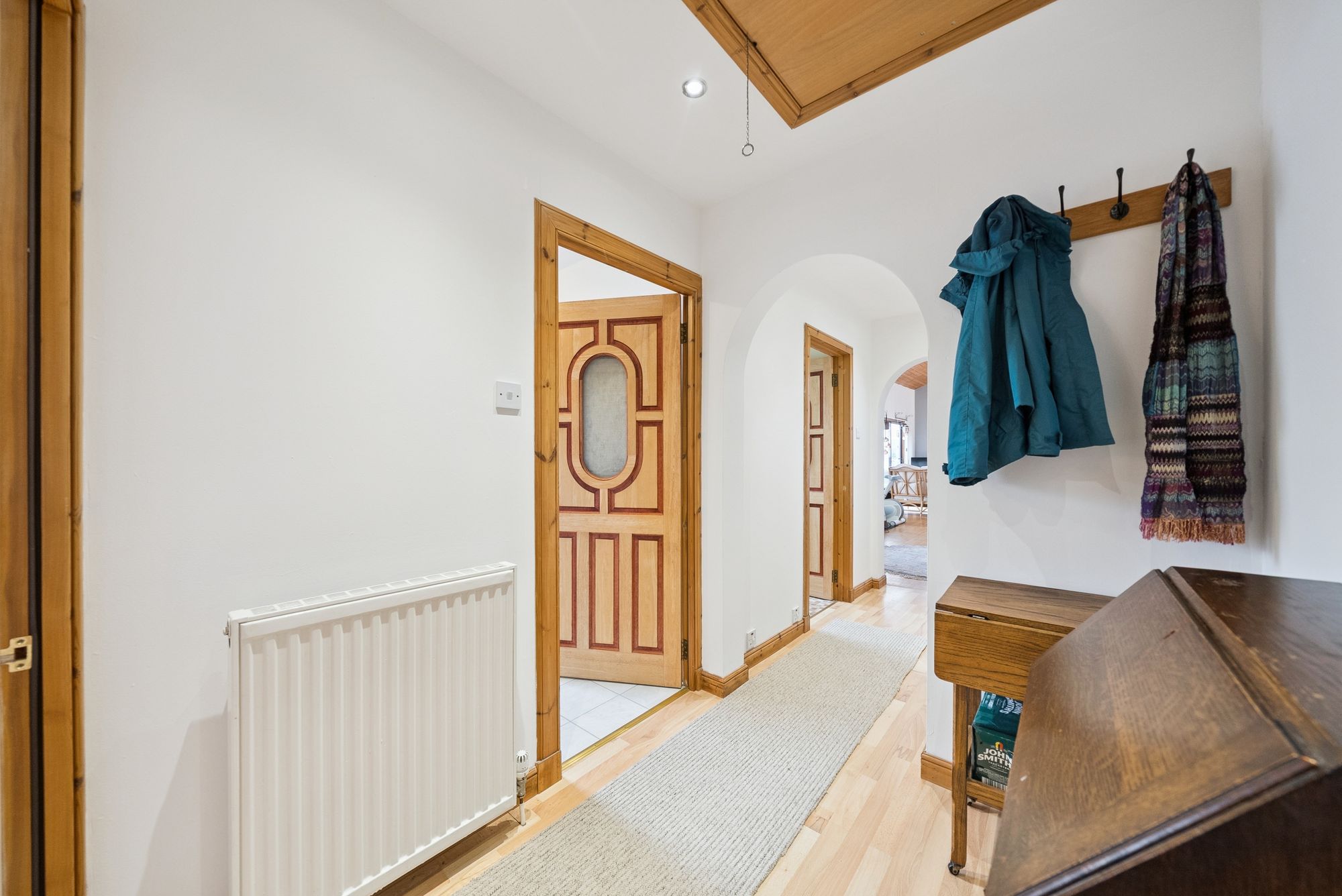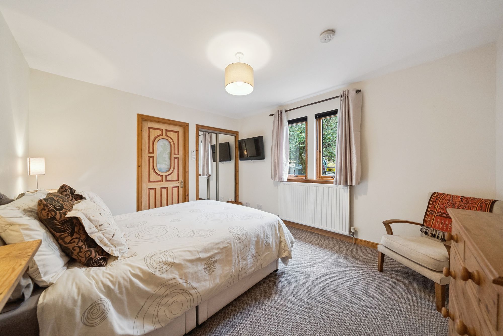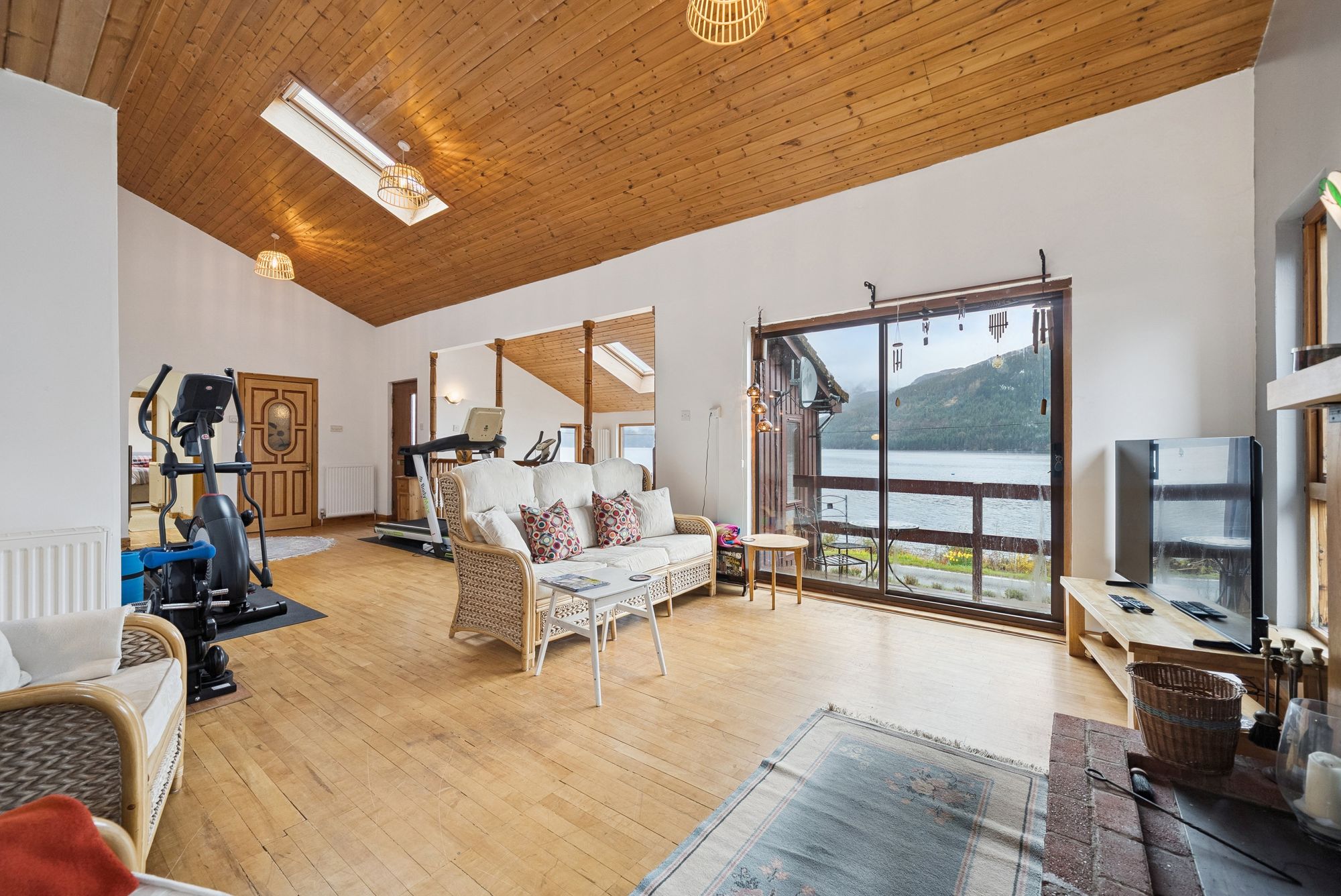 Internally, the accommodation is both flexible and generously proportioned and must be viewed to be appreciated throughout a pleasing and flexible layout which, from the front enters into a fabulous, bright and spacious dining room which flows seamlessly into the main family room which has sliding doors leading out to deck looking out to the Loch. There is also a charming and practical log-burning fire within the family room, perfect for cosy evenings while enjoying the panoramic outlook. From here, steps descend to a lower-level sun room, where the spectacular views can be fully appreciated, stretching across Loch Goil and towards Loch Long, with Carrick Castle itself forming a dramatic focal point, arguably, the finest views of any property in the area….