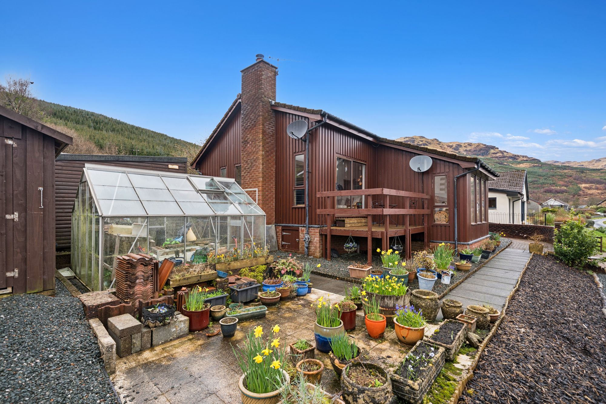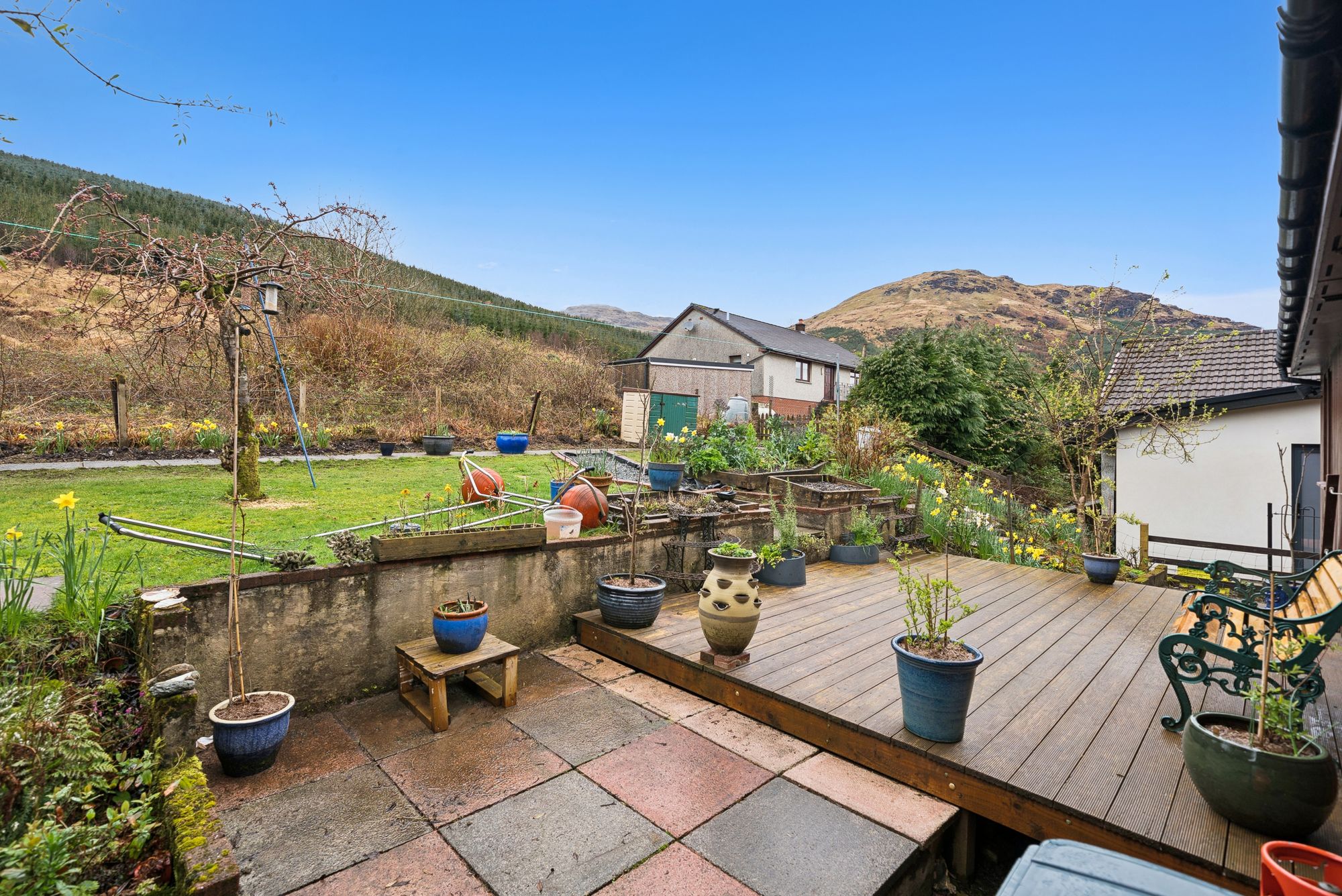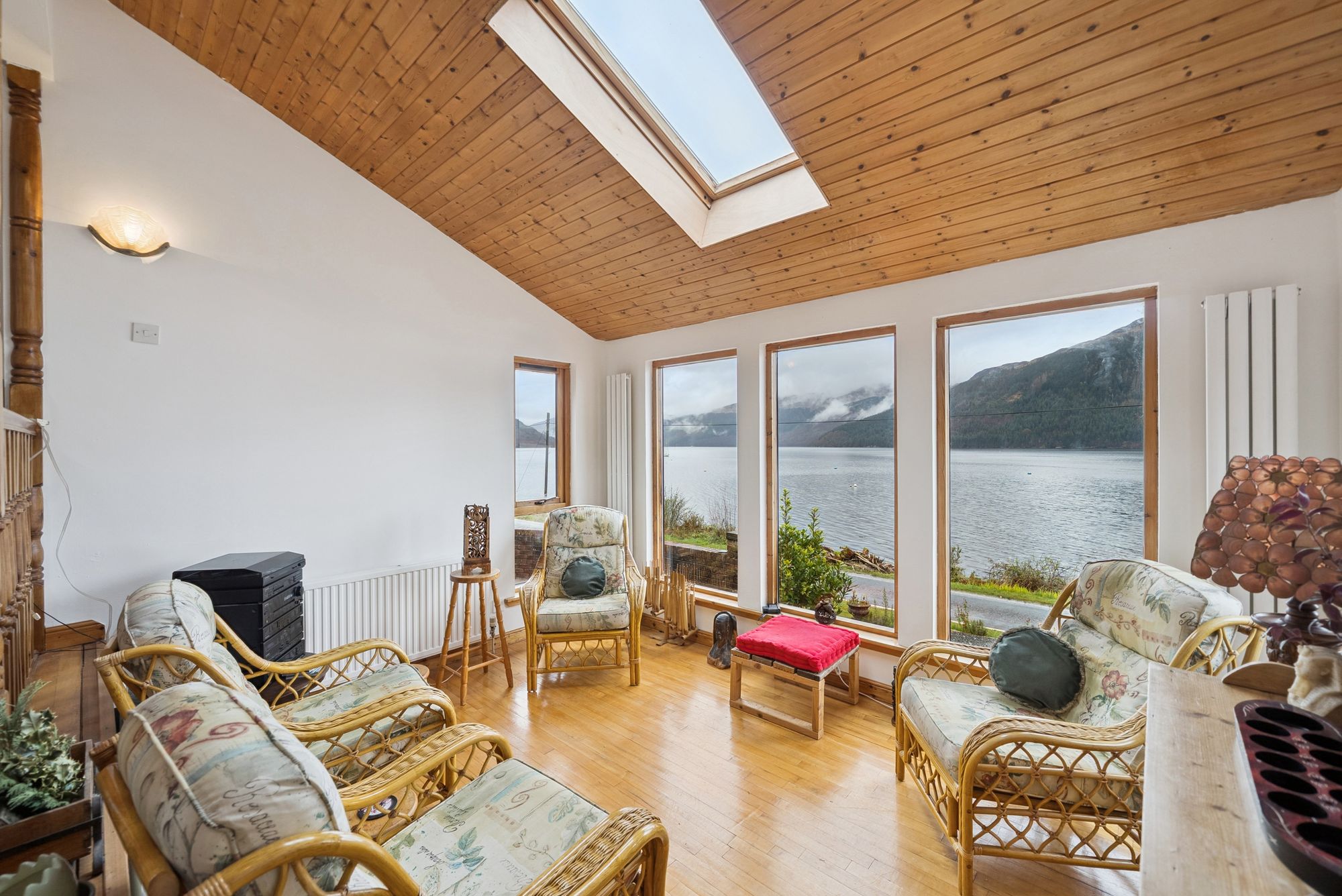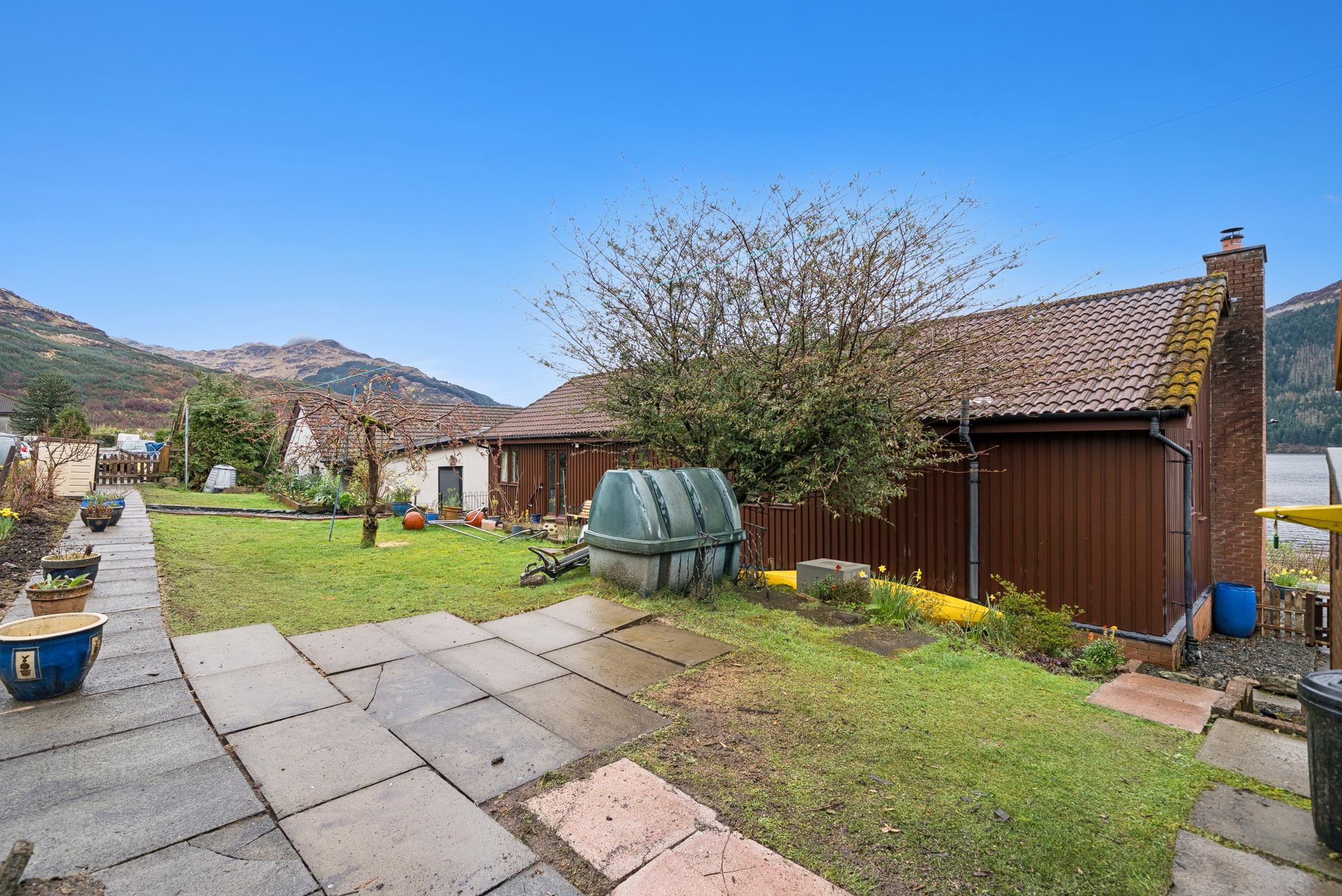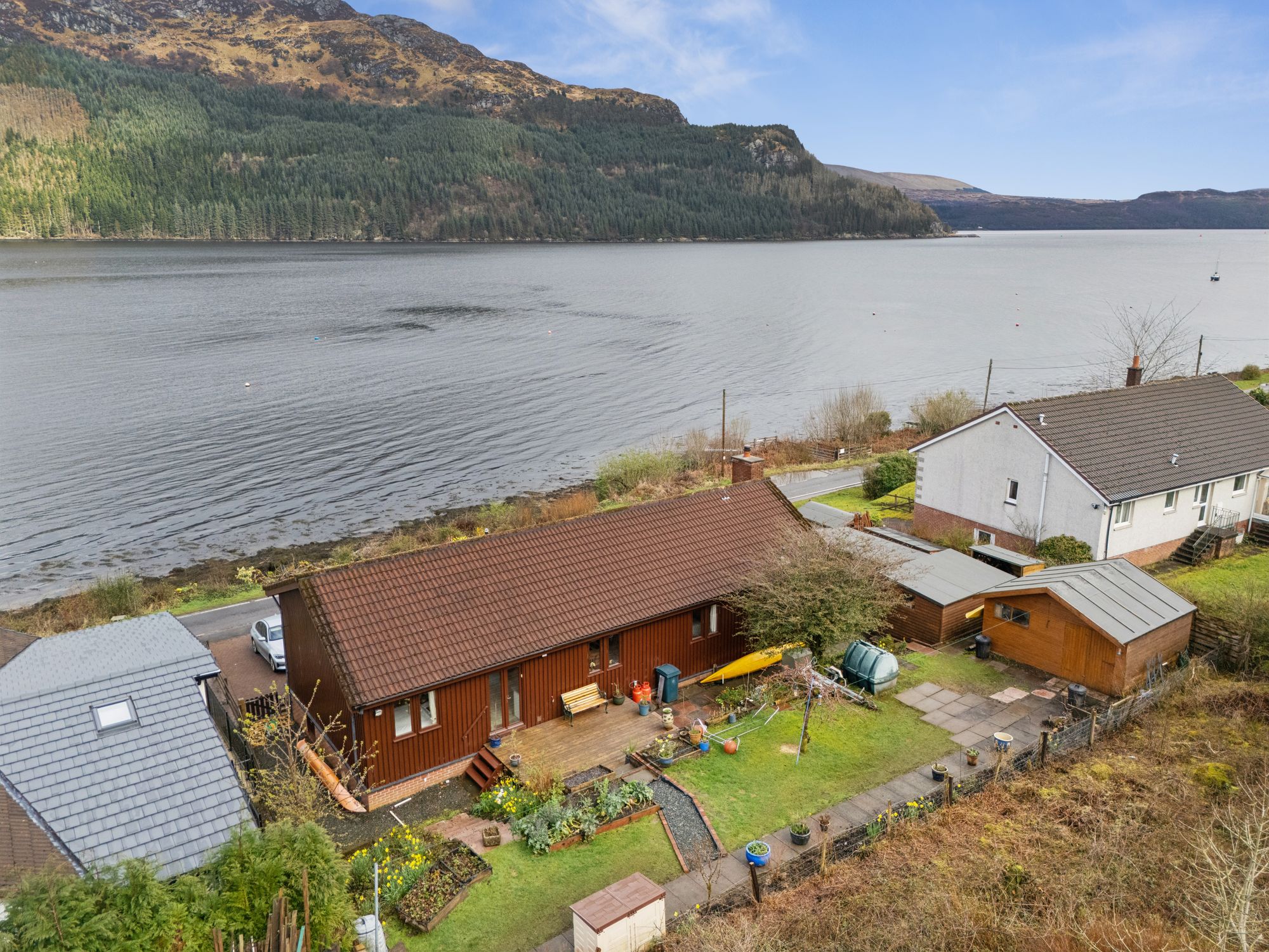 The rear gardens feature generous lawned areas, decks and a rich variety of plants, shrubs, trees, and a wide array of active fruit trees, creating a delightful outdoor environment. Additional off-street parking is also provided and accessible via Morrison’s Place to the rear. Modern comforts include oil-fired central heating circulating through a recently fitted boiler, upgraded insulation, high-quality fixtures and finishes throughout. Upgraded timber decking is fitted to both the front and rear - ideal for outdoor entertaining while, from the brightest position in the village, soaking in the views out over the Loch and the stunning surroundings . Moorings on the Loch are also available through the local boat club at attractive, reduced costs.