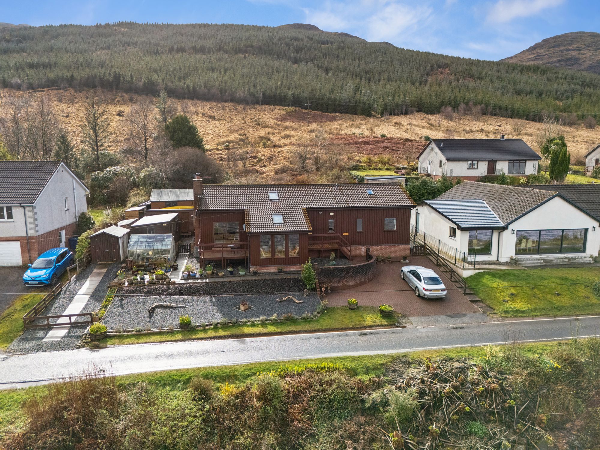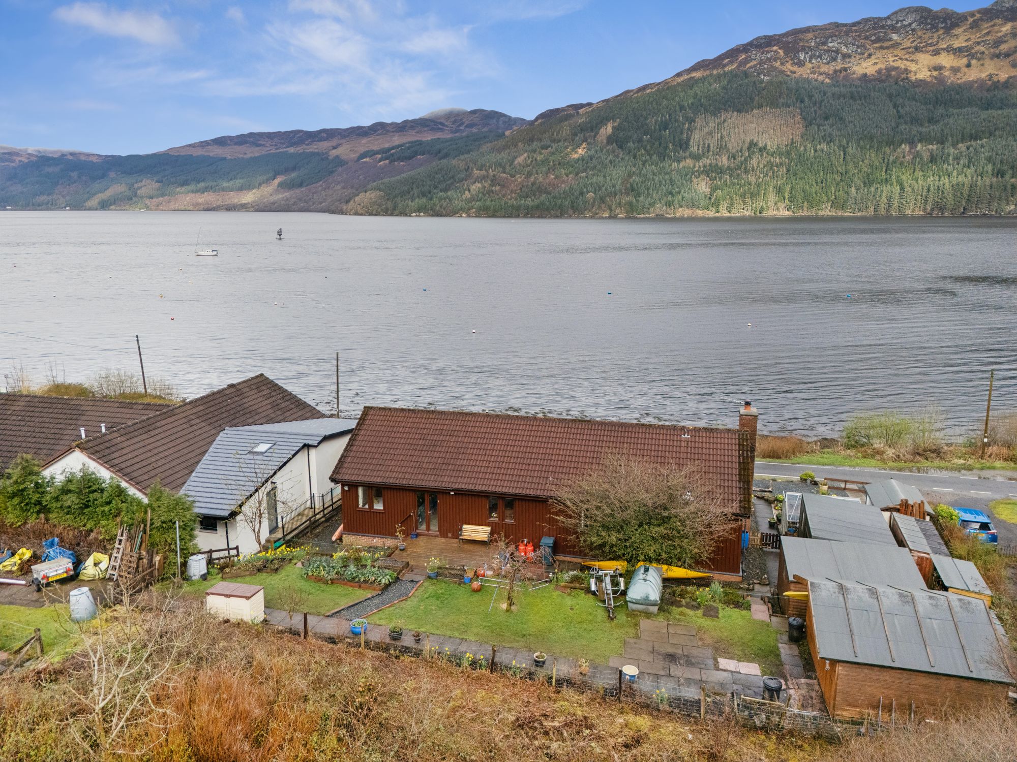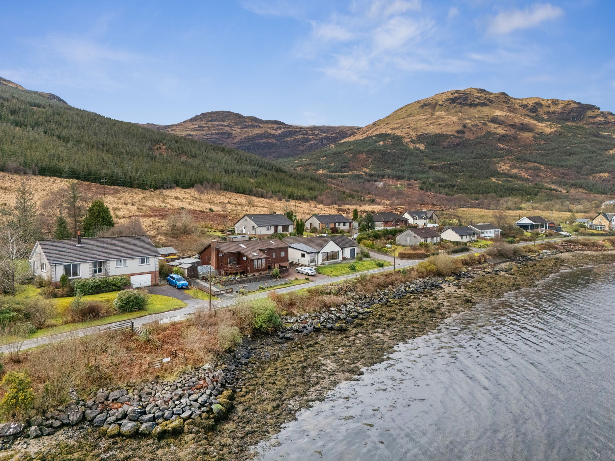 Despite its tranquil setting, the area benefits from a regular bus service connecting to nearby towns, Dunoon and Helensburgh, while dramatic road links provide access towards Helensburgh, Dumbarton and Glasgow in the West and well known and much loved destinations far beyond - romantically considered as the ‘gateway to the Highlands.’ and, some of the best driving roads in Scotland. Local schooling is available within Lochgoilhead and surrounding areas, and convenient grocery delivery services are offered by major supermarkets including Asda and Morrison’s, ensuring everyday essentials are easily accessible even in this beautifully idyllic rural retreat.