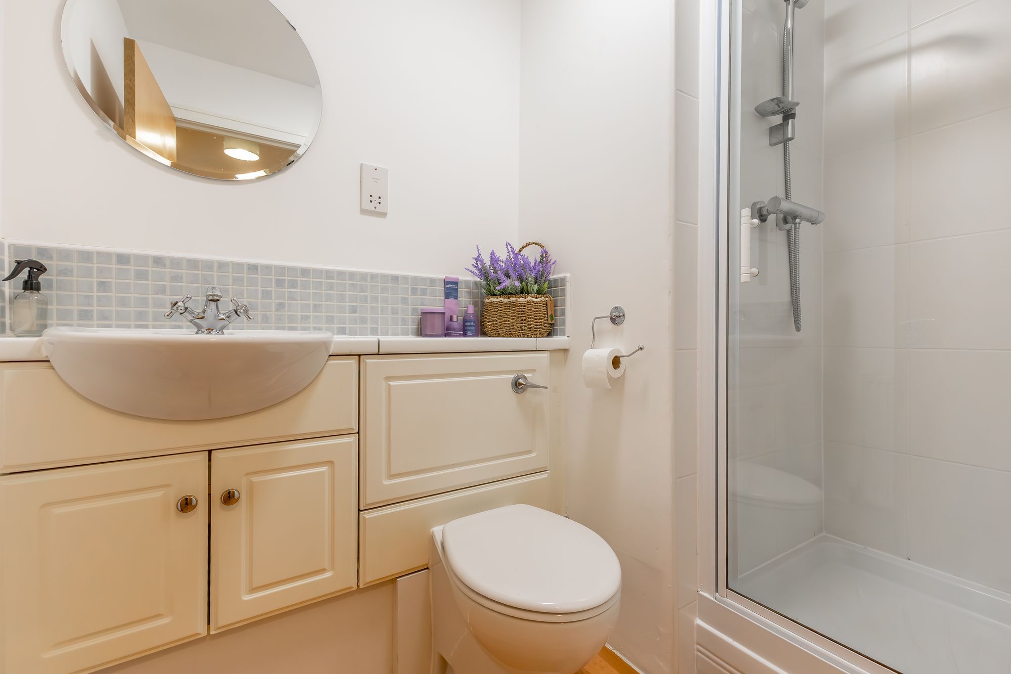 Well situated, bright and spacious, two-bedroom apartment bursting with features and with an open outlook, presented to the market as an ideal first-time buyer’s property, or for investors looking for a buy-to-let opportunity. This fantastic apartment is situated on the ground floor of a modern, factored development, nestled in a quiet location, just off Leith Walk. The accommodation is welcoming with many convenient features, ideal for city centre living. The property is entered via secure entry door system. The entrance hallway with storage cupboards provides access to all rooms and leads through to the generous open plan kitchen living room, with two sets of patio doors flooding the room with light and providing access to the privately owned terrace. The well-equipped kitchen provides a good range of cupboards and storage, and the appliances include gas hob, electric oven, extractor hood, dishwasher and fridge freezer. The primary double bedroom has the advantage of an en-suite shower room as well as built in wardrobe space. The second double bedroom is well proportioned and also has built in wardrobe spaces. There is a main bathroom with main shower over the bath, as well as storage within the vanity units surrounding the basin and toilet.