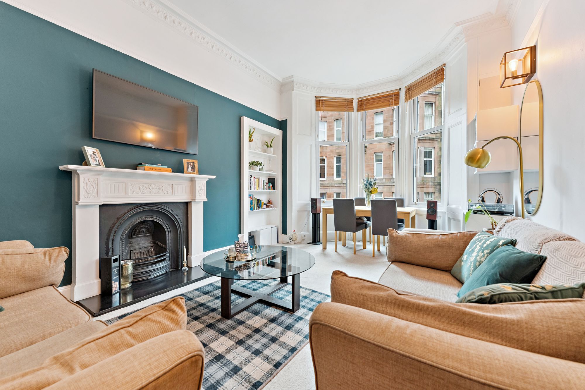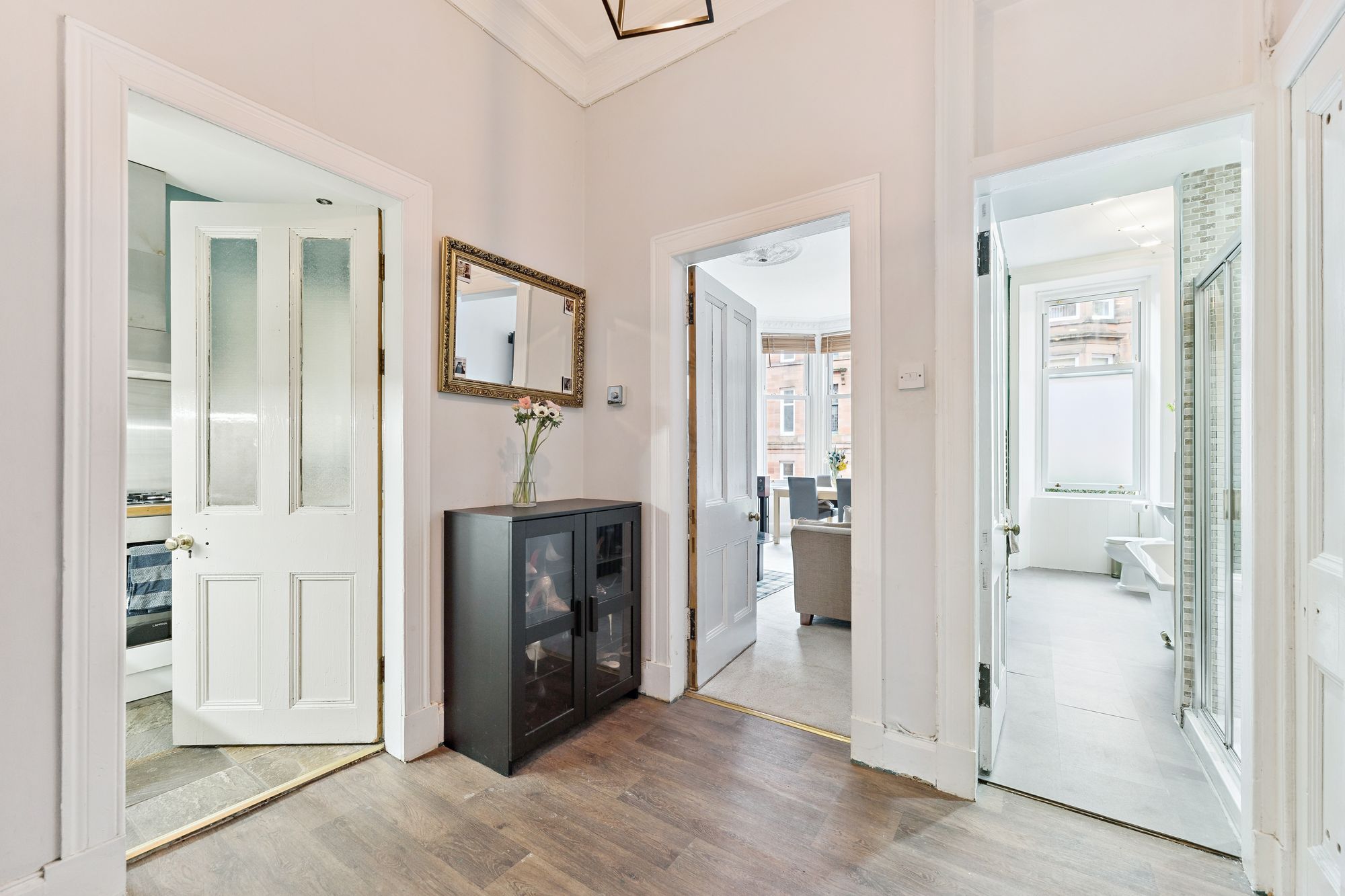 Perfect for a young professional couple or students attending Glasgow University, this beautiful two-bedroom home enjoys an enviable position. Just around the corner from popular West End haunts, the next owner of this property will not struggle for options when trying to decide where they are heading to for a bite to eat or a few drinks. Dowanhill Park is just a few minutes' walk from the home for sale and amenities in Hyndland, Partick and Byers road are just a five-to-ten-minute walk from the apartment's front door. As such, supermarkets, bars and restaurants, bakeries and public transport links can all be accessed within a few minutes of leaving the flat.