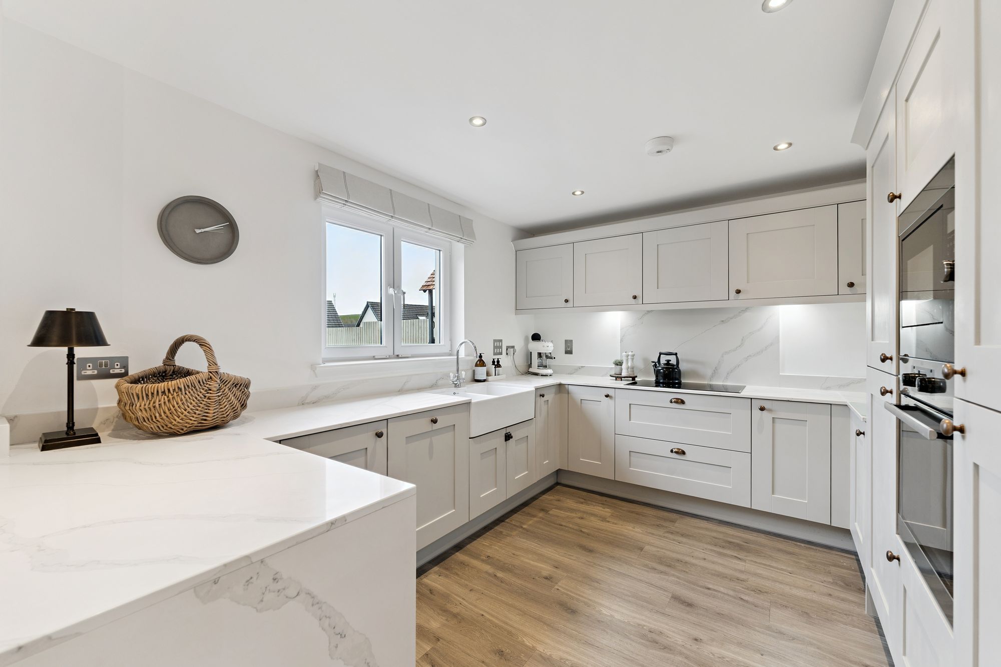 Clyde Property are delighted to present to the market this impressively upgraded and beautifully decorated five-bedroom detached family home, located within the sought-after ‘Kilmardinny Gait’ development in Bearsden. Built by Robertson Homes, this is the Hutton Grand house type, offering circa 2,400 sq ft of thoughtfully designed living accommodation.