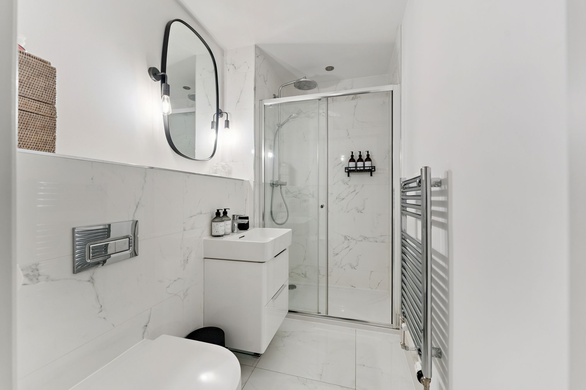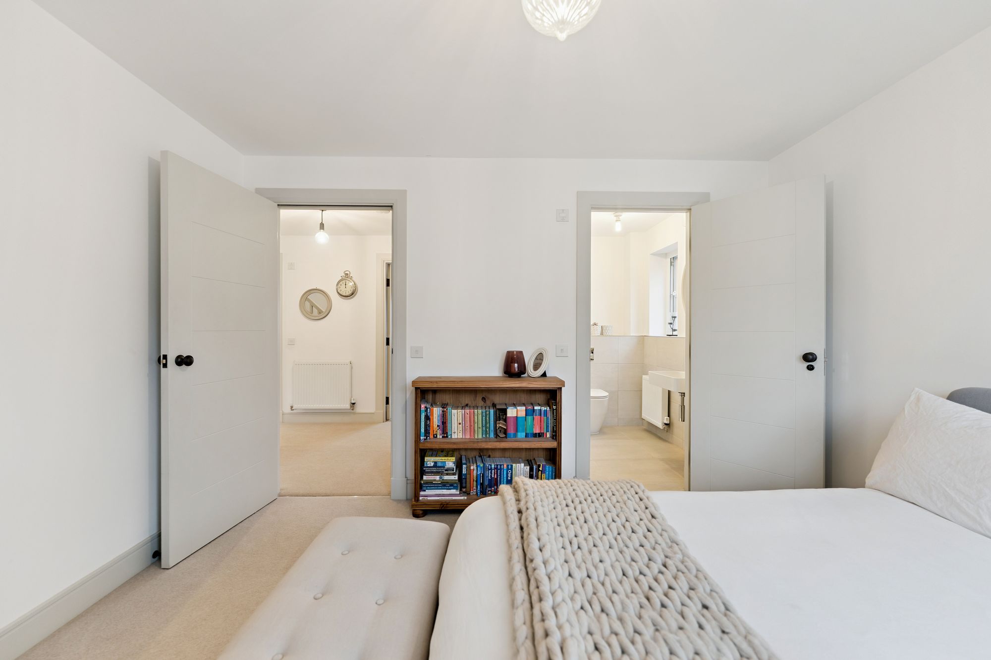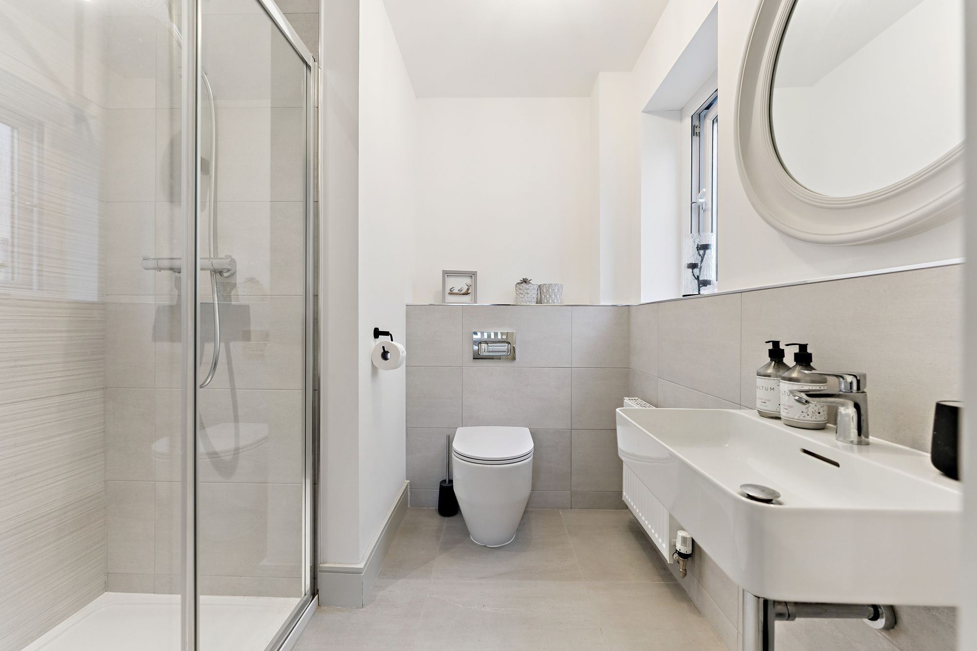 On the first floor, there are four generously sized double bedrooms. Three of the bedrooms benefit from upgraded fitted wardrobes. The principal bedroom is particularly impressive, featuring a Juliette balcony, extensive fitted wardrobe space, and a luxurious en-suite shower room finished with Porcelanosa tiling. Bedroom two also enjoys fitted wardrobes and its own stylish en-suite, again with Porcelanosa tiles.