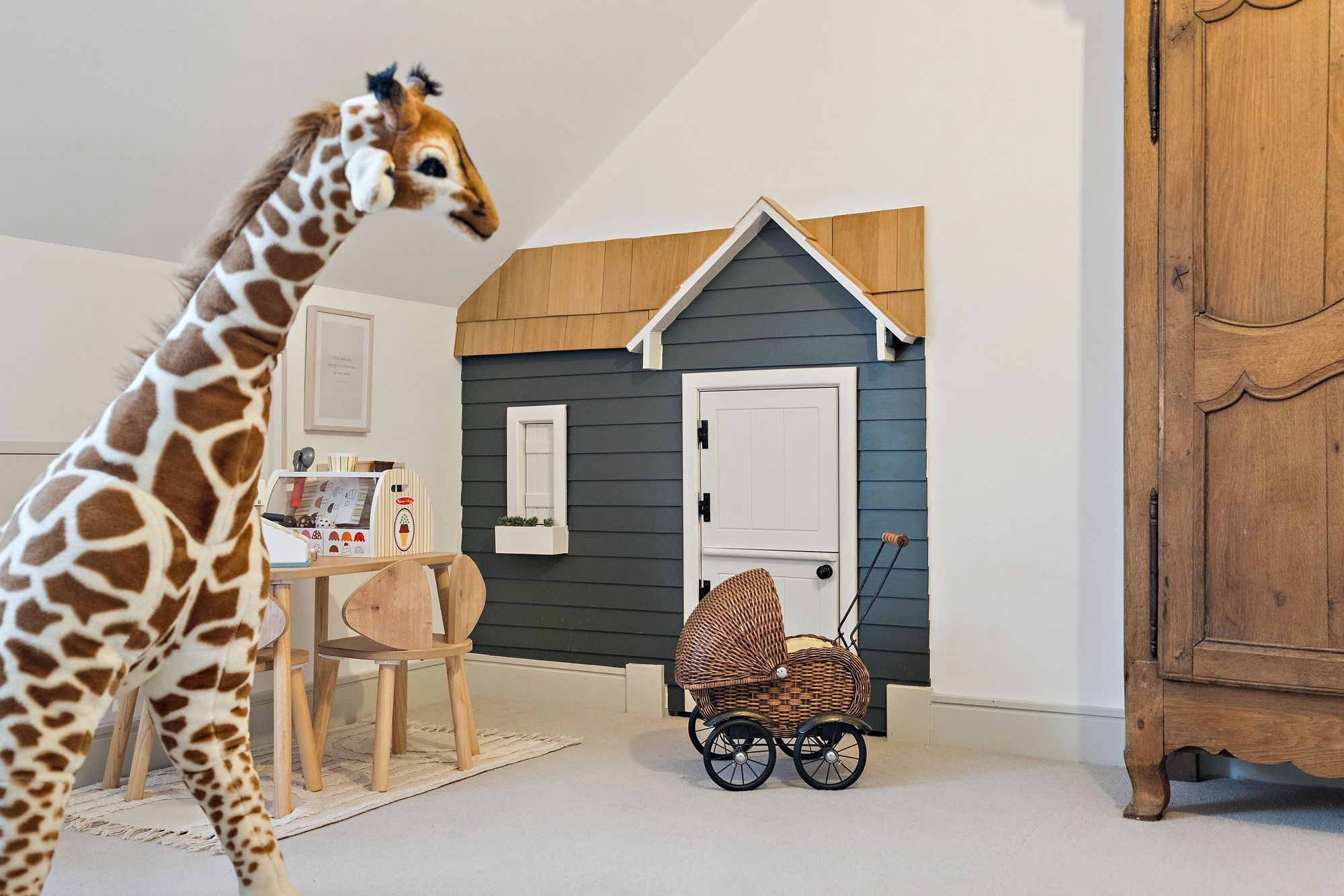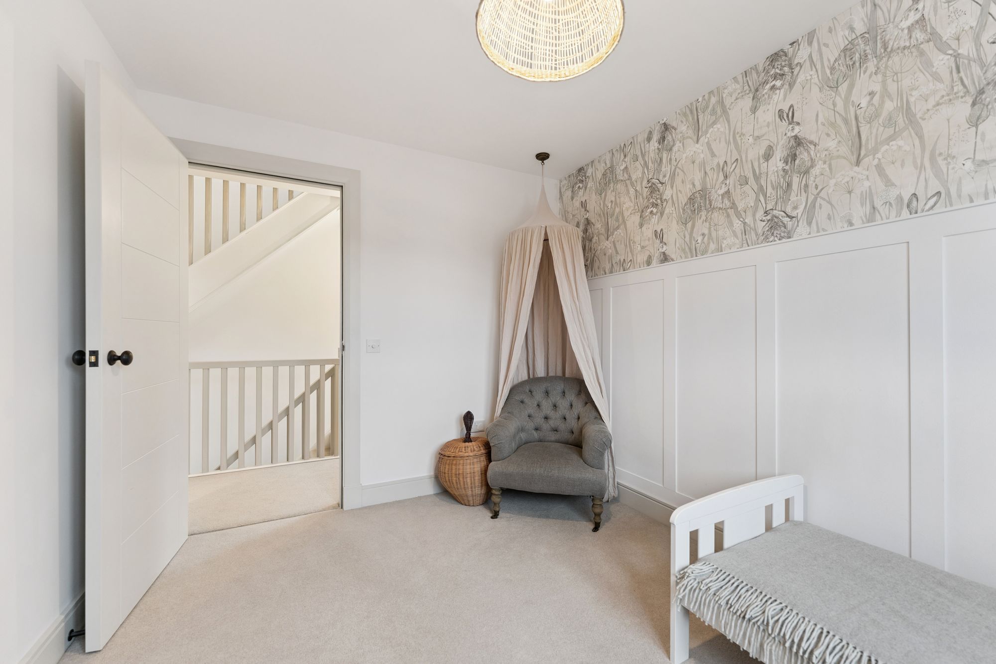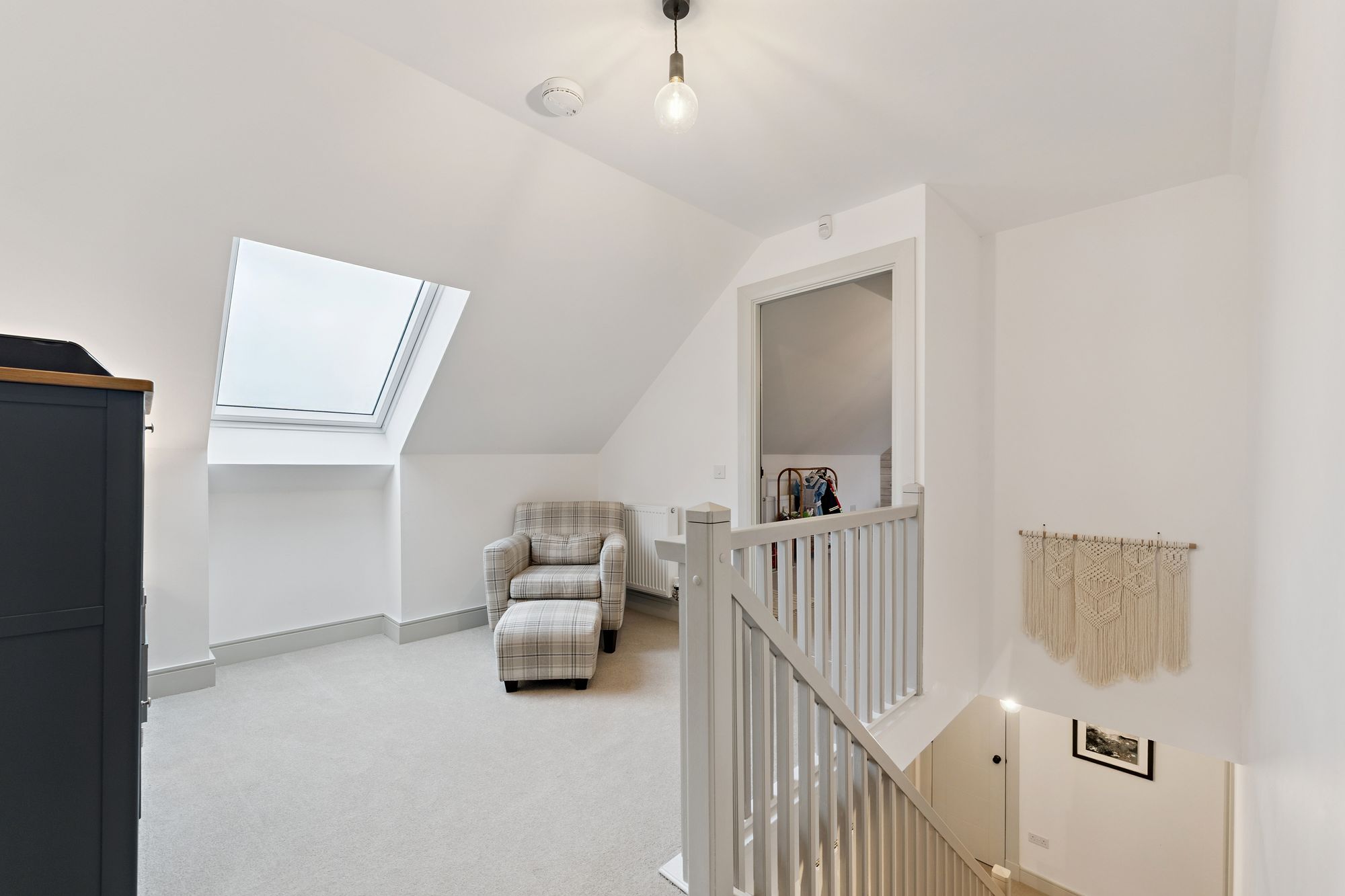 The second floor completes the accommodation and offers a highly versatile space. A bright upper landing with Velux window provides an ideal home working area and access to a substantial eaves storage room, currently utilised as a gym. There is also a large multi-purpose room with dormer window, suitable for use as an additional bedroom, cinema room, games room, or gym.