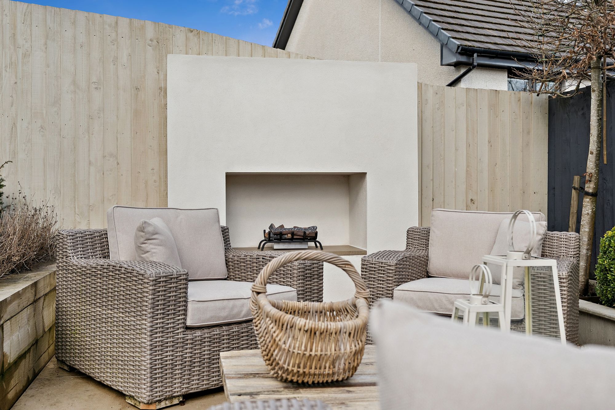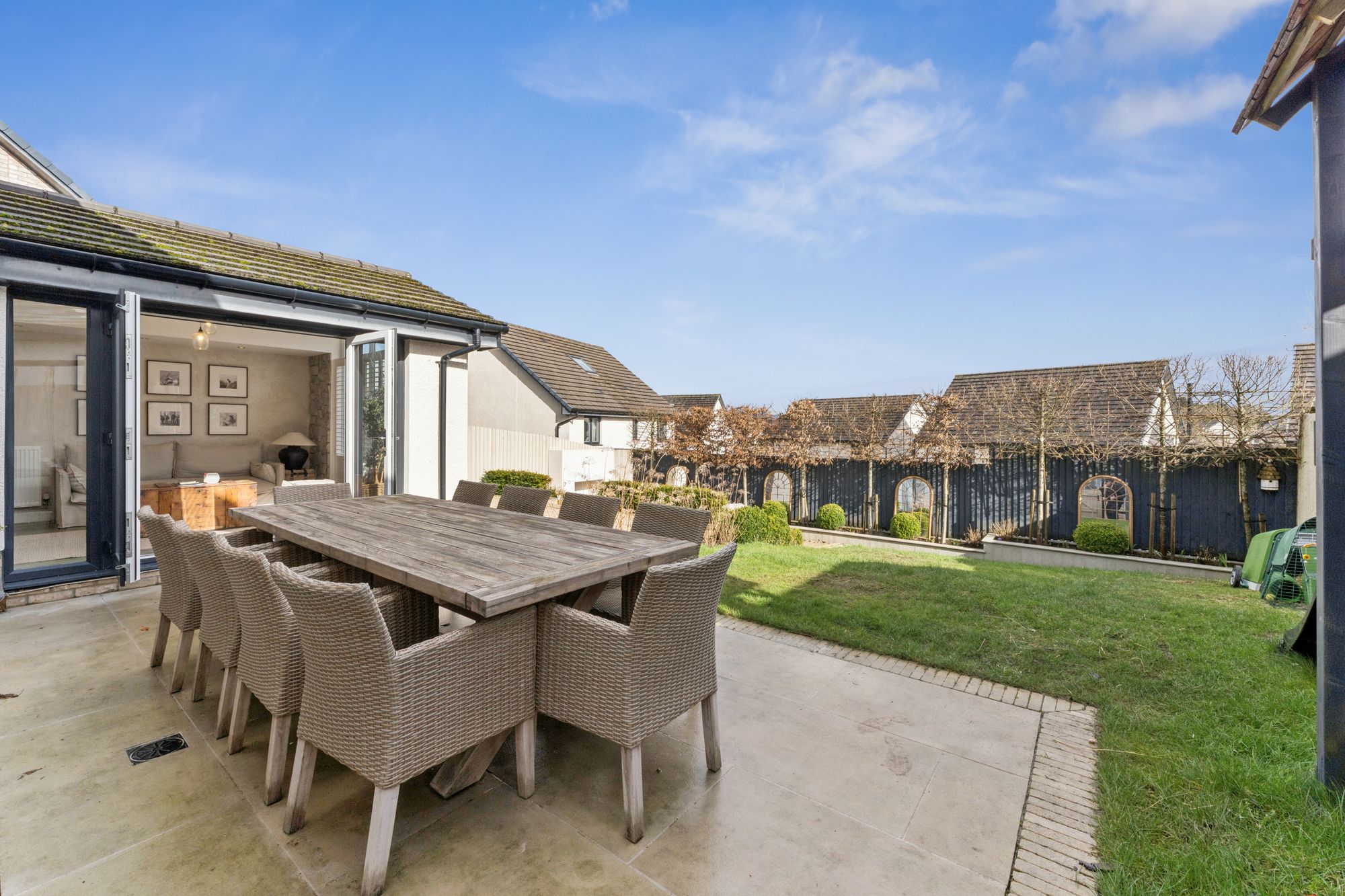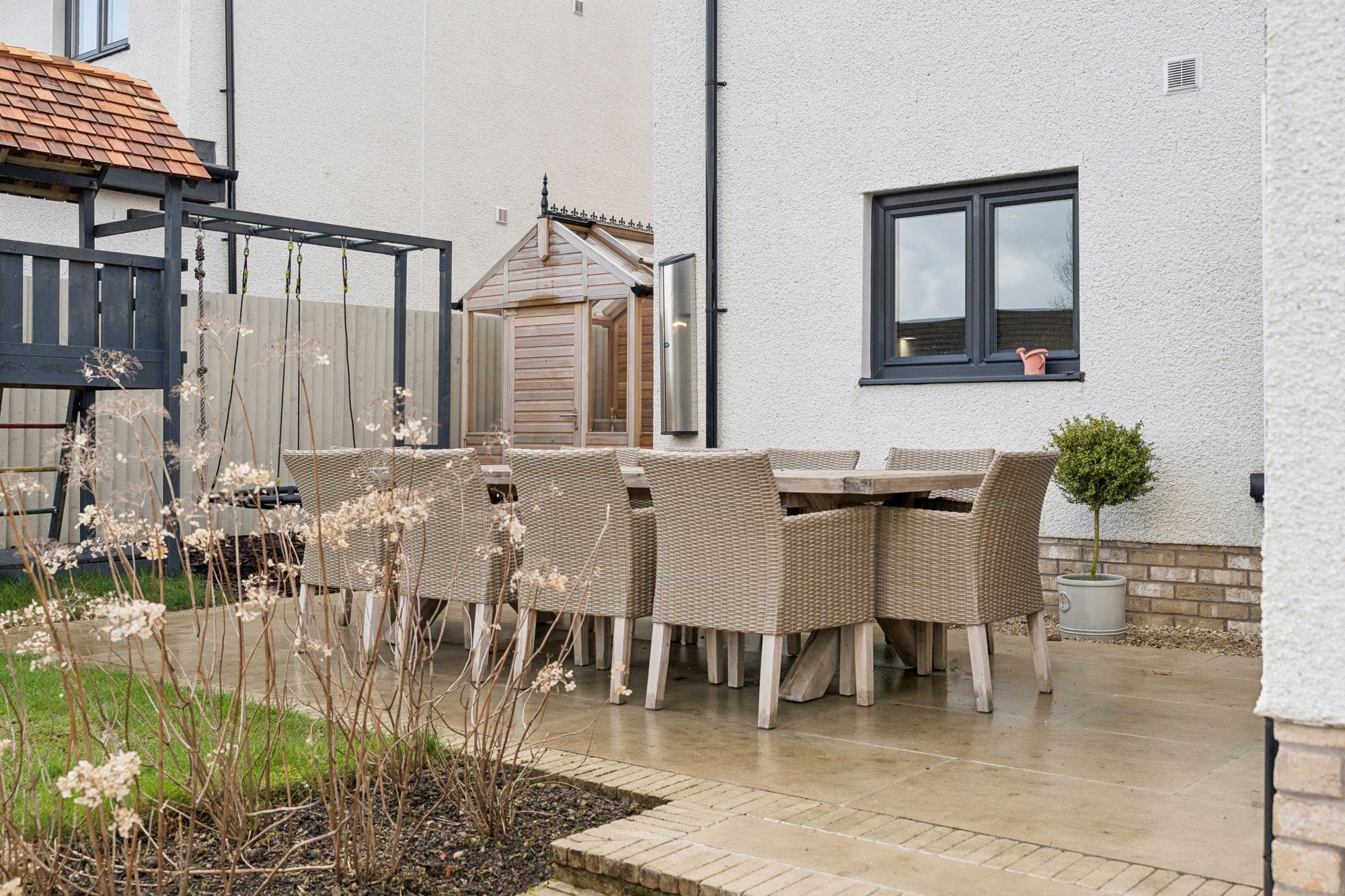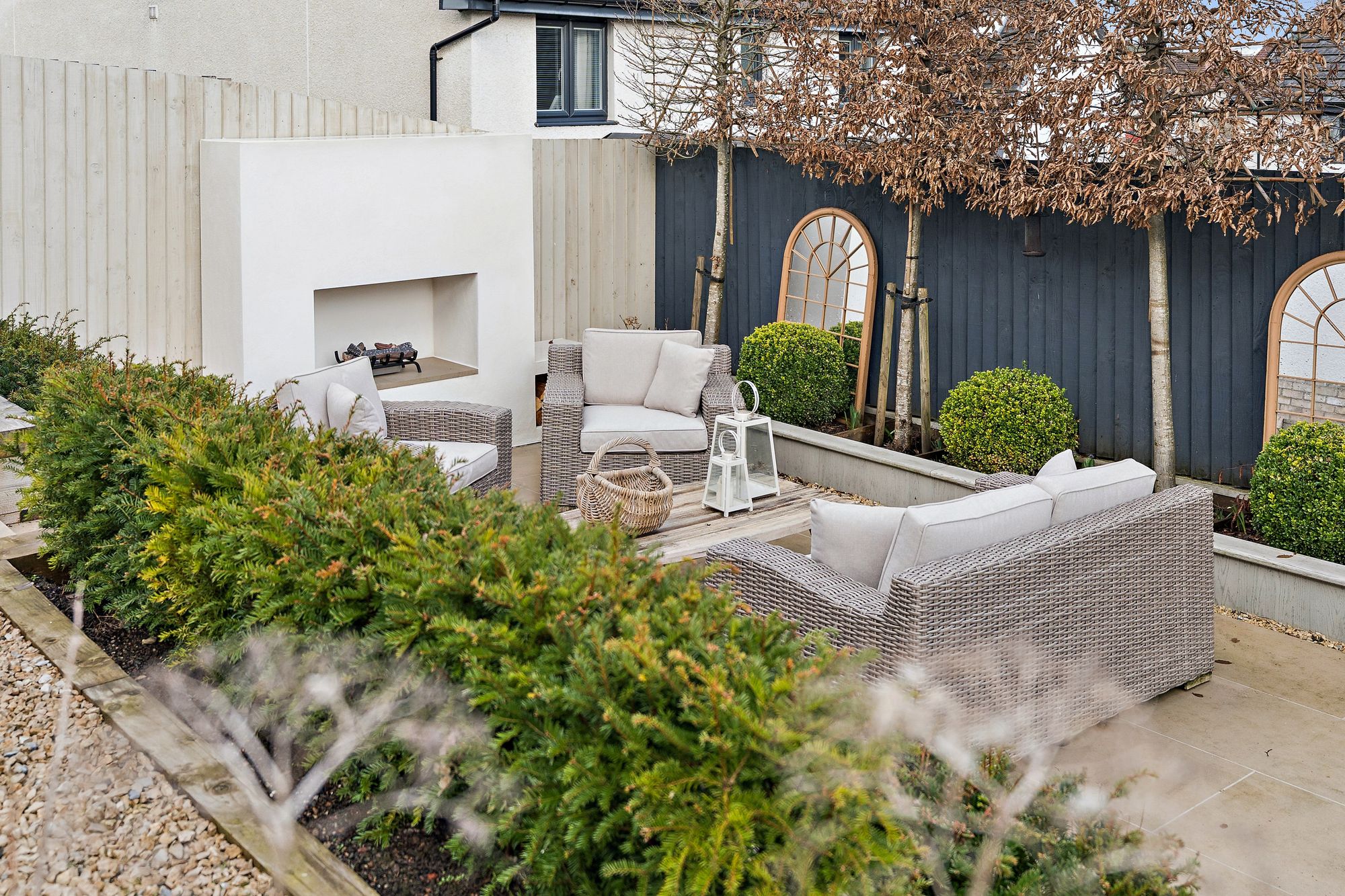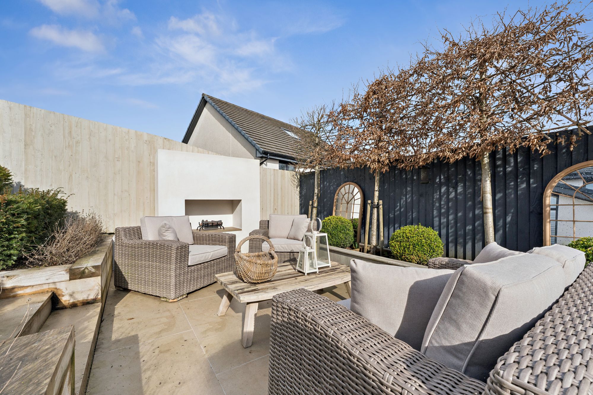 Further benefits include LED downlighting throughout, Amtico flooring, wool twist carpets, a well-appointed garage, gas central heating, double glazing, monoblock driveway parking, and a security alarm system. Externally the gardens have been beautifully landscaped and are private and enclosed with hornbean trees for added privacy.The rear garden features a bespoke garden fireplace and shed/greenhouse with cedar shingle roof and a childrens play frame with matching cedar shingle roof.