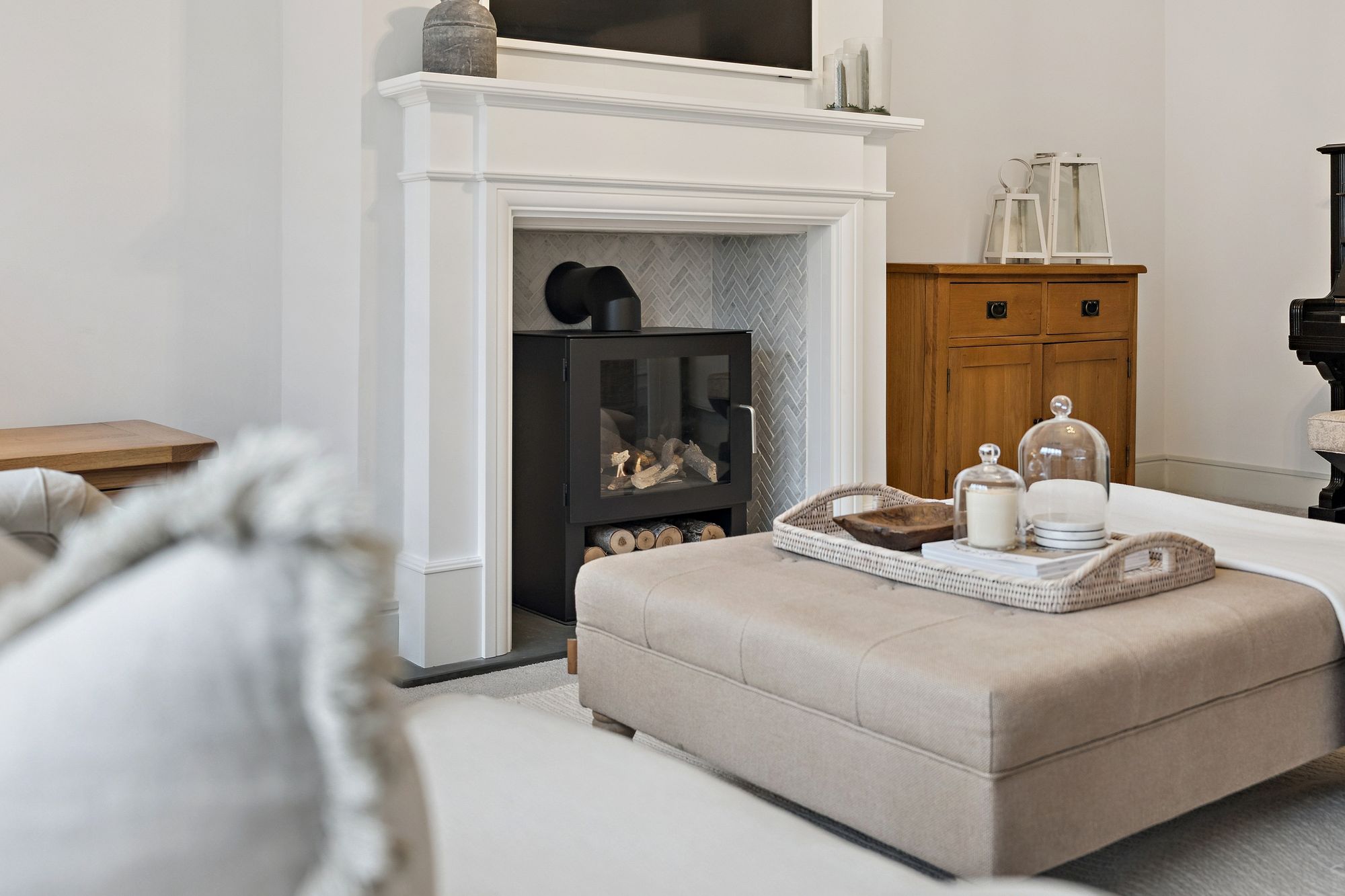 The accommodation extends to a welcoming reception hallway providing access to all ground floor apartments. To the front, there is a formal lounge featuring a beautiful fireplace with bioethanol log burner and wooden shutters.