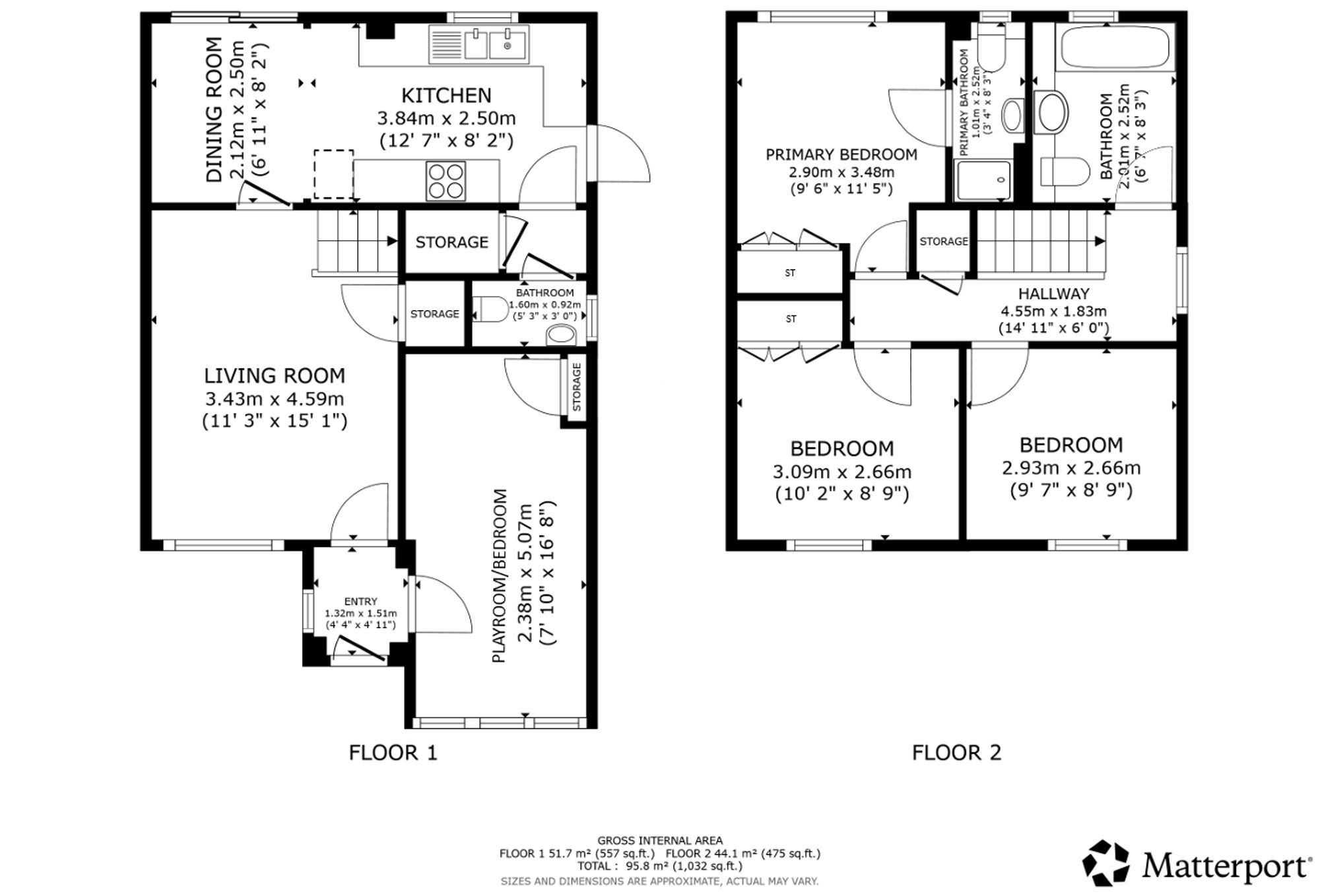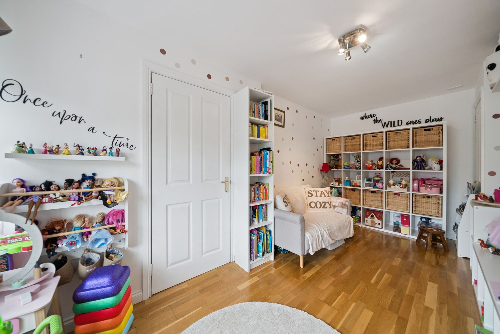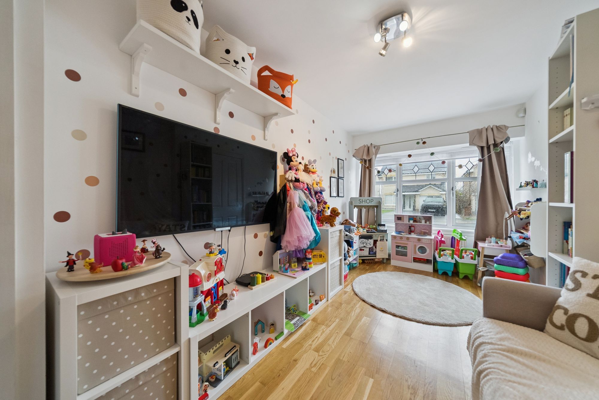 Our 3D Virtual Tours, HD Videos and Floorplans will provide a better idea of form and layout , however, a summary of the accommodation includes; practical reception vestibule, notably bright family lounge with ascending staircase to upper floor, impressive dining sized kitchen featuring a comprehensive range of units as well as ample dining space with adjacent rear garden access, practical ground floor two-piece cloakroom and a superb child’s playroom which would lend alternate purpose as a double bedroom if so required. Similarly impressive, the upper floor of this home is formed around a broad landing and extends to three extremely well-appointed bedrooms (the master of which hosts a modern en-suite shower room) and a spacious family bathroom with white three-piece suite, overhead shower attachment and ample vanity storage.