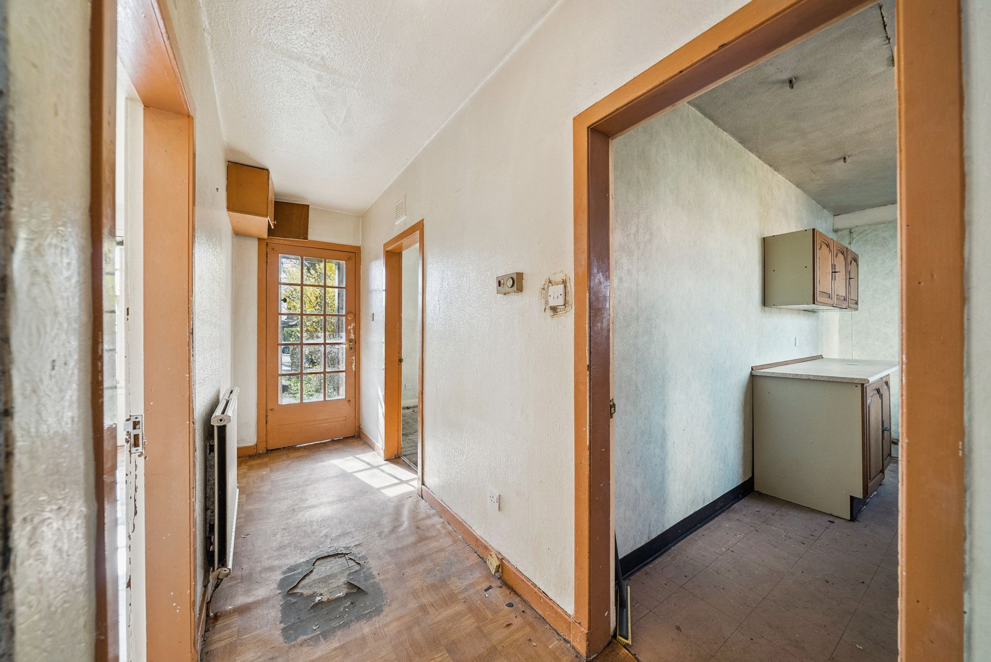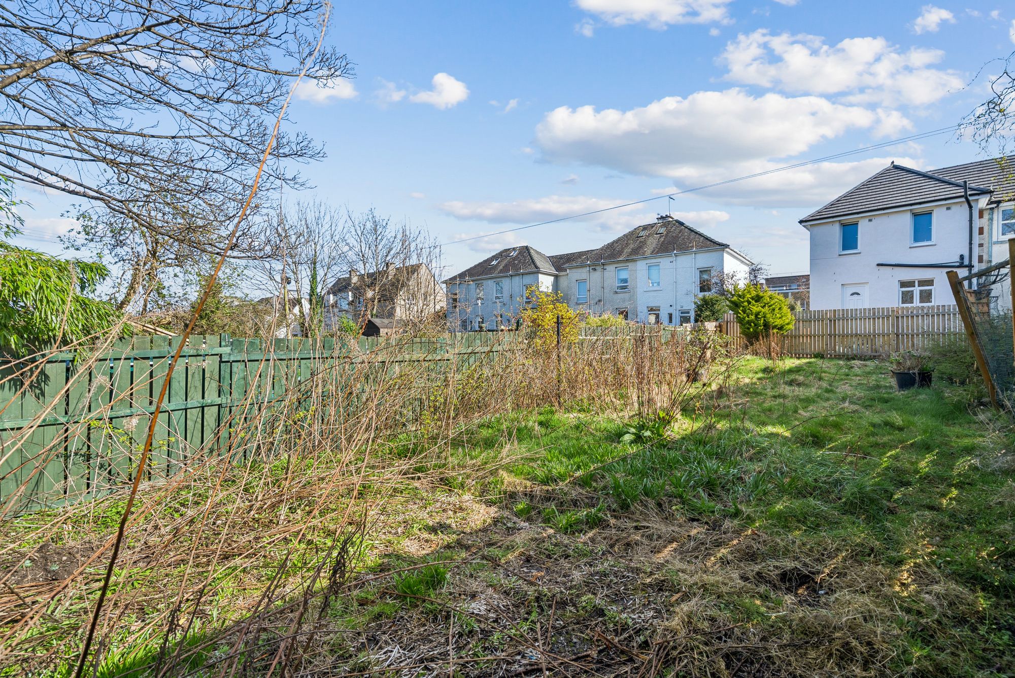Just around the corner from Scotstounhill Rail Station and minutes walk from amenities in Knightswood Shopping Centre, and Scotstoun leisure centre this spacious three/four bedroom mid terraced villa is well-positioned for growing families in search of convenient living. The address is also handy for gaining quick and easy access to major road networks and is less than five minutes drive from the Clydeside Expressway and Clyde Tunnel. The property may be of particular interest to professionals that work in the Queen Elizabeth University Hospital, who wish to be within ten minutes drive of the hospital, whilst enjoying a position, near the West End and on the North side of the Clyde. The home for sale is set within a deceptively spacious plot and benefits from generous garden grounds to both the front and rear. Internally, the property requires a complete overhaul and offers an exciting opportunity for someone to develop and re-instate it into a wonderful family home. The attached photographs, floor plan and HD video tour will give an indication to the size and layout of the house. However, in brief the accommodation extends to; welcoming hallway, bay windowed living room, a spacious dining room with could alternatively be utilised as a bedroom. The ground floor accommodation is completed by a kitchen with door leading to the back garden. On the upper level there are three bedrooms, all of which are doubles and a main bathroom. The back garden is a fantastic size and provides a fantastic, fully enclosed space to relax or for children to play.