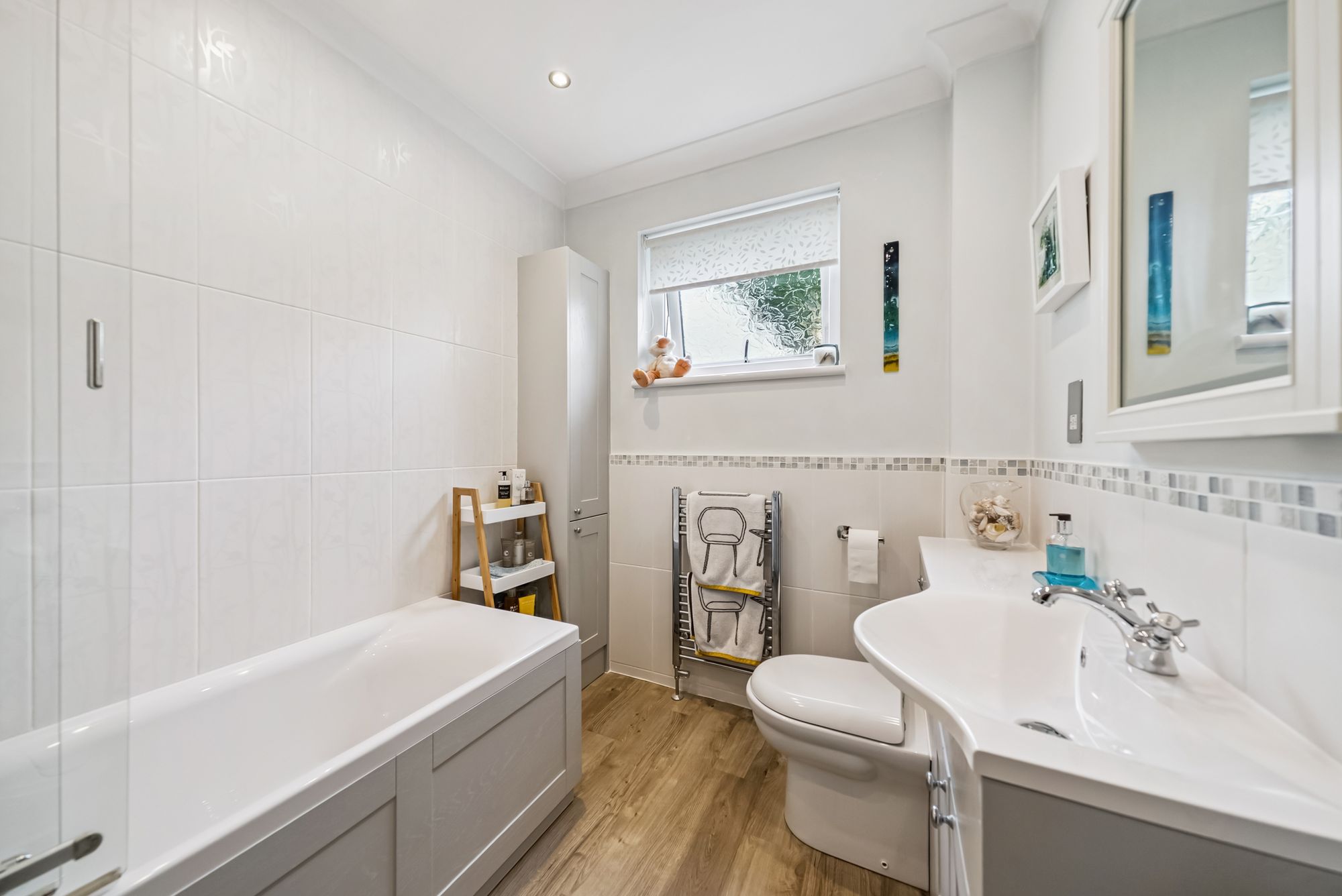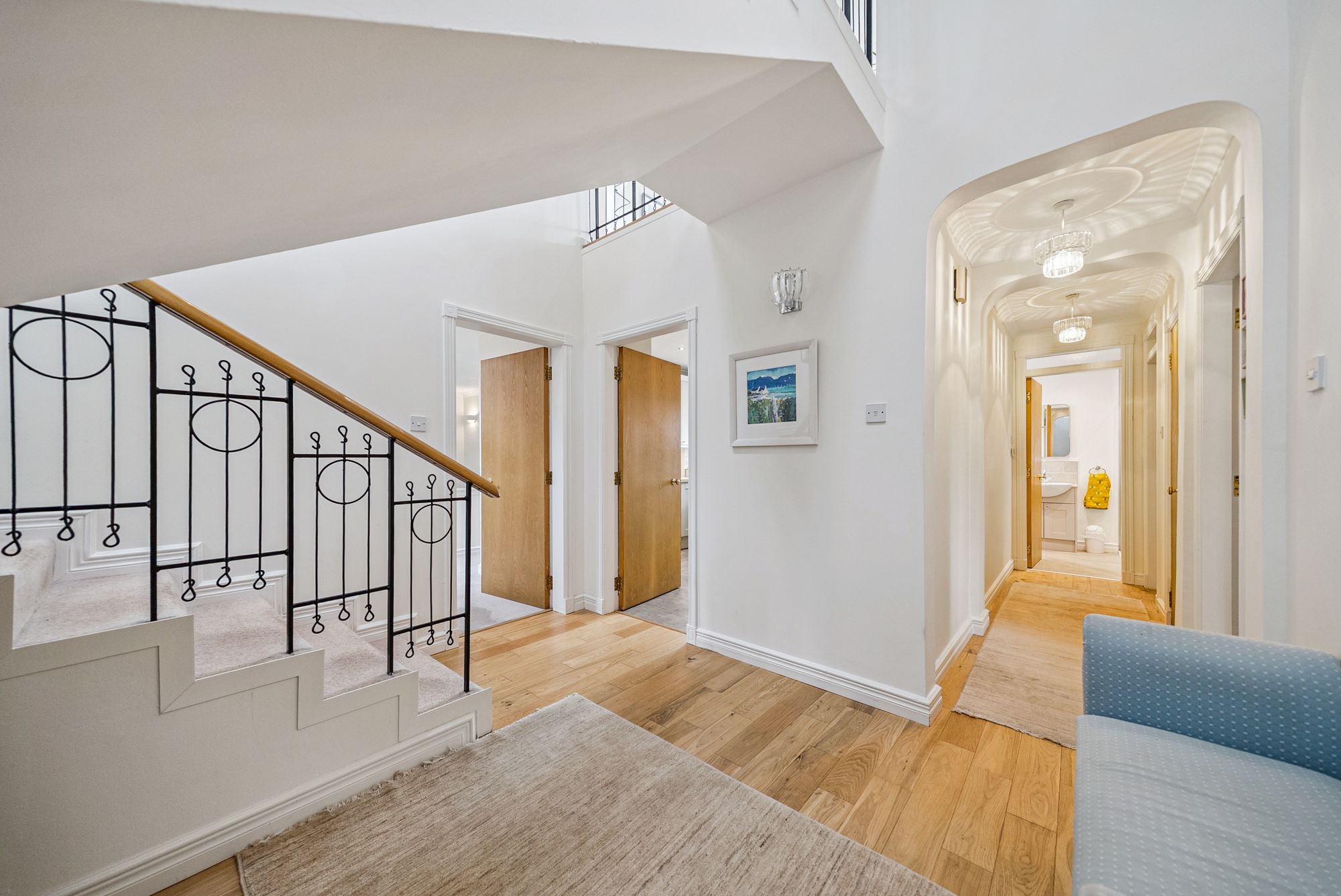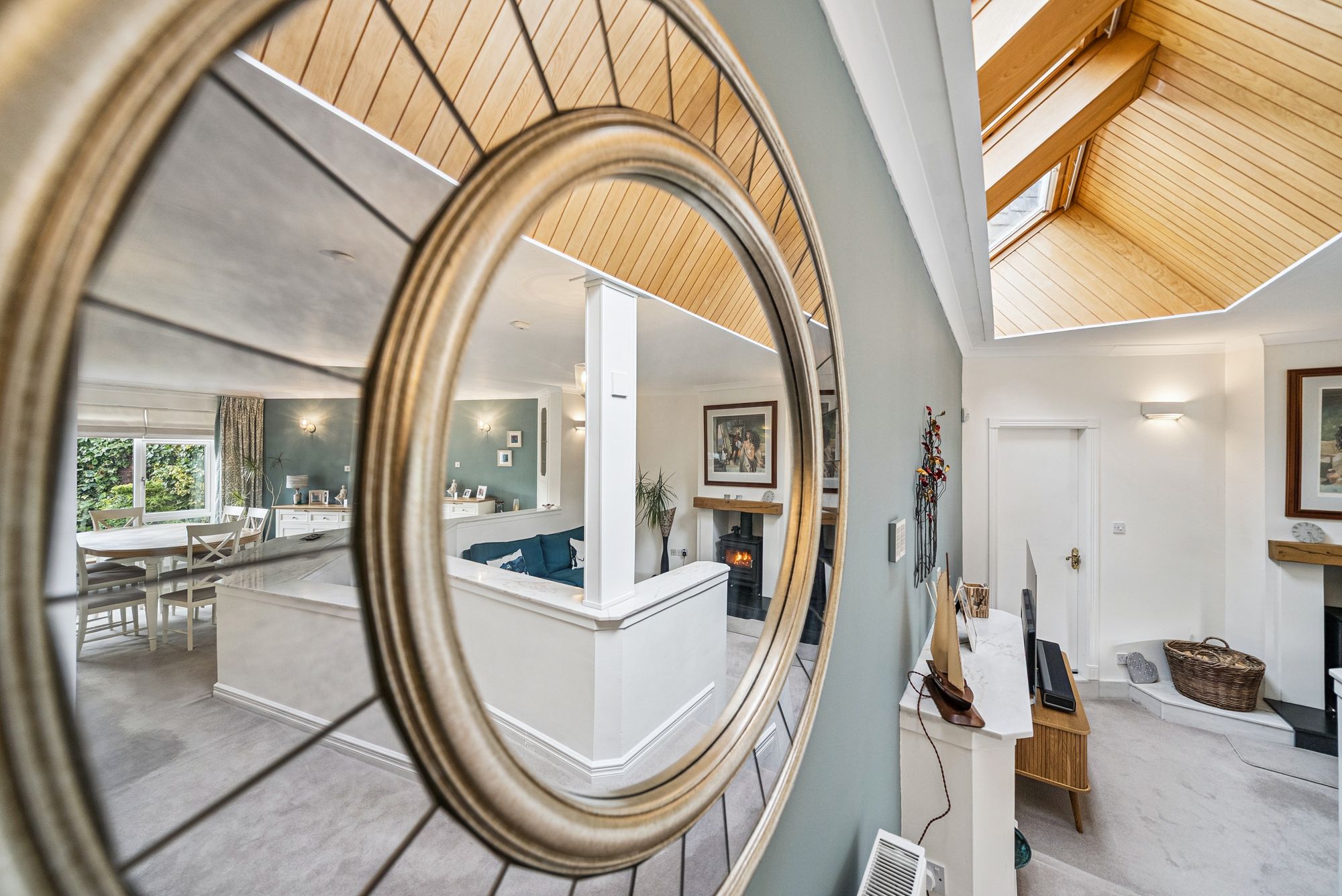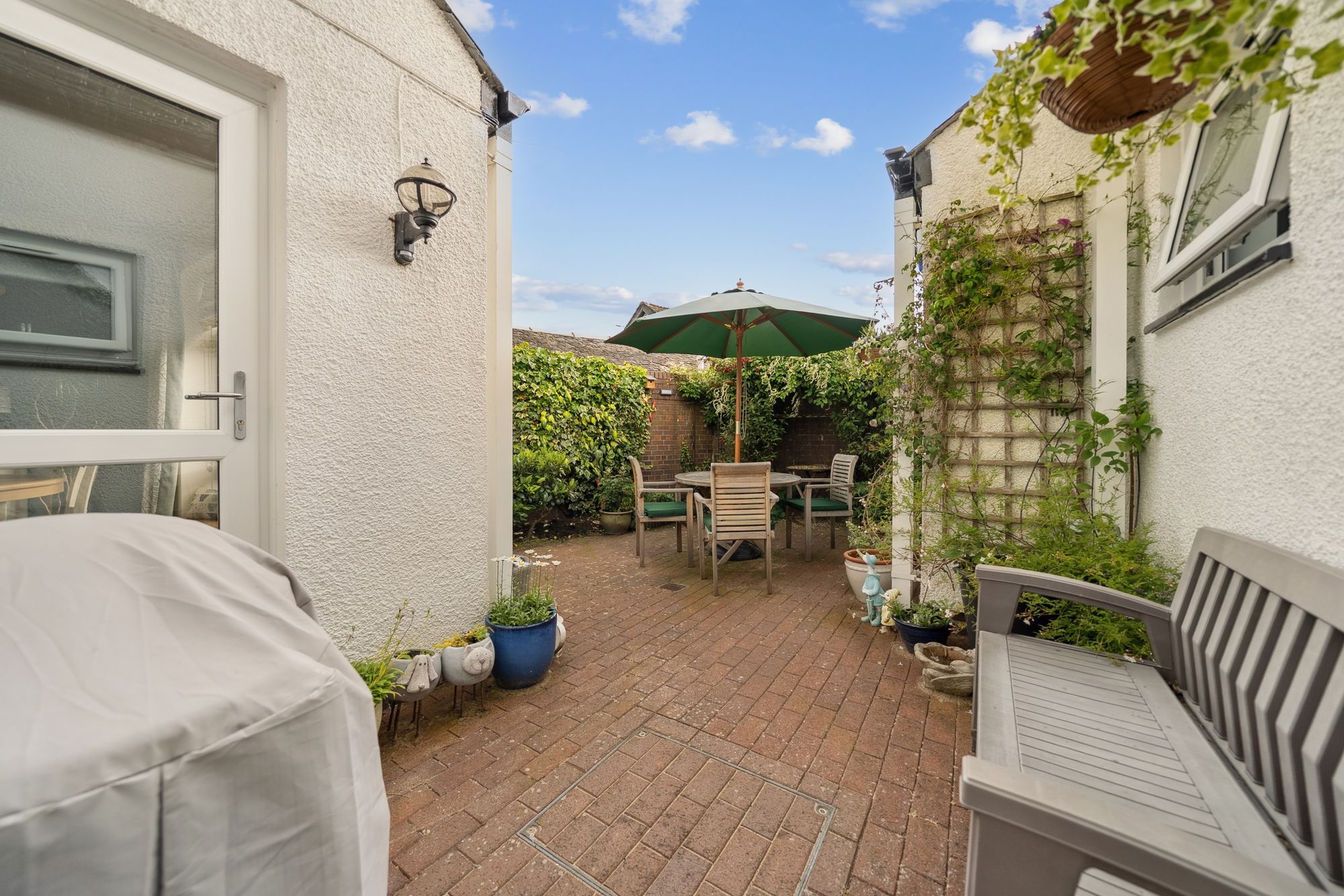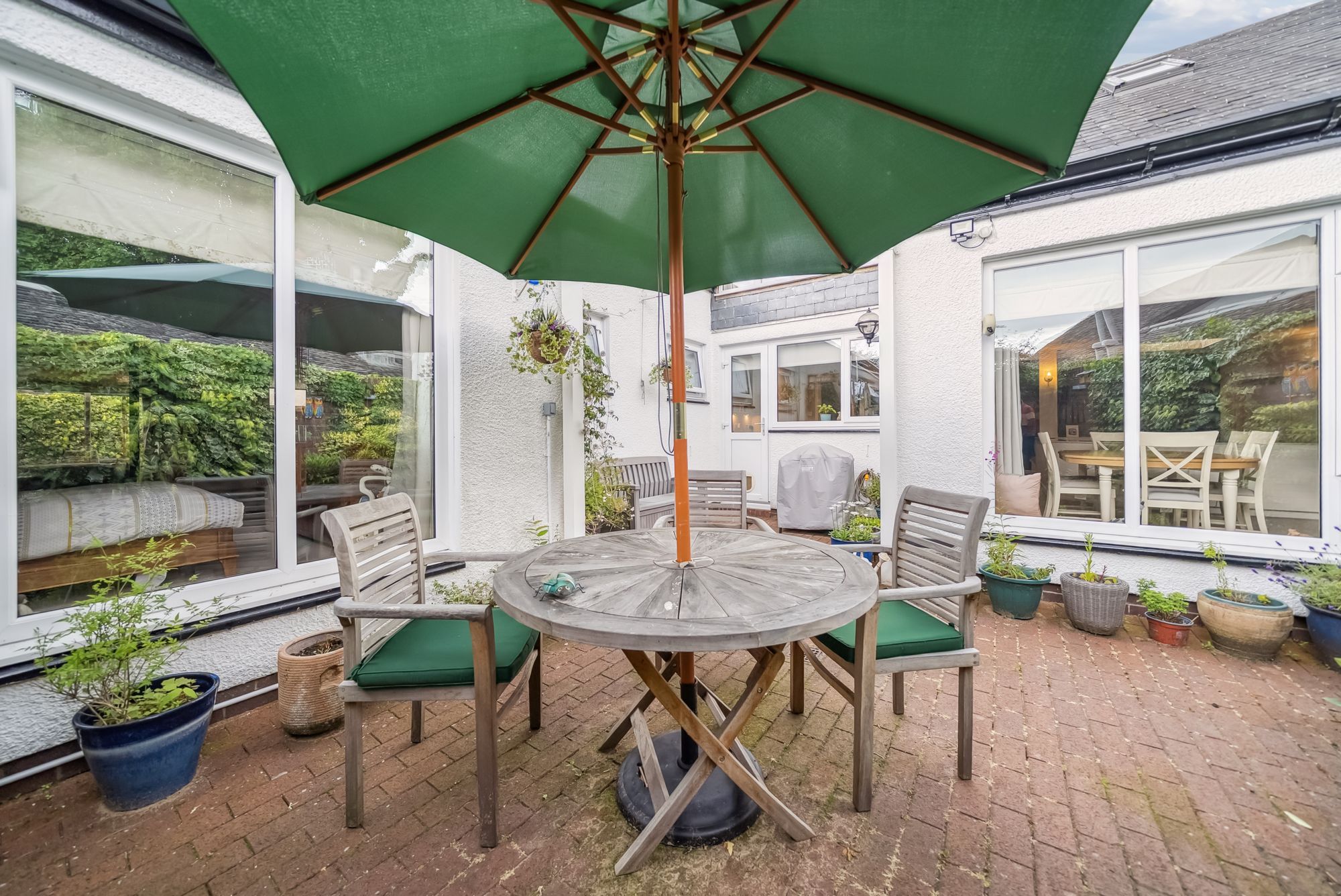 The house enjoys compact, mature gardens that feature monoblock paved driveway parking to the front leading to a substantial double car garage. To the side of this there is a lawned area and on the other side a further lawned area is enclosed by mature hedging. The back garden is a small courtyard garden and is completely enclosed, sheltered and sunny.
