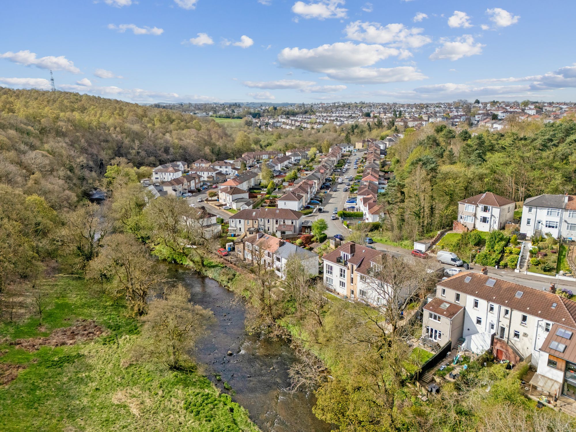 Tranquillity and privacy define the setting of this impressive family home, which enjoys uninterrupted views over the White Cart River and the mature woodland beyond — arguably one of the most picturesque outlooks in the area. Positioned within the catchment for some of Scotland’s highest‑performing schools and just a short walk from Clarkston Train Station, offering direct access to Glasgow city centre in around 20 minutes, the location balances peaceful surroundings with everyday convenience and will suit families and professionals alike.