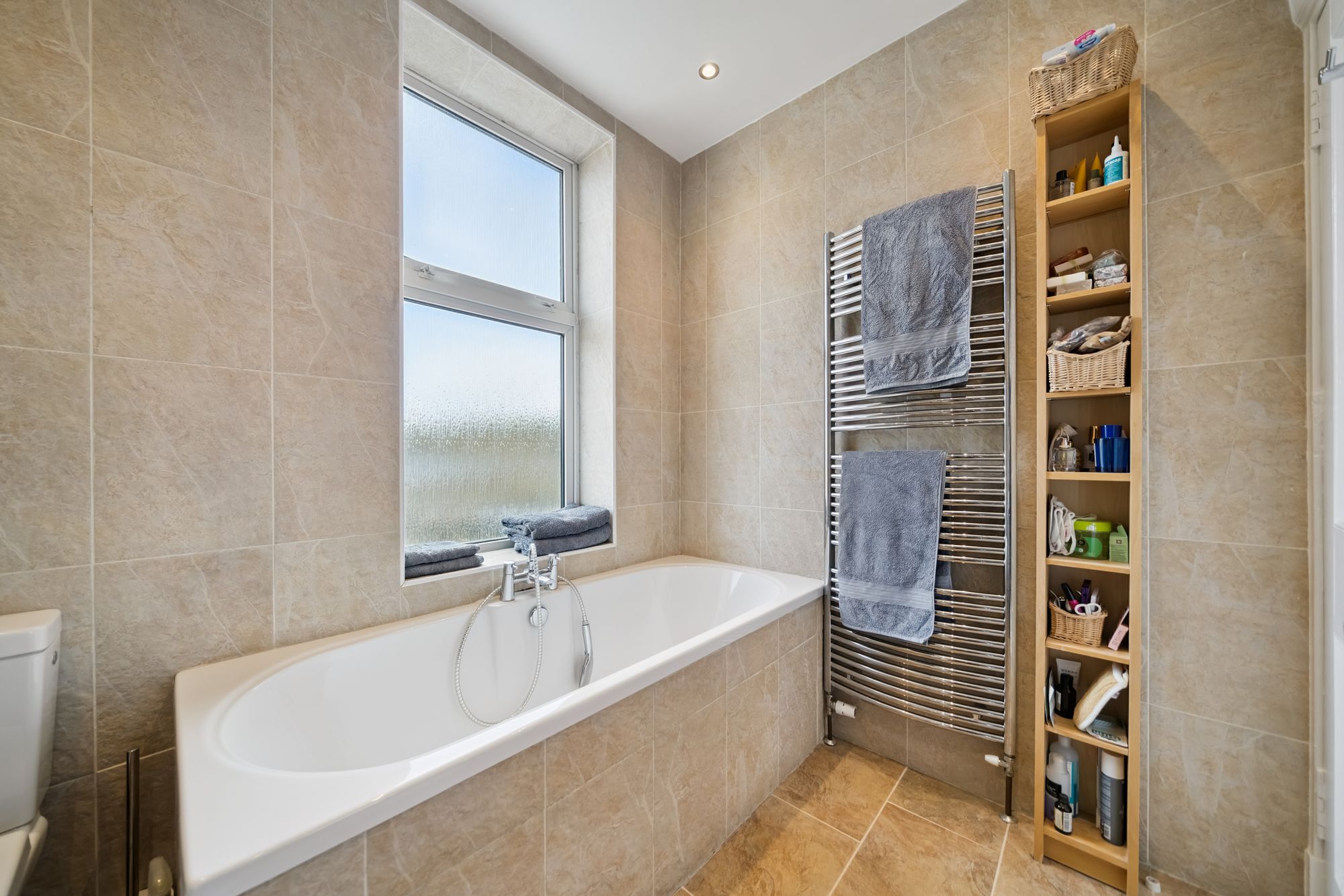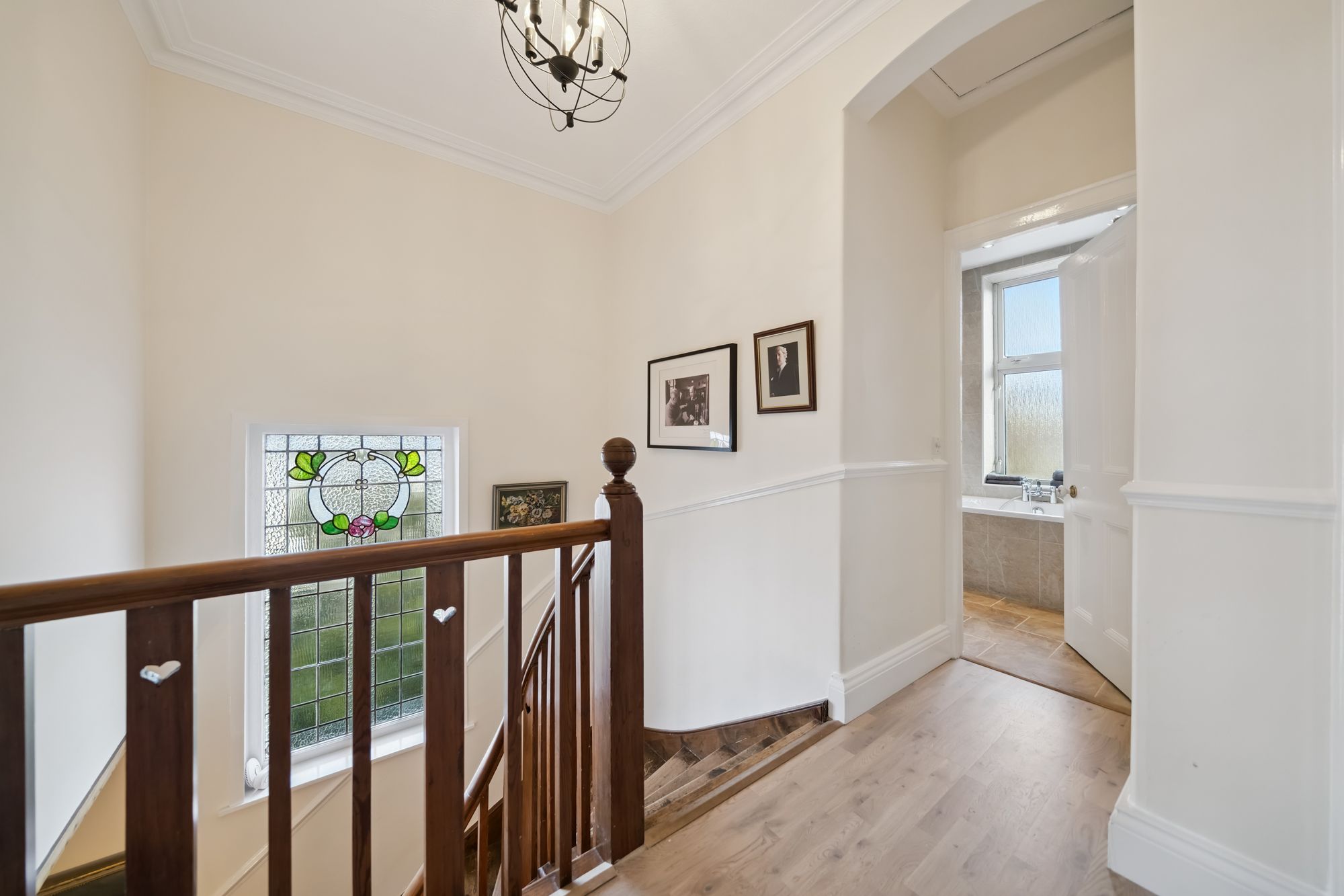 The upper level of the property has a central landing with feature stained glass window and access to three sizeable bedrooms. Completing the accommodation is the family bathroom comprising of a four piece suite with a large shower cubicle, fitted bath, WC and wash hand basin and is finished with modern floor and wall tiling.