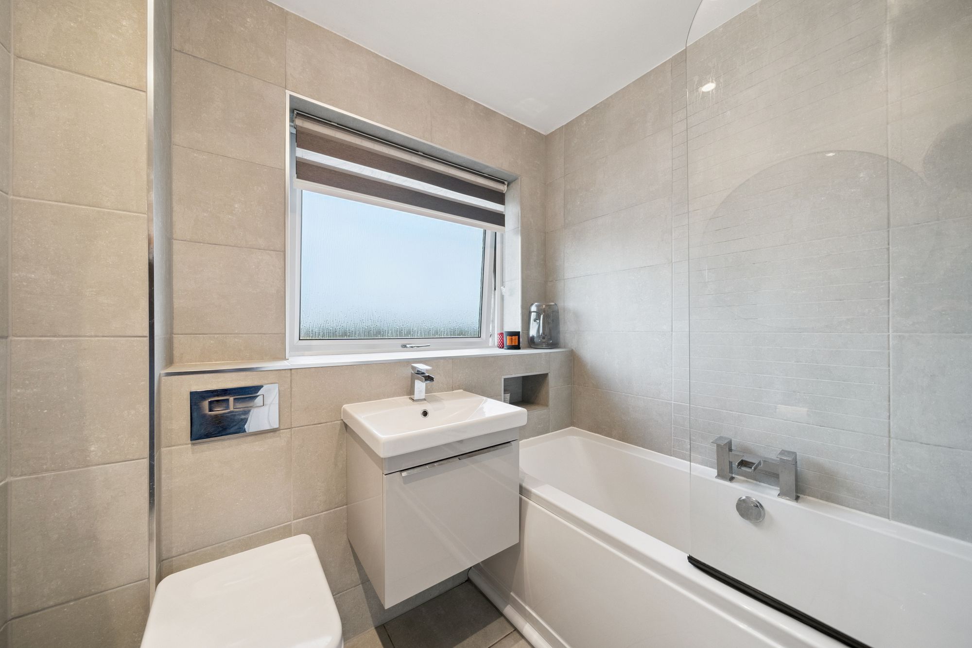 The rear garden backs on to Shawwood Crescent where the private garage and stone chip driveway are found. There are gardens to the front and rear, the rear is landscaped with artificial grass for ease of maintenance whilst the front garden has a patio with steps leading to a path used by the residents.
