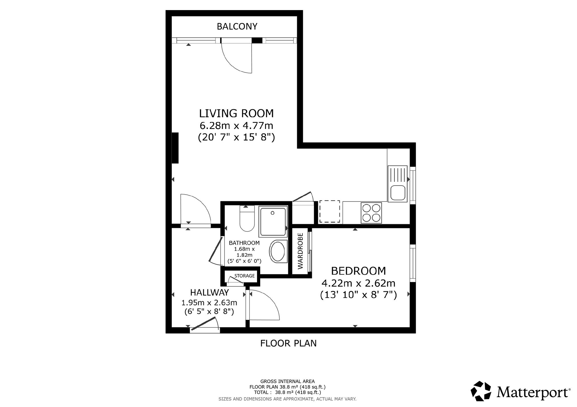 The internal accommodation is bright and attractive, offering a comfortable living space with the benefit of a private balcony. In brief, the accommodation extends to; entrance hall with storage off, bedroom with built in storage and a bathroom with walk in shower. To complete the accommodation there is a modern kitchen with adjoining lounge and the aforementioned private balcony.