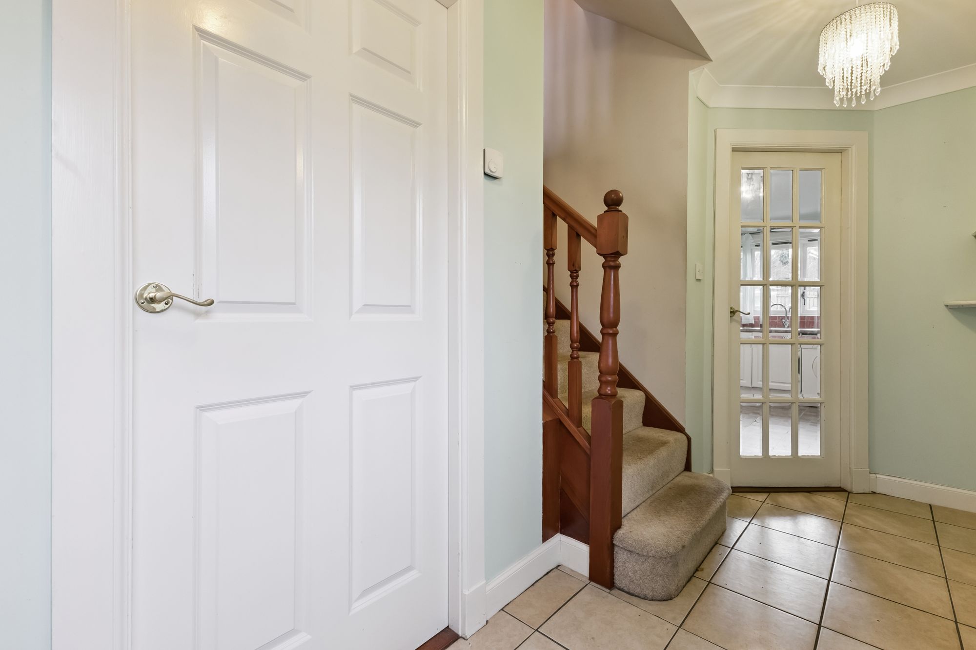 On the ground floor, a welcoming entrance hall —accessed via an attractive stained glass front door—provides access to a comfortable and generously sized lounge, offering an ideal space for everyday relaxation. A separate dining room is perfect for family meals and entertaining, while the well-appointed kitchen offers ample storage and workspace. A convenient cloakroom/WC completes the ground floor accommodation.