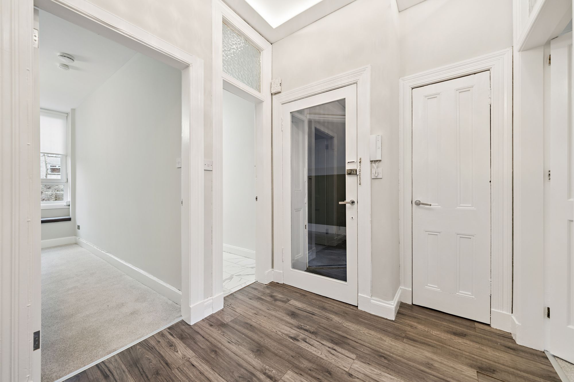 A recently upgraded two bedroom, second floor apartment within a traditional red sandstone tenement building, in the heart of Shawlands. The flat offers bright, well-appointed accommodation throughout and has superb levels of privacy as it is not overlooked by other tenement buildings, which is not common for those familiar with Glasgow architecture. Conveniently located with easy access to many of Shawlands cafes, bars, boutiques and of course, the renowned Queens Park, makes this fantastic apartment sure to appeal to young families, working professionals or even investors. Many public transport services are nearby with Pollokshaws East Rail Station 0.3 miles away and multiple bus routes along Kilmarnock Road. The attached photographs, floor plan and HD video tour give a good indication of the size and layout of the flat. The space extends to; a welcoming entrance hall with large storage cupboard off, two generously proportioned double bedrooms, galley style bathroom with shower over bath and a bay windowed lounge with adjoining modern kitchen fitted with a range of base and wall mounted units.