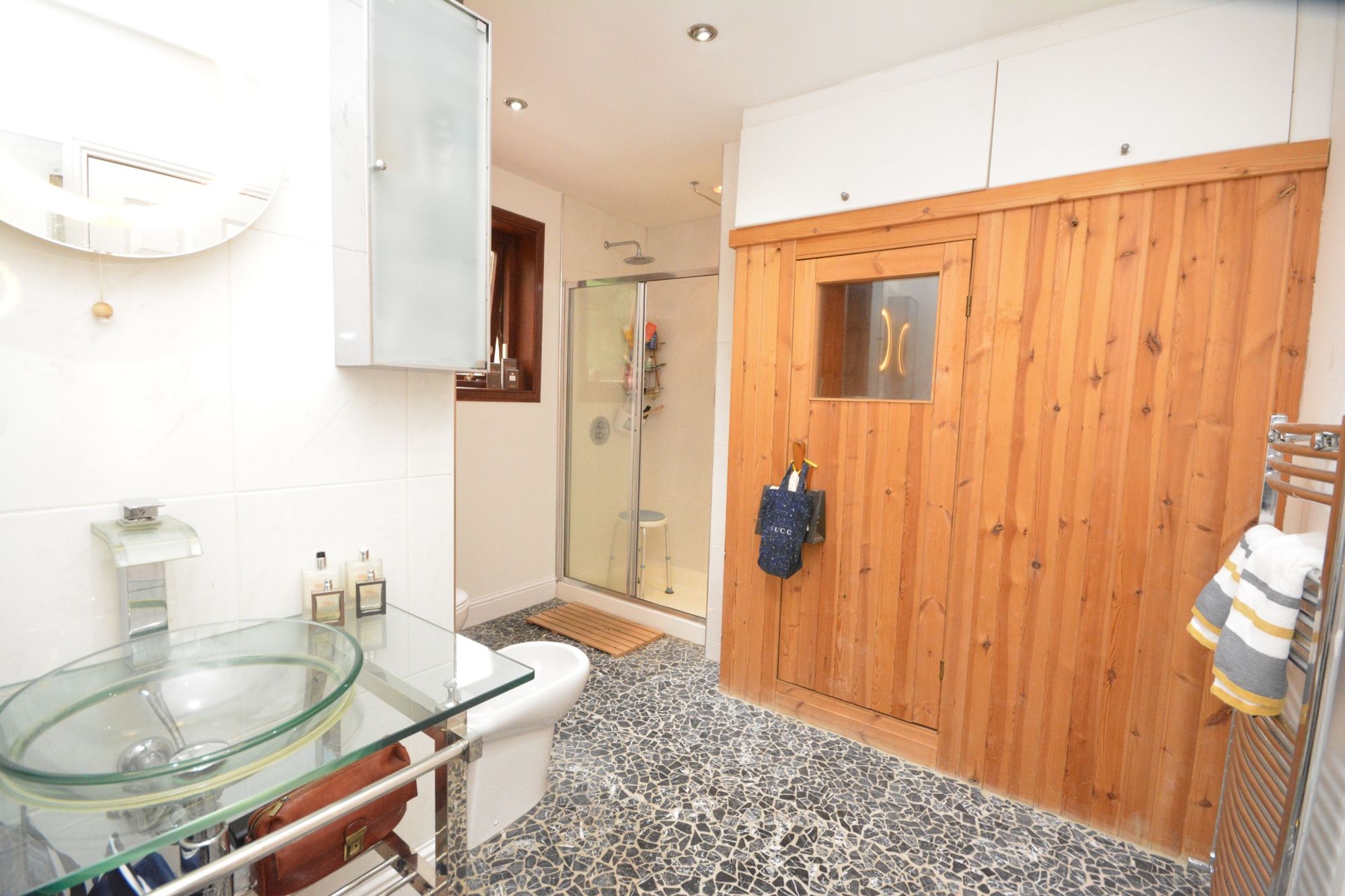 On the upper floor there are three well-proportioned bedrooms and a large ‘Jack and Jill’ shower room which enjoys en-suite access from the master bedroom. Two of the bedrooms have excellent fitted storage. The remarkable shower room incorporates a Scandanavian-style sauna, mains shower valve, chrome radiator and feature pebbled ceramic flooring with integral lighting and underfloor heating. Practical features include floored attic with sliding ladder, gas central heating and double glazing. Well maintained and re-roofed, the agents would urge early viewing in order to appreciate the overall appeal of this delightful home. Energy Efficiency Rating - C.
