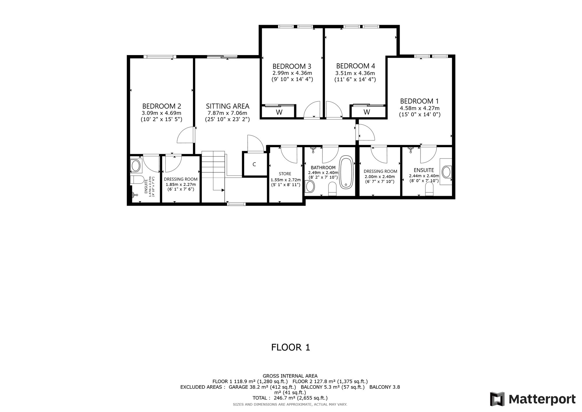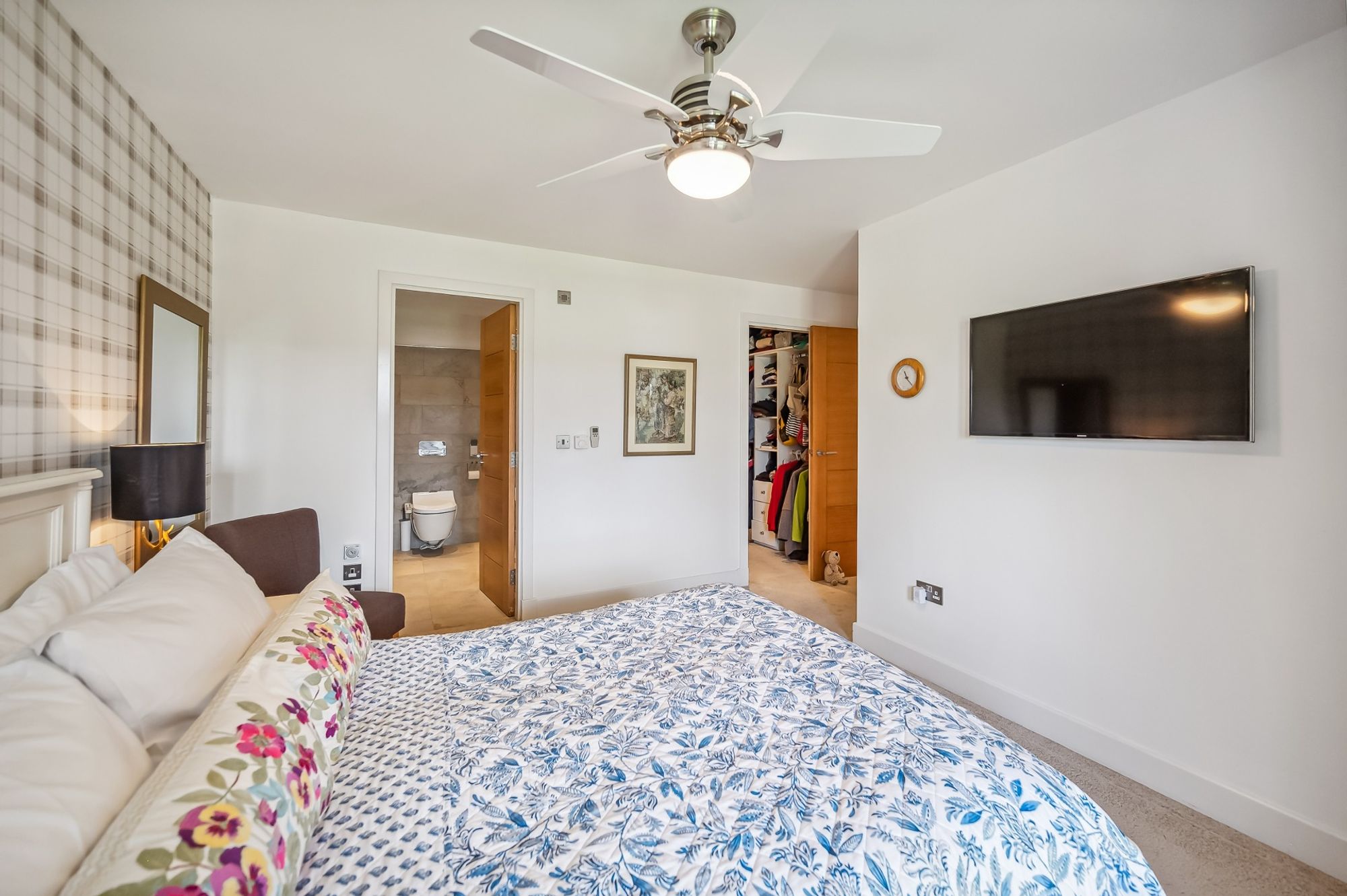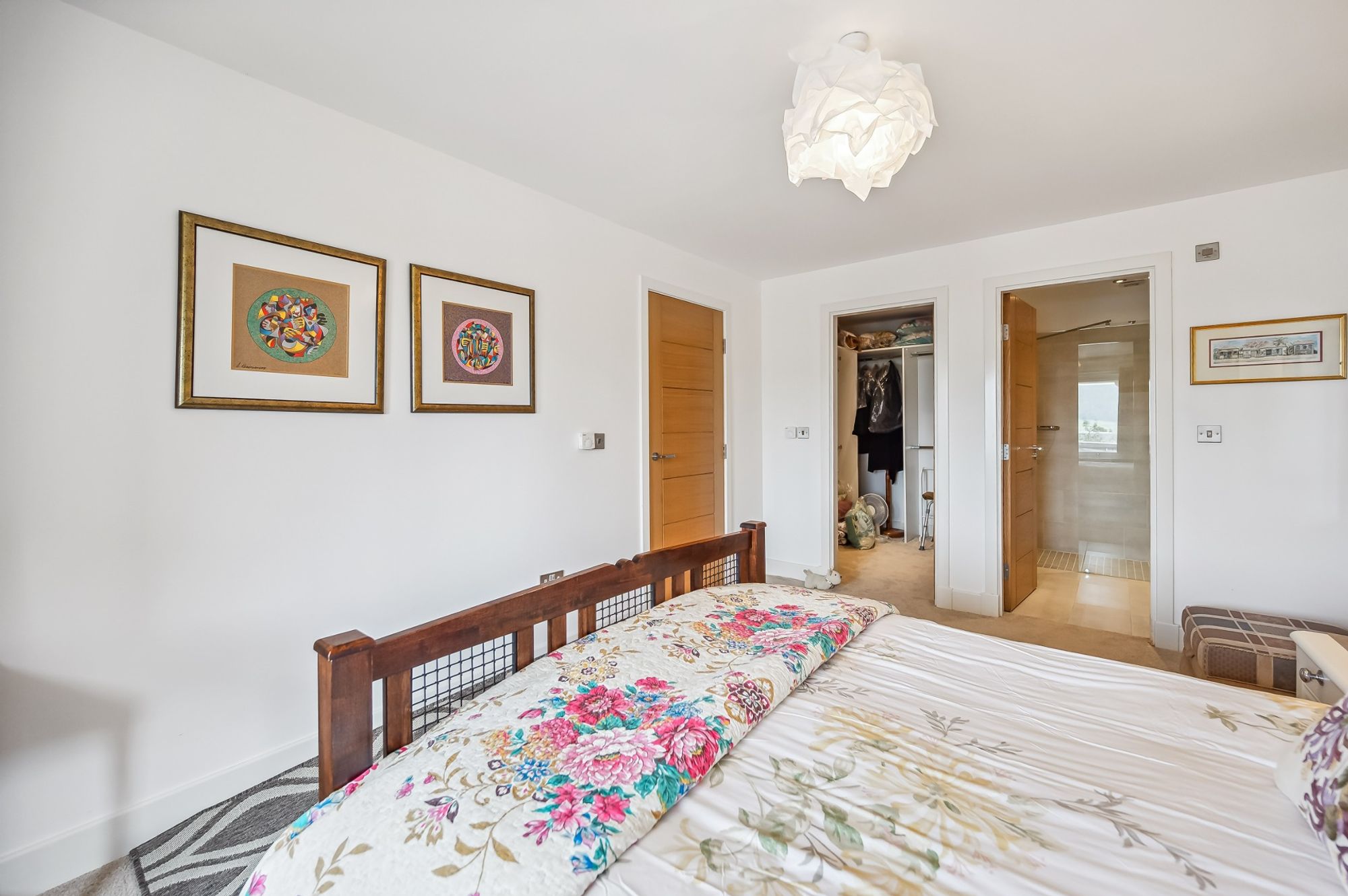 Moving from the reception hall, a striking American oak staircase (with designer light fitting above) leads down to the lower accommodation. The large hallway incorporates a sizeable open plan sitting area with French doors opening out to the gardens at the rear and off the hall there is a built-in cupboard and a deep walk-in storage area. There are two large double bedrooms at either end of the hall and both these rooms have walk-in wardrobes and their own bespoke and luxurious ensuite shower rooms. There are two further double bedrooms on this floor and all the bedrooms enjoy views over the gardens at the rear. The main family bathroom is beautifully fitted and boasts a feature Hans Grohe waterfall shower with separate hand-held shower and stand alone bath. The house is warmed by an effective modern gas fired underfloor heating system and all the windows are high performance double glazed units. The property also features from having 13 solar panels (3.83KW) with iBoost that are on a feed tariff and installed in 2017, as well as 6 further solar panels (3.5kWh) which feed a battery. This contributes to the exceptional EPC rating on the house.