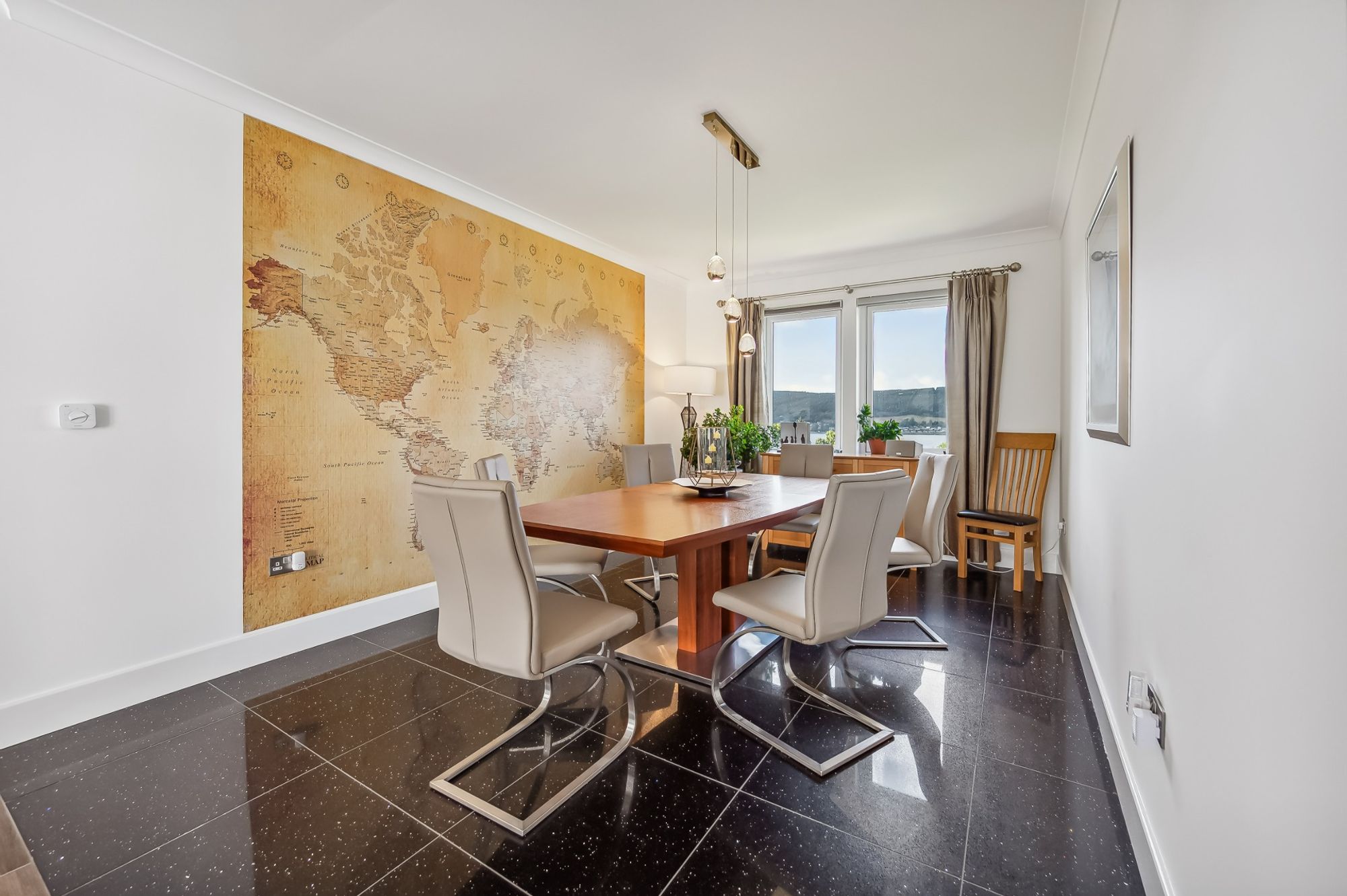 Kings Point is an exciting modern development that is home to only a handful of modern and exquisitely finished family homes. Number 5 enjoys arguably one of the best plots in the cul-de-sac, designed to take full advantage of its elevated position above the Gare Loch and with fantastic views to the west, across the waters of the loch and over to the Rosneath Peninsula.