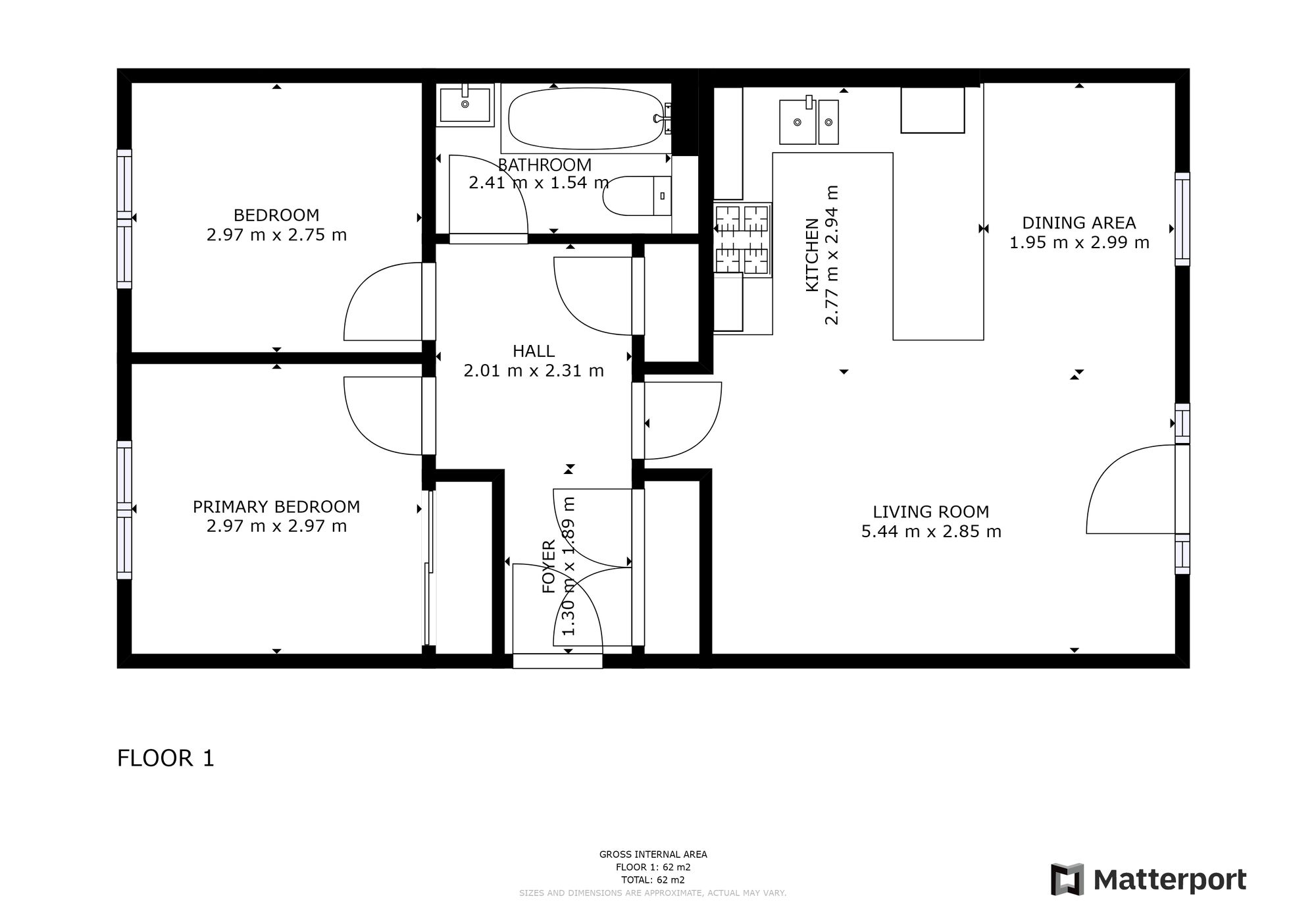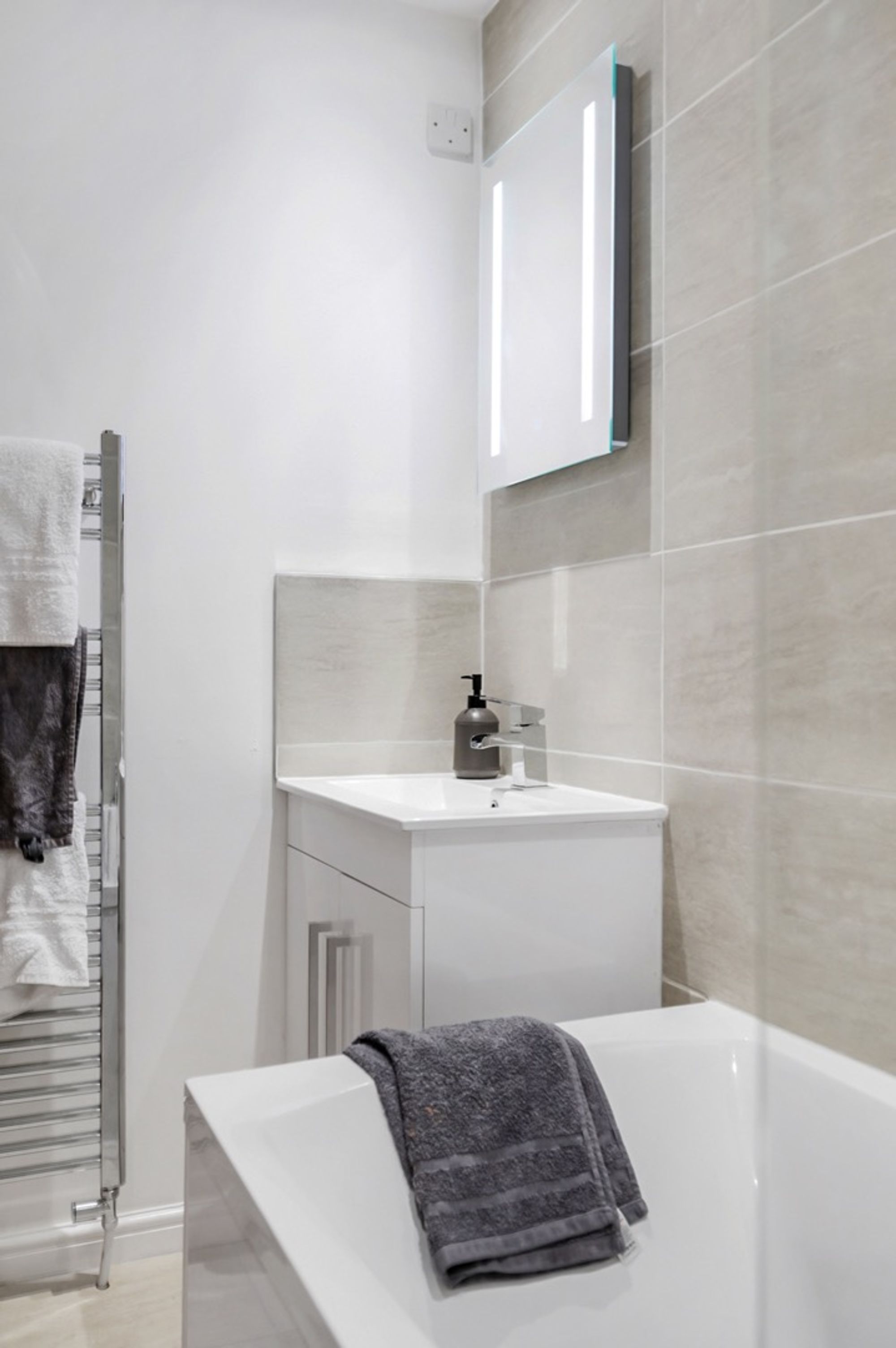 The photographs, floor plan and HD video tour will give a good indication to the size and layout of the flat. However, in brief the accommodation extends to; welcoming entrance hallway with storage off, two double bedrooms, one of which has built in wardrobes, a newly fitted bathroom which has a three-piece suite with shower over the bath, heated towel rail and LED mirror. The accommodation is completed by a vast open plan living/dining/kitchen which has a Juliette balcony. The kitchen itself has a number of base and wall mounted units with integrated appliances and a breakfast bar.