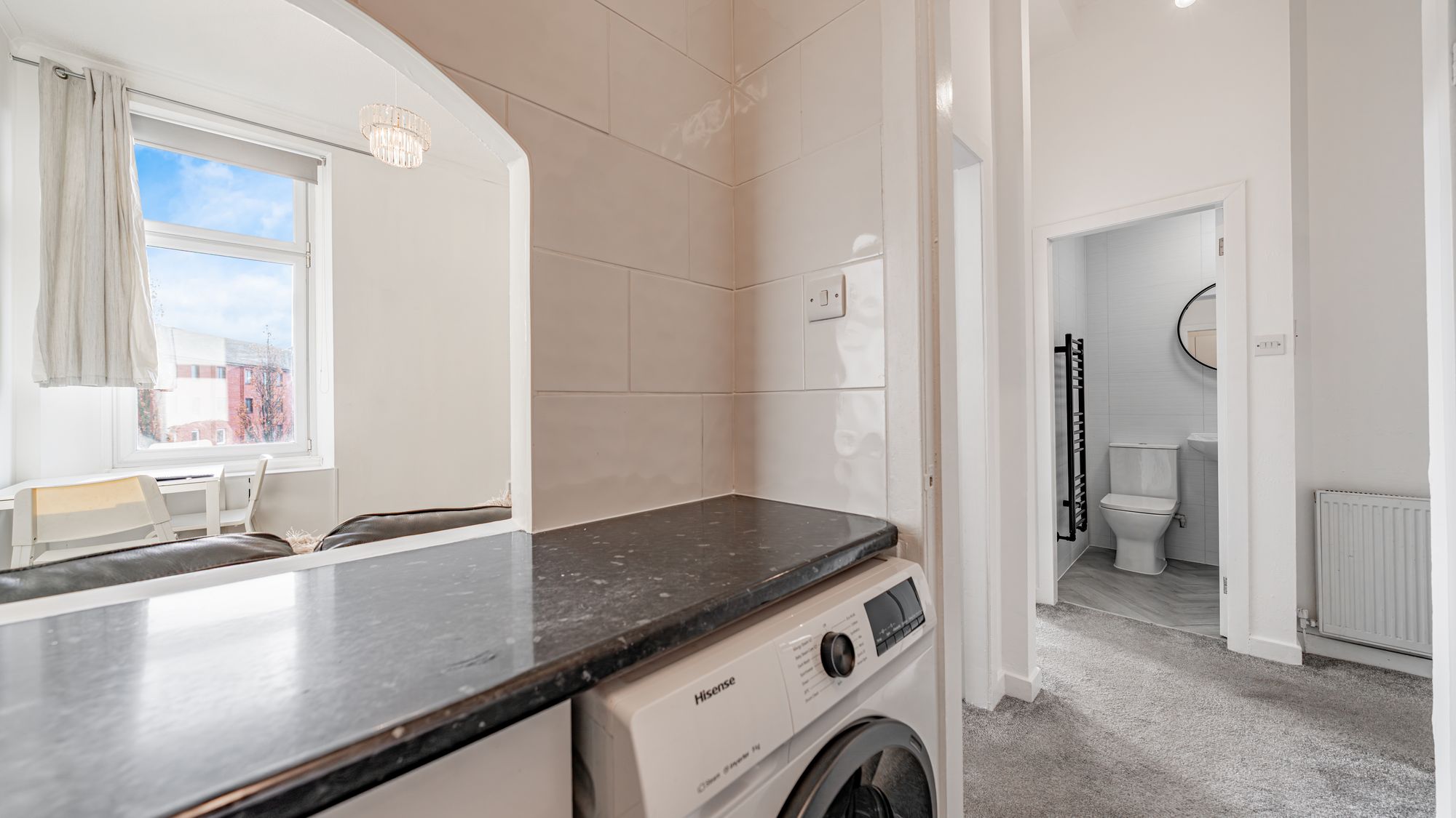 The home for sale has a central location in the popular Glasgow district of Bridgeton. This area is known for its bustling high street filled with a diverse selection of shops, restaurants, boutiques, cafes and bars. As such, this fantastic apartment is certain to appeal to a broad sector of the market including young professionals, parents buying for students and investors. A variety of public transport services are also readily available with multiple bus routes running London Road.