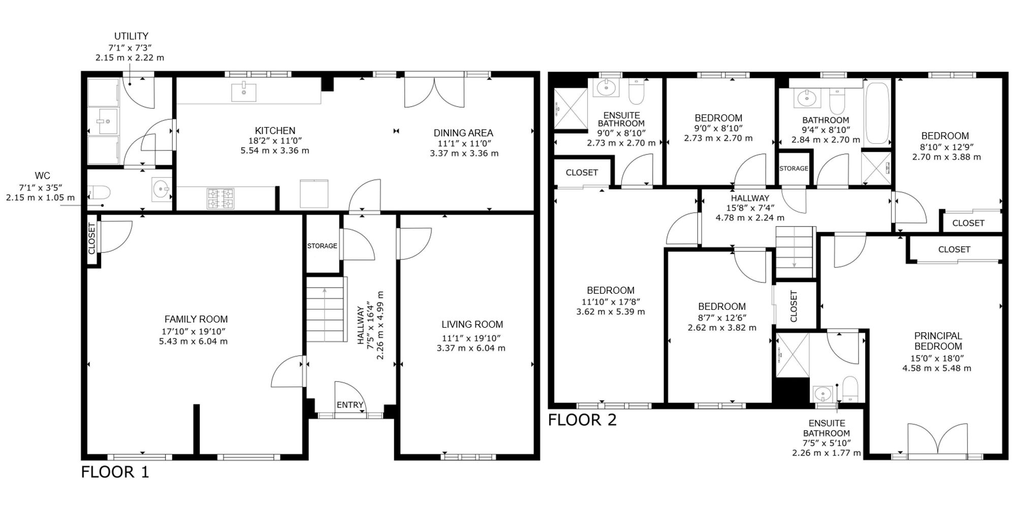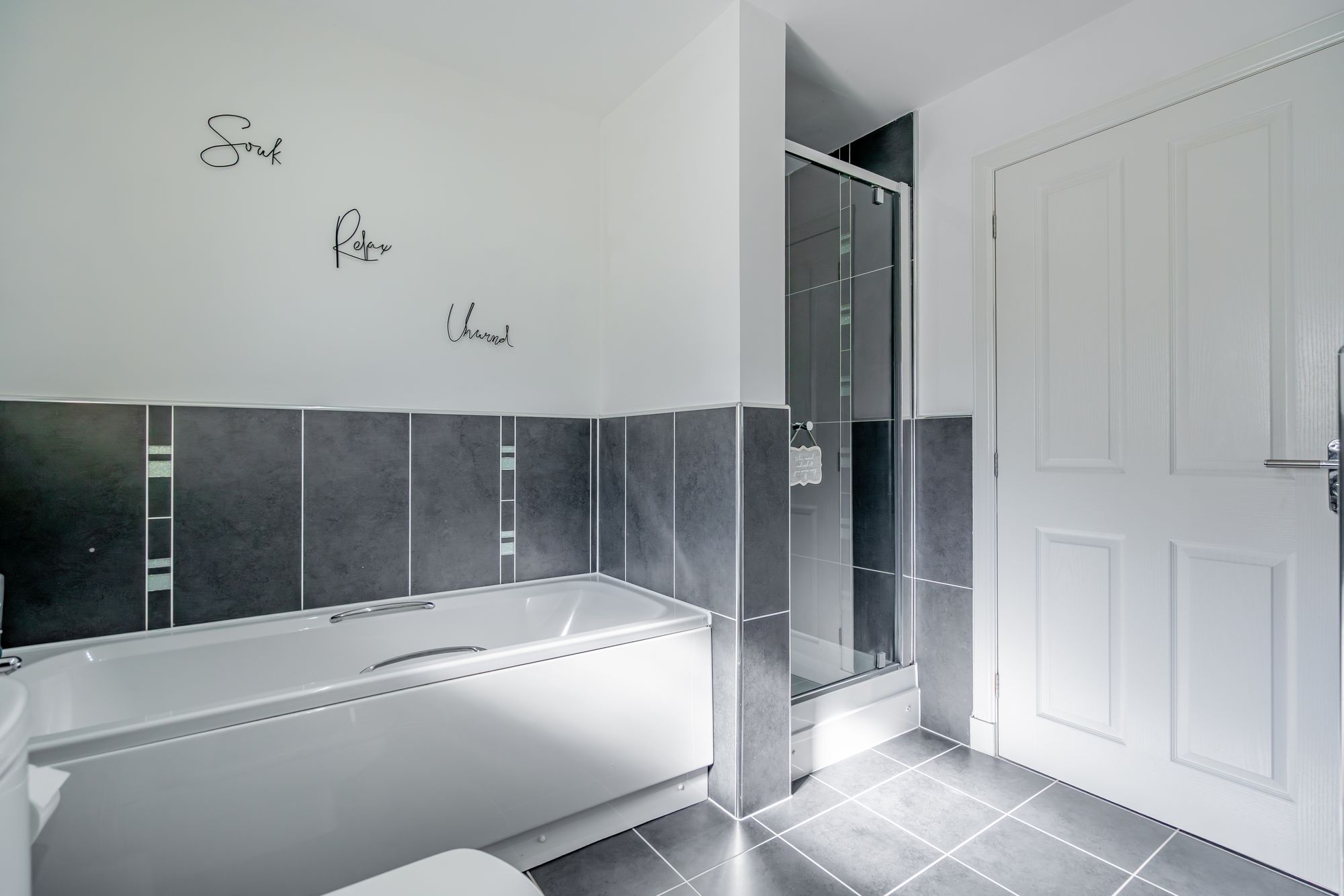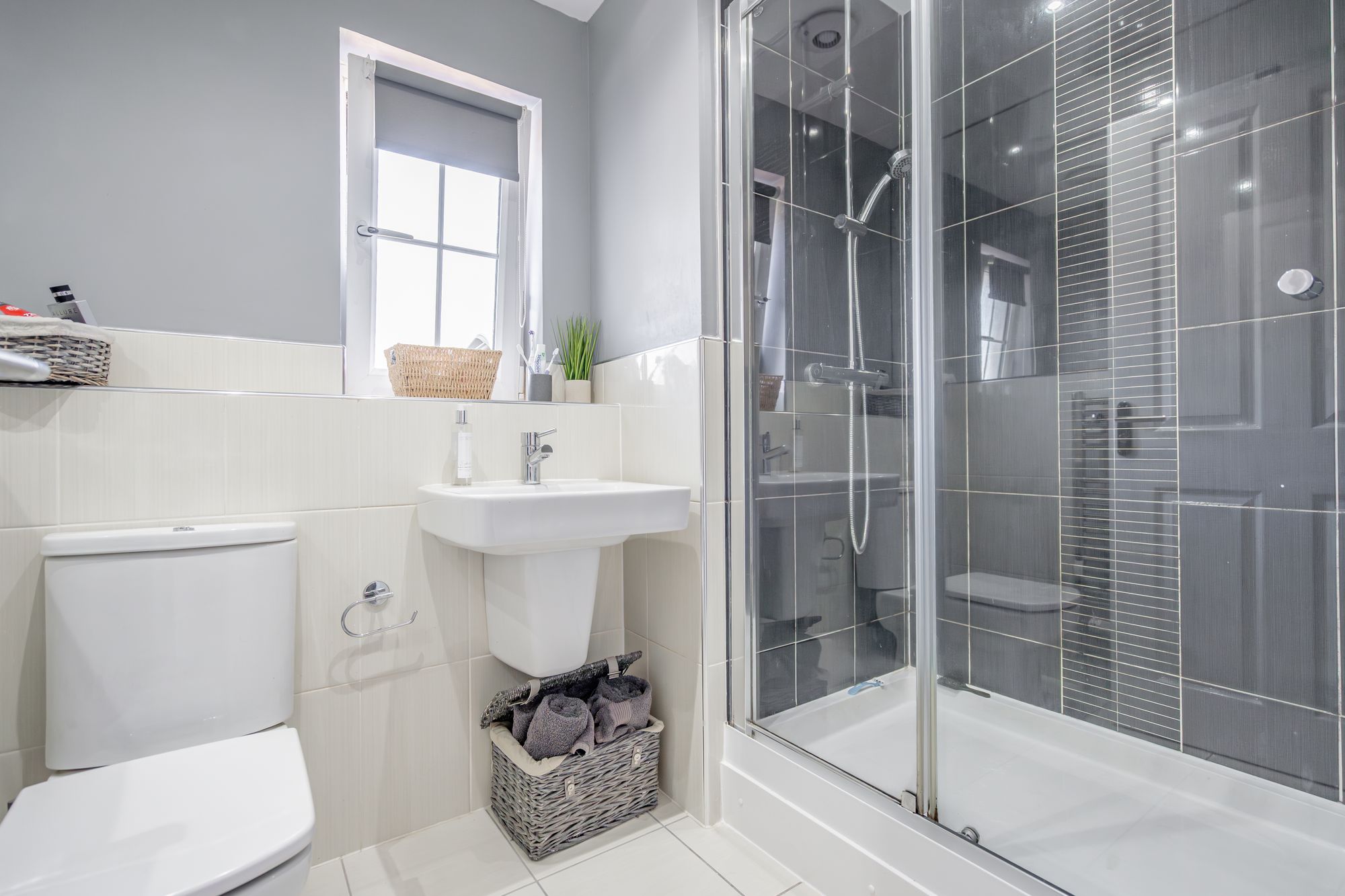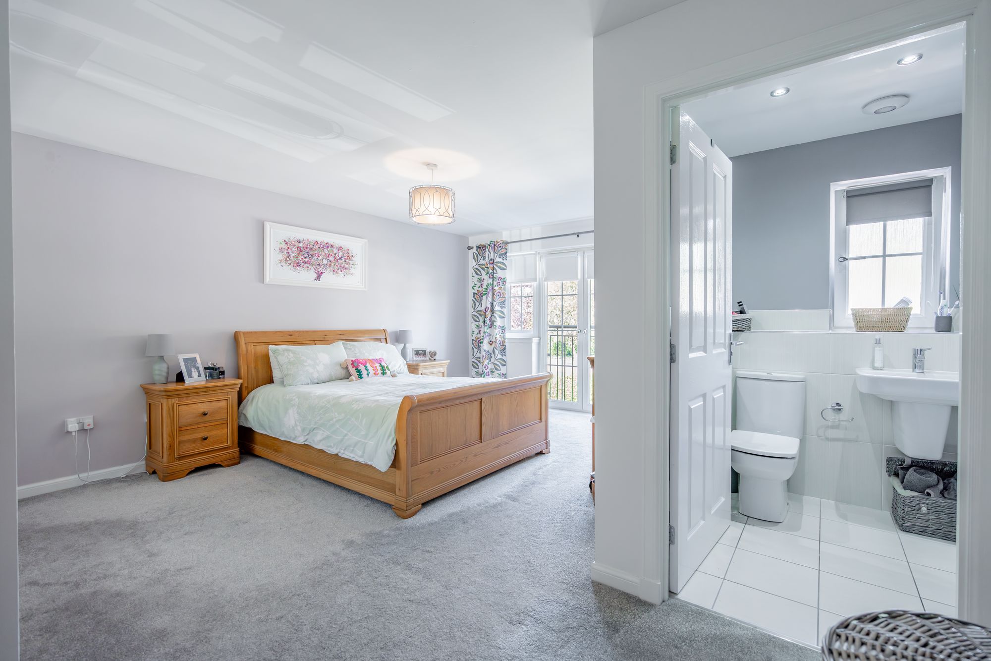 On the first floor, the property continues to impress with a well-planned layout. The master bedroom is generously proportioned and benefits from a modern ensuite shower room along with a Juliet balcony, allowing natural light to flood the space. A guest bedroom also enjoys the luxury of its own ensuite shower room, making it ideal for visitors or older children. Three further well-proportioned bedrooms provide versatile accommodation for family living or home office use, complemented by a modern family bathroom