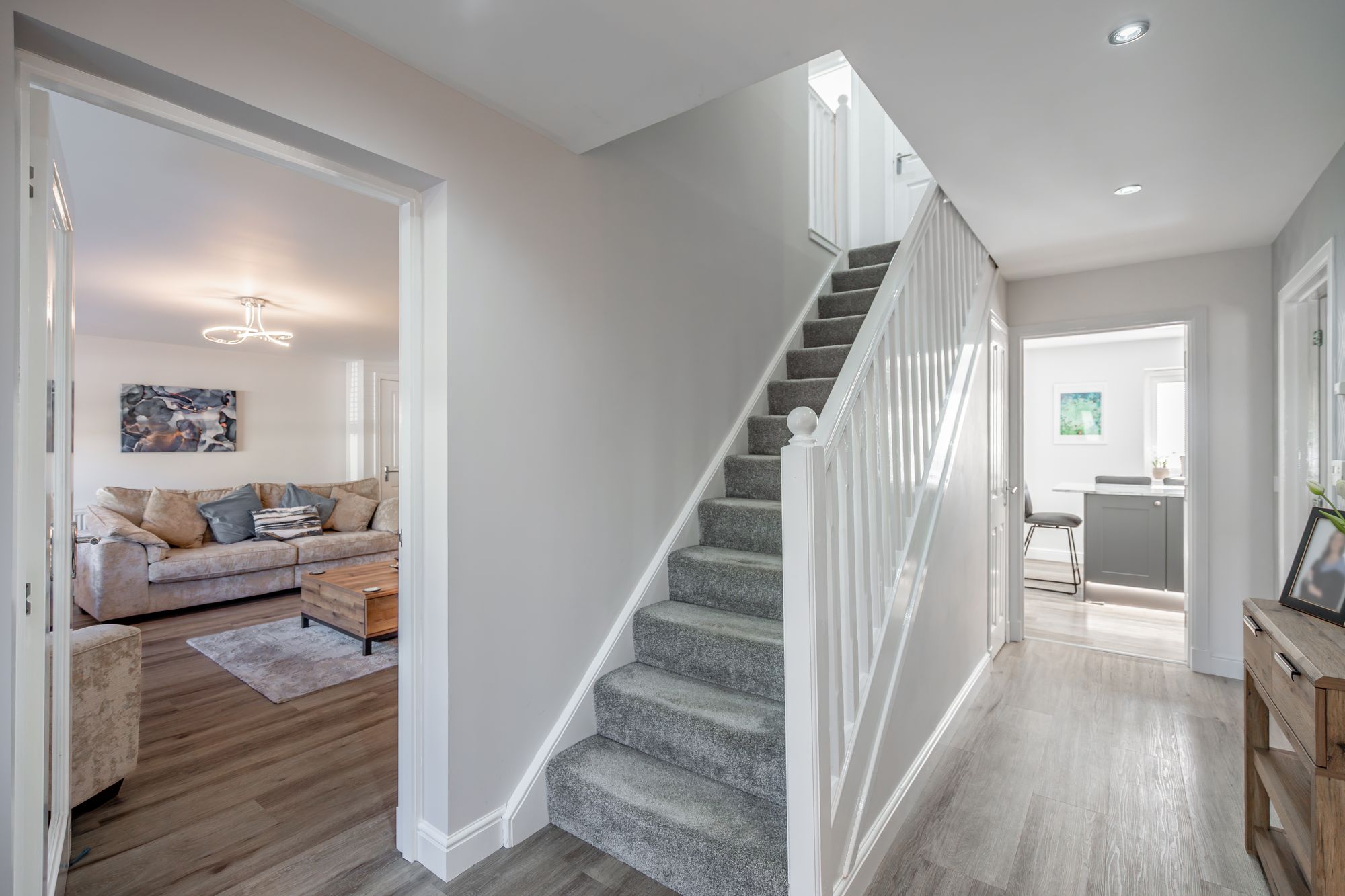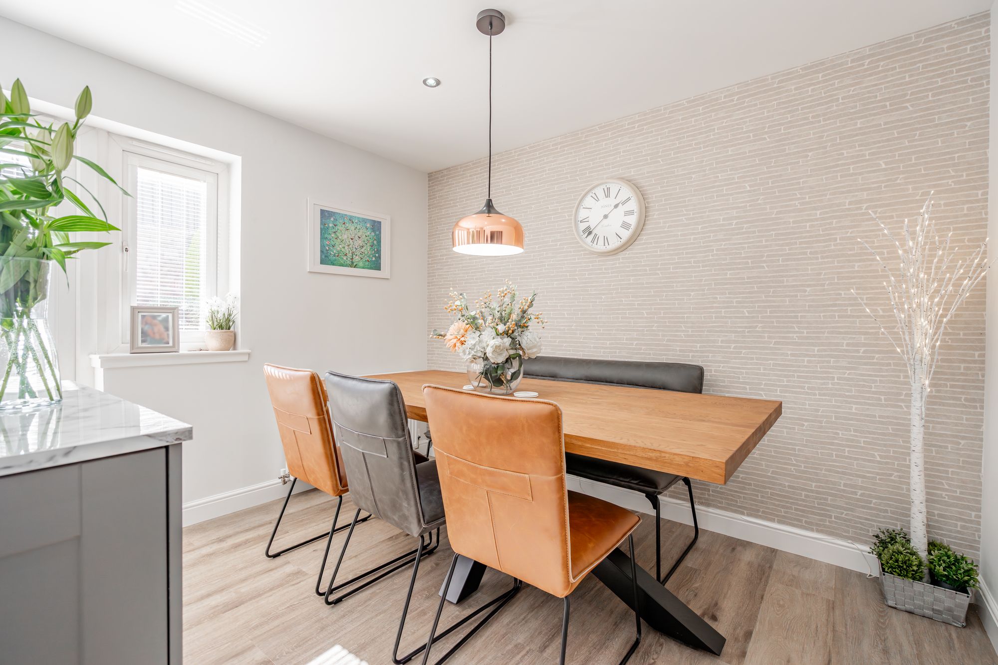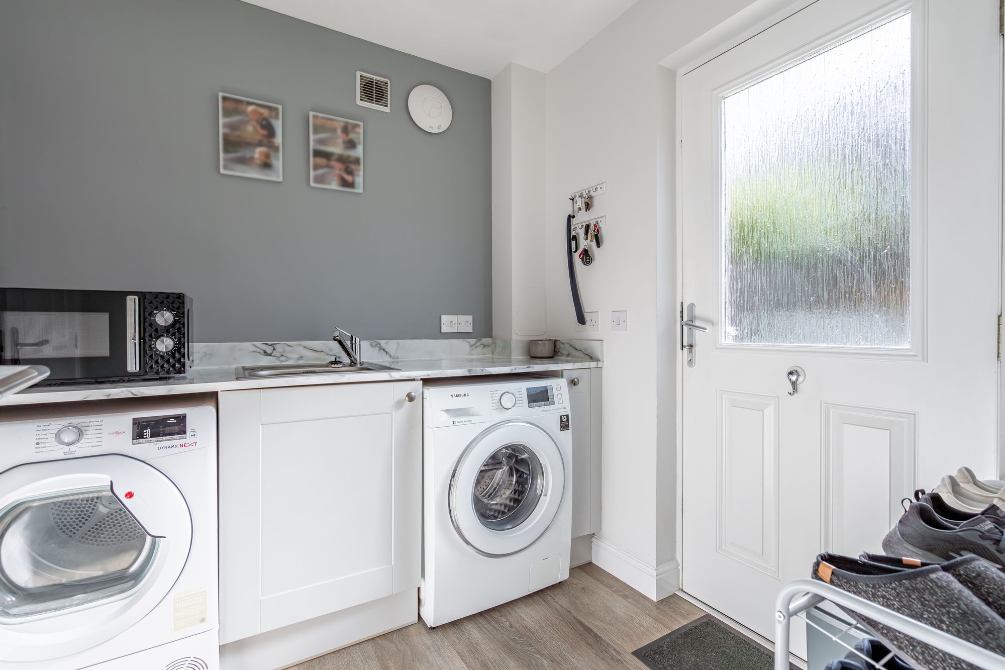 The ground floor accommodation is both spacious and versatile. A welcoming entrance hall sets the tone for the home and leads to a bright and comfortable lounge, ideal for everyday living. A separate sitting room provides additional flexible space, perfect for a formal dining room or family room. The kitchen and dining area is well appointed and thoughtfully designed, offering an excellent space for family meals and entertaining, with direct access to the rear garden. A separate utility room adds further practicality, while a conveniently located ground floor toilet completes the lower level.