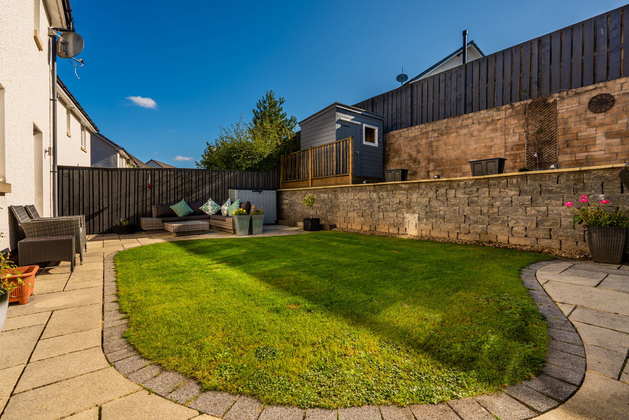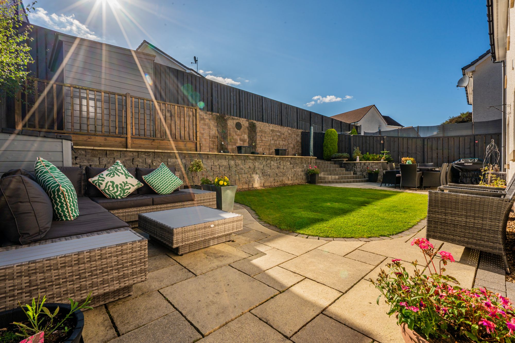 Externally, the property is surrounded by private south-facing garden grounds, offering a good degree of privacy. The gardens are bounded predominantly by timber fencing and retaining walls, creating a secure and enclosed outdoor space suitable for both relaxation and recreation. Off-street parking is available to the front of the property via a private driveway.