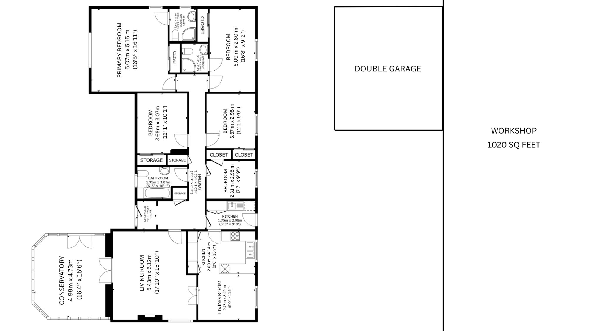 This spacious detached bungalow offers well-balanced and versatile accommodation all on one level. The property comprises an entrance vestibule and welcoming hallway, a comfortable lounge, and a separate dining kitchen. Additional practical spaces include a utility room and family bathroom. There is a generously sized master bedroom and guest bedroom, both benefiting from en-suite facilities, along with three further bedrooms, providing flexible accommodation for family living or home working. A bright conservatory completes the internal layout, offering an ideal space to relax and enjoy views of the surrounding area. The property further benefits from a new (2024) air source heat pump and has 10kW battery storage with the solar panels, enhancing energy efficiency and sustainability. Outside, there is a fully enclosed garden, large private driveway and double garage with attached workshop.
