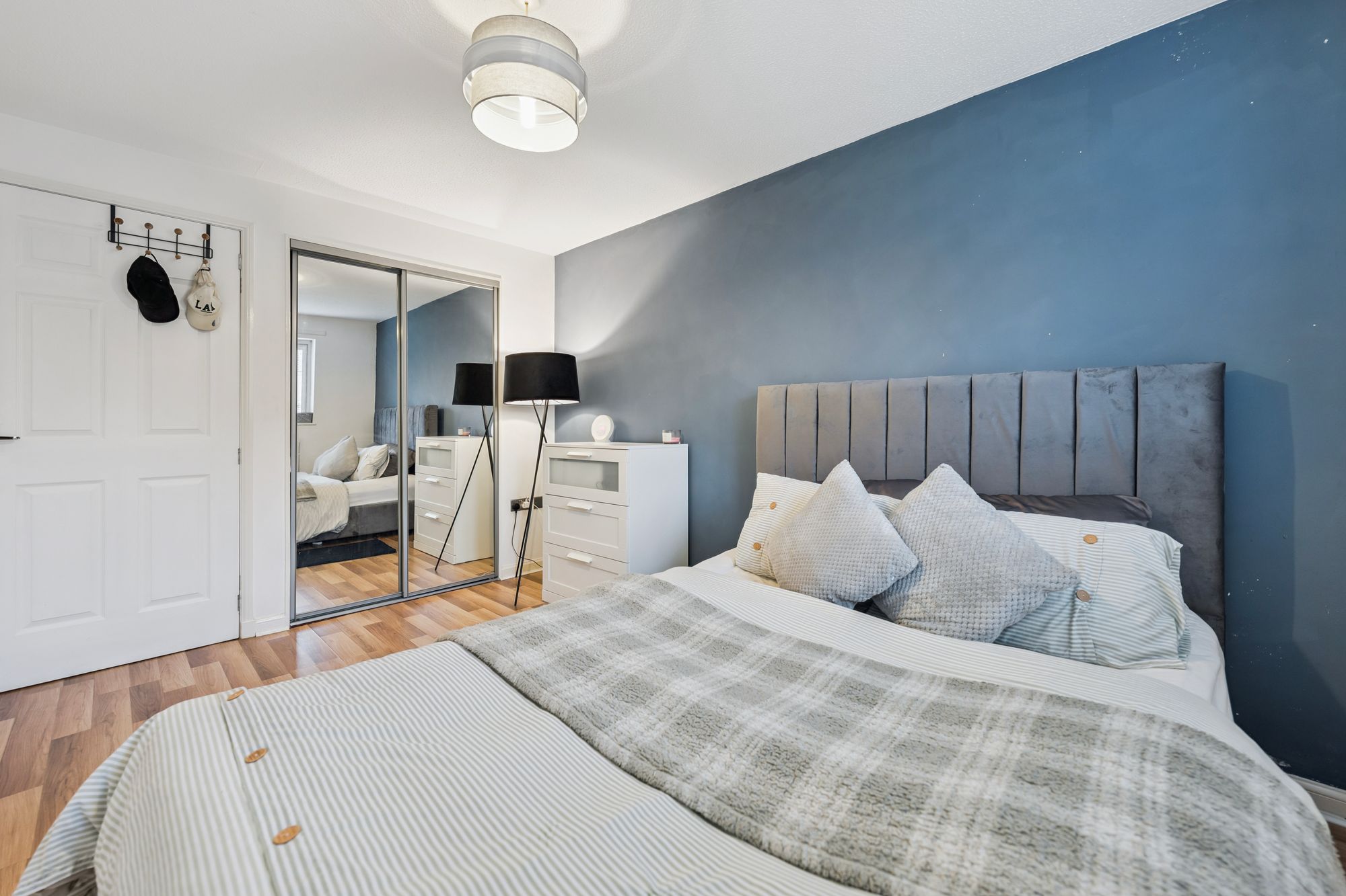 The flat itself occupies the ground floor of a red brick building and is well presented throughout. In brief, the accommodation extends to; hallway with storage off, spacious living room with space for dining, a modern white gloss kitchen with base and wall mounted units and tiled splash back and door leading to the back garden. There is a double bedroom with built in mirrored wardrobes and the accommodation is completed by a main bathroom with three piece suite and shower over the bath. The back garden benefits from great privacy and is made up of a section of lawn and decked patio area.